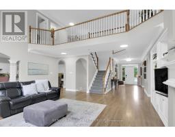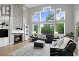 Open House Sunday March 15, 1-3. Welcome to 13 Beechgrove Gardens, an elegant all-brick home set on a rare, expansive, and private lot in one of Stittsville's most sought-after neighbourhoods. Surrounded by lush landscaping, this exceptional property features a tranquil pond, mature trees and greenery, a 9-zone irrigation system, and a beautiful three-season sunroom, all complemented by a three car garage and a stunning interlocked driveway, walkway, and front porch.Step inside to a grand foyer that opens to a breathtaking open to above living room with soaring 20-foot ceilings, walls of windows, and a striking fireplace that fills the space with natural light and warmth. The main level also offers a private office, powder room, and a welcoming family room with a second fireplace. A formal dining room with a butler's pantry connects seamlessly to the gourmet kitchen, complete with a walk-in pantry, bright eating area, and convenient mudroom/laundry with a secondary staircase leading to the soundproof family room above the garage. The sun-filled three-season room with hot tub provides the perfect place to relax while overlooking the beautifully manicured backyard. Upstairs, you'll find four spacious bedrooms, including a luxurious primary retreat featuring a private balcony, a two-sided fireplace shared with the spa-inspired ensuite, and a generous walk-in closet. The second bedroom includes its own private ensuite, while bedrooms three and four share a stylish Jack-and-Jill bathroom.The finished lower level offers the ideal space for both entertaining and relaxation, featuring oversized windows, a large recreation area, a fifth bedroom currently used as a games room, and plenty of additional storage.This remarkable home offers the perfect blend of luxury, comfort, and functionality-a rare opportunity to own a truly special property in a prime Stittsville location, ideal for both family living and entertaining. FURNACES AND AC'S UPDATE SEPT 2025 (id:31145)