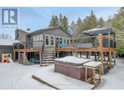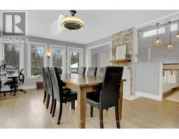 Nestled on 2.4 acres of beautifully wooded land, this exceptional property offers the perfect blend of privacy, tranquility, and natural beauty. Surrounded by mature trees and serene views in every direction, it's a true retreat from the everyday. Inside, the home is bathed in natural light, thanks to soaring ceilings enhanced by stunning clerestory windows and skylights that create an airy, open feel throughout the main living spaces. Rich hardwood flooring flows seamlessly across the upper levels, adding warmth and timeless elegance. This thoughtfully designed home features 3 bedrooms and 2 full bathrooms- both tastefully updated with modern finishes. The fully finished basement provides additional living space perfect for relaxing or entertaining, highlighted by a striking double-sided gas fireplace that adds both charm and comfort. Recent updates offer peace of mind, including new windows (2022) and upgraded attic insulation (2022), improving both efficiency and comfort year-round. Eavestrough (2022), Roof 2017, furnace 2013 and skylights 2014/2015 (approx). New pressure tank, water softener and sulfur tank (2022). A new Tesla 2 Car charger and automatic garage door opener. A rare opportunity to enjoy wooded privacy, beautiful natural light, and exceptional living space on a stunning 2+ acre property. (id:31145)