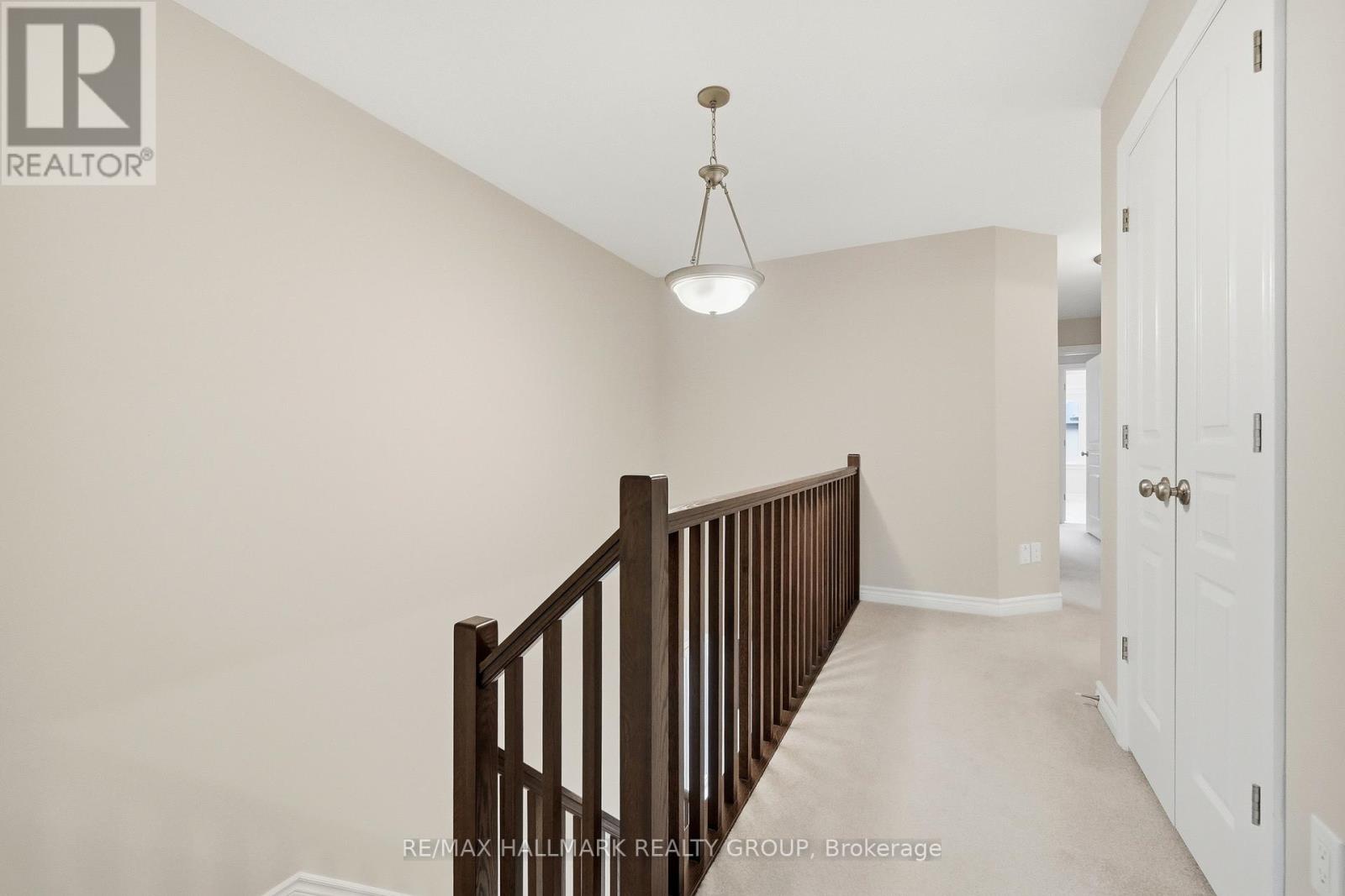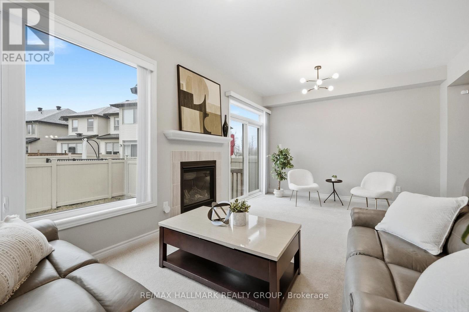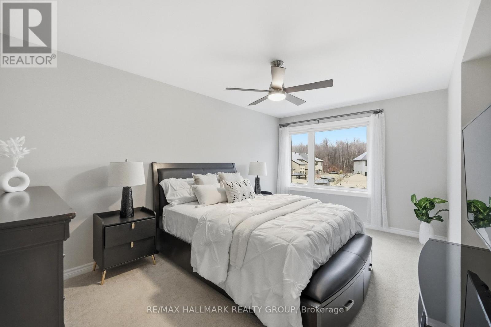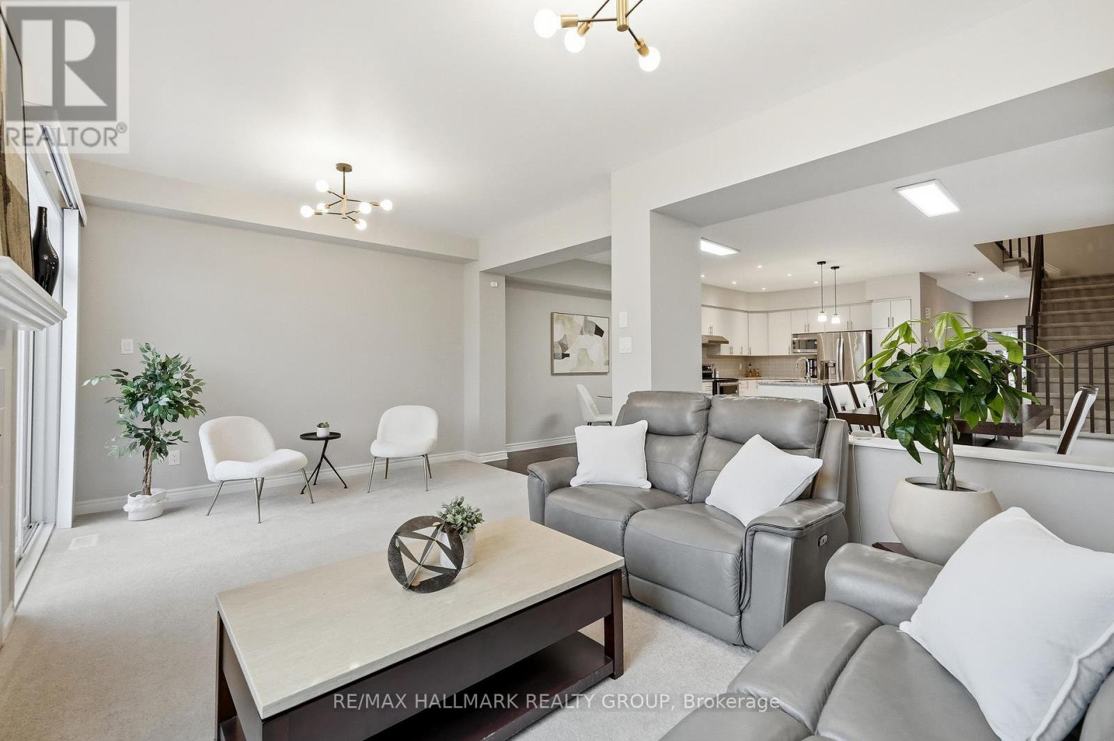 Welcome to 137 Wild Calla Way, a beautifully upgraded Richcraft Fairhaven End Unit townhome offering approx 2,539 sq ft of total living space, located in the desirable Bradley Estates community in Orleans. A rare 4 bedroom layout with the builder loft professionally converted to a 4th bedroom & 3 bathrooms, this home provides both space and functionality for modern living. Main level features a bright open concept design with hardwood flooring throughout the main hallway & dining areas. The inviting living room is finished with cozy carpeting, a gas fireplace & access to the backyard. The modern white kitchen overlooks the living space and includes stainless steel appliances, double oven, ice-maker fridge, centre island with double sink & breakfast bar, and plenty of cabinetry for storage. Upstairs you will find 4 spacious carpeted bedrooms including the primary suite, along with the convenience of second-floor laundry. All 3 bathrooms feature granite countertops, with upgraded power showers in the primary ensuite & second bathroom, and the main bath includes tile extended to the ceiling. Additional upgrades include oak stairs, modern light fixtures in the living room, kitchen island, dining room and primary bedroom, flow-through humidifier, central air conditioning, updated kitchen faucet, and plumbing improvements including new sink stoppers in all bathrooms & the powder room. The home has also been freshly painted throughout with updated baseboards. The finished lower level recreation room provides additional living space, while a large unfinished storage/utility area offers excellent storage potential. Outside, enjoy extended driveway parking with interlock for two vehicles, a single garage with inside entry featuring built-in tire rack and custom storage, plus a convenient side storage shed. Located close to parks, schools, transit, and everyday amenities, this move-in ready end unit offers comfort, upgrades, and an excellent family-friendly location! (id:31145)