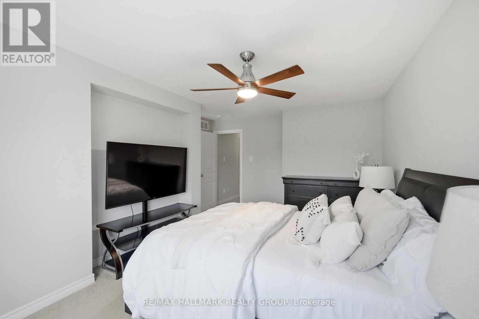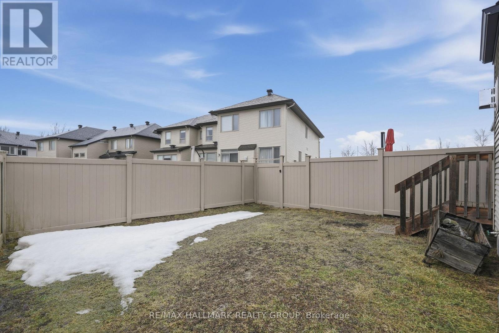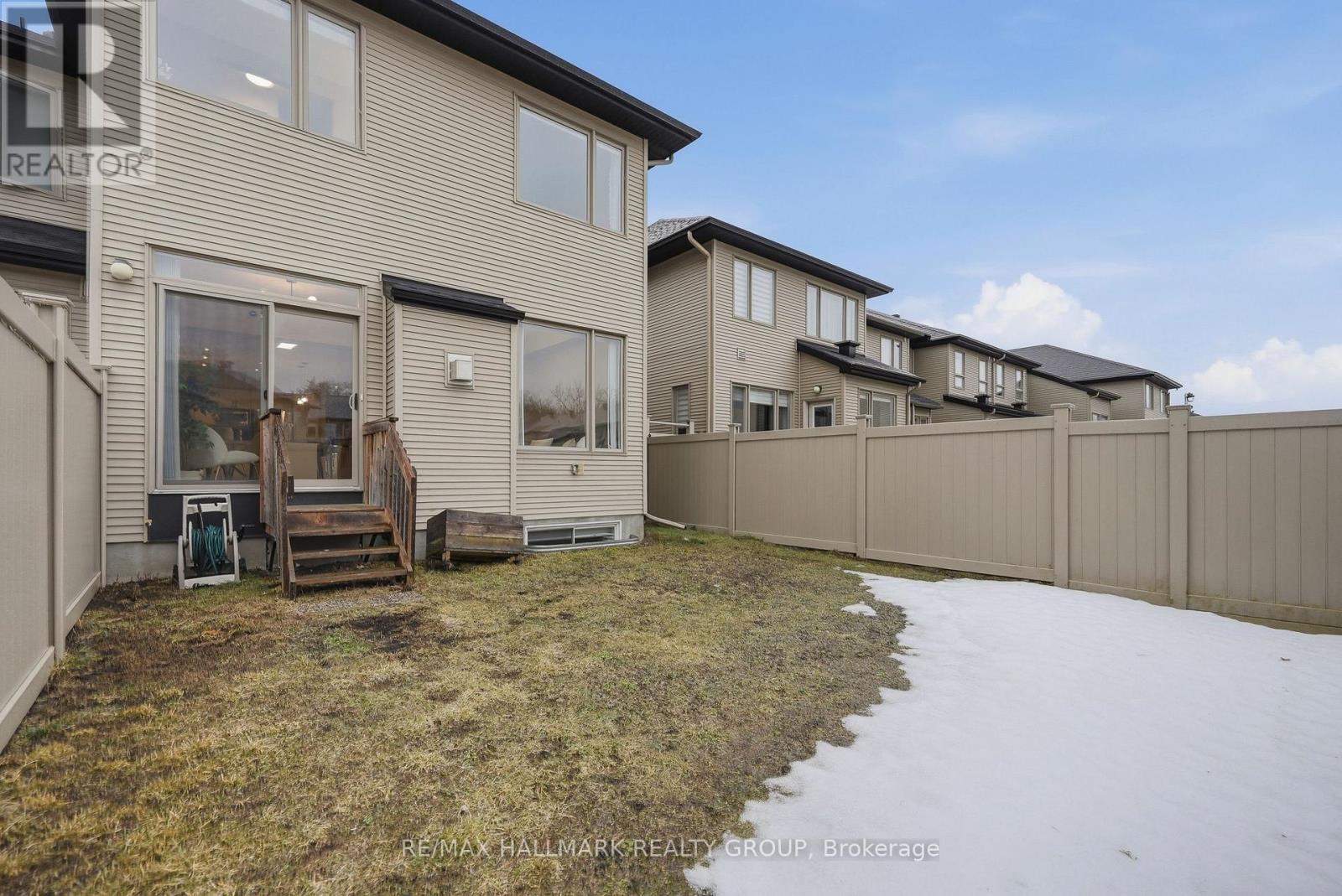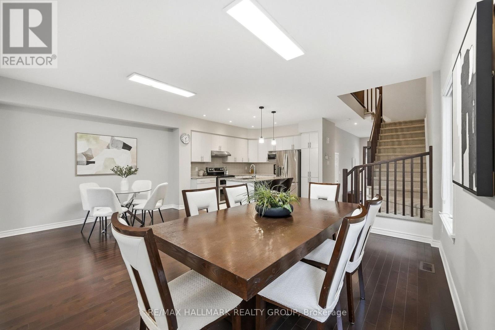 Welcome to 137 Wild Calla Way, a beautifully upgraded Richcraft Fairhaven End Unit townhome offering approx 2,539 sq ft of total living space, located in the desirable Bradley Estates community in Orleans. A rare 4 bedroom layout with the builder loft professionally converted to a 4th bedroom & 3 bathrooms, this home provides both space and functionality for modern living. Main level features a bright open concept design with hardwood flooring throughout the main hallway & dining areas. The inviting living room is finished with cozy carpeting, a gas fireplace & access to the backyard. The modern white kitchen overlooks the living space and includes stainless steel appliances, double oven, ice-maker fridge, centre island with double sink & breakfast bar, and plenty of cabinetry for storage. Upstairs you will find 4 spacious carpeted bedrooms including the primary suite, along with the convenience of second-floor laundry. All 3 bathrooms feature granite countertops, with upgraded power showers in the primary ensuite & second bathroom, and the main bath includes tile extended to the ceiling. Additional upgrades include oak stairs, modern light fixtures in the living room, kitchen island, dining room and primary bedroom, flow-through humidifier, central air conditioning, updated kitchen faucet, and plumbing improvements including new sink stoppers in all bathrooms & the powder room. The home has also been freshly painted throughout with updated baseboards. The finished lower level recreation room provides additional living space, while a large unfinished storage/utility area offers excellent storage potential. Outside, enjoy extended driveway parking with interlock for two vehicles, a single garage with inside entry featuring built-in tire rack and custom storage, plus a convenient side storage shed. Located close to parks, schools, transit, and everyday amenities, this move-in ready end unit offers comfort, upgrades, and an excellent family-friendly location! (id:31145)