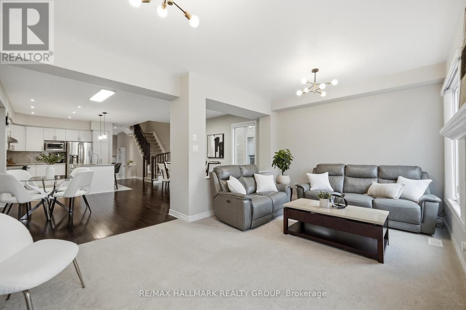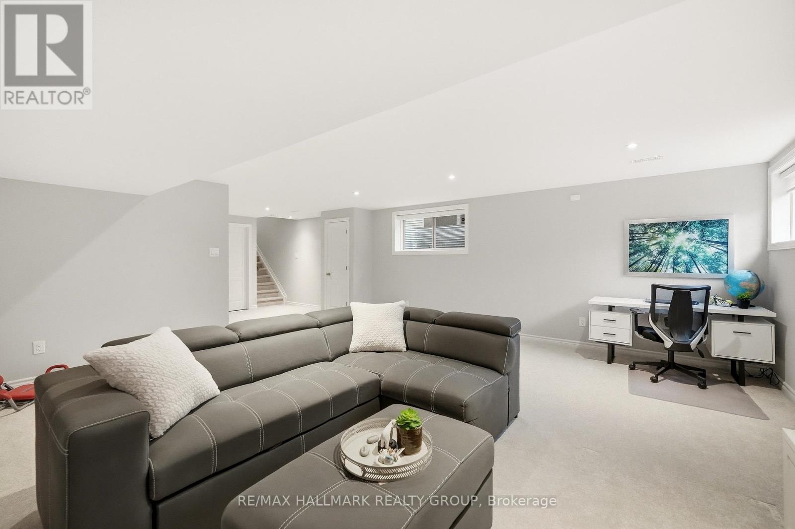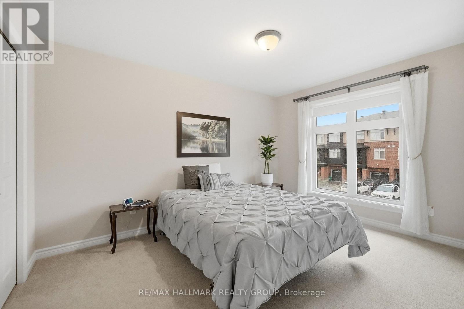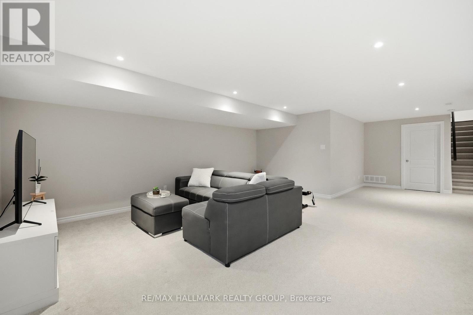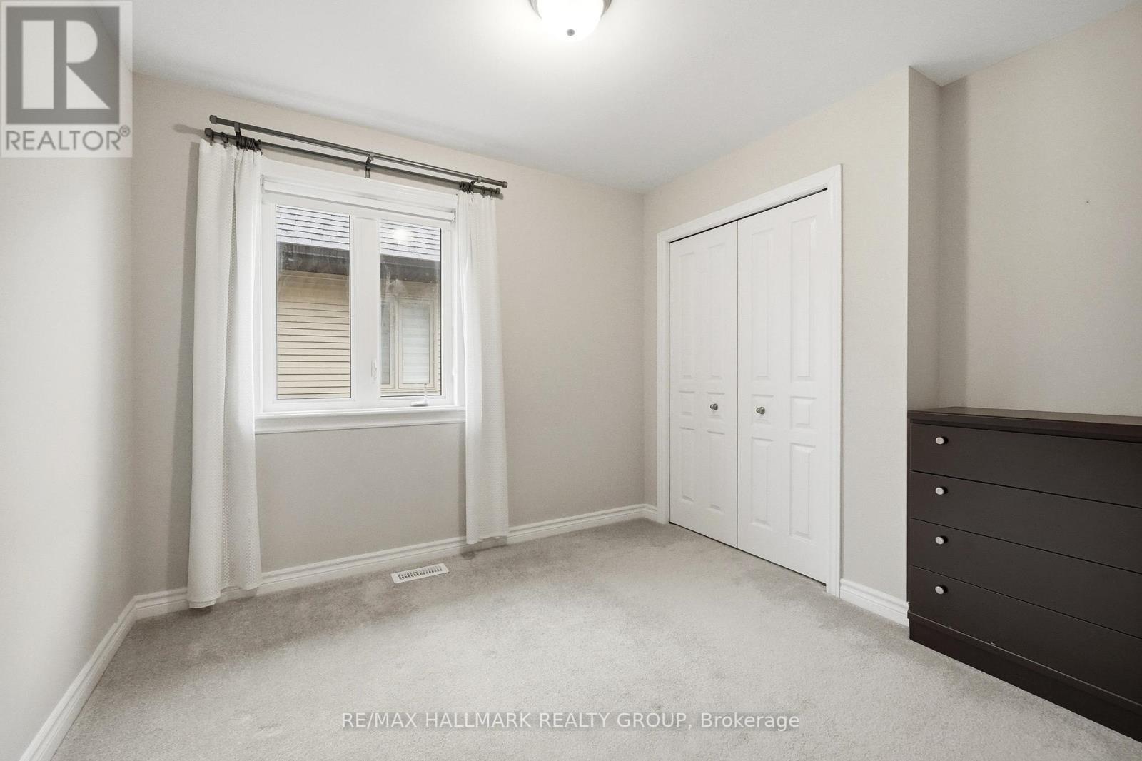 Welcome to 137 Wild Calla Way, a beautifully upgraded Richcraft Fairhaven End Unit townhome offering approx 2,539 sq ft of total living space, located in the desirable Bradley Estates community in Orleans. A rare 4 bedroom layout with the builder loft professionally converted to a 4th bedroom & 3 bathrooms, this home provides both space and functionality for modern living. Main level features a bright open concept design with hardwood flooring throughout the main hallway & dining areas. The inviting living room is finished with cozy carpeting, a gas fireplace & access to the backyard. The modern white kitchen overlooks the living space and includes stainless steel appliances, double oven, ice-maker fridge, centre island with double sink & breakfast bar, and plenty of cabinetry for storage. Upstairs you will find 4 spacious carpeted bedrooms including the primary suite, along with the convenience of second-floor laundry. All 3 bathrooms feature granite countertops, with upgraded power showers in the primary ensuite & second bathroom, and the main bath includes tile extended to the ceiling. Additional upgrades include oak stairs, modern light fixtures in the living room, kitchen island, dining room and primary bedroom, flow-through humidifier, central air conditioning, updated kitchen faucet, and plumbing improvements including new sink stoppers in all bathrooms & the powder room. The home has also been freshly painted throughout with updated baseboards. The finished lower level recreation room provides additional living space, while a large unfinished storage/utility area offers excellent storage potential. Outside, enjoy extended driveway parking with interlock for two vehicles, a single garage with inside entry featuring built-in tire rack and custom storage, plus a convenient side storage shed. Located close to parks, schools, transit, and everyday amenities, this move-in ready end unit offers comfort, upgrades, and an excellent family-friendly location! (id:31145)