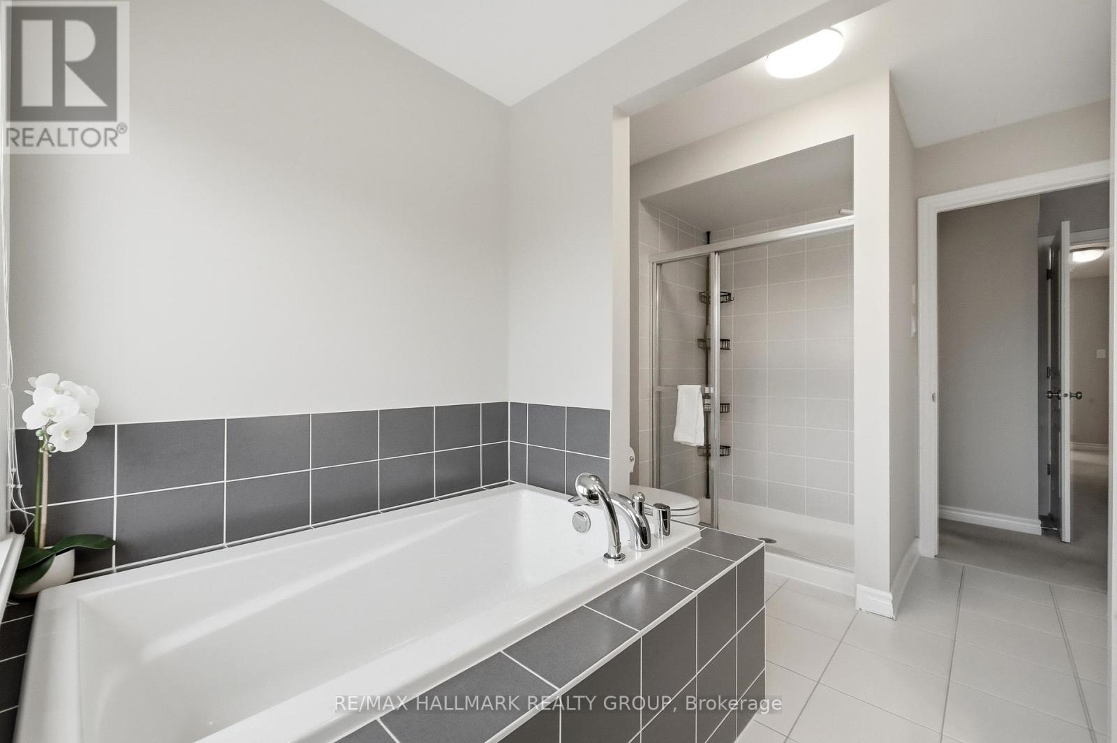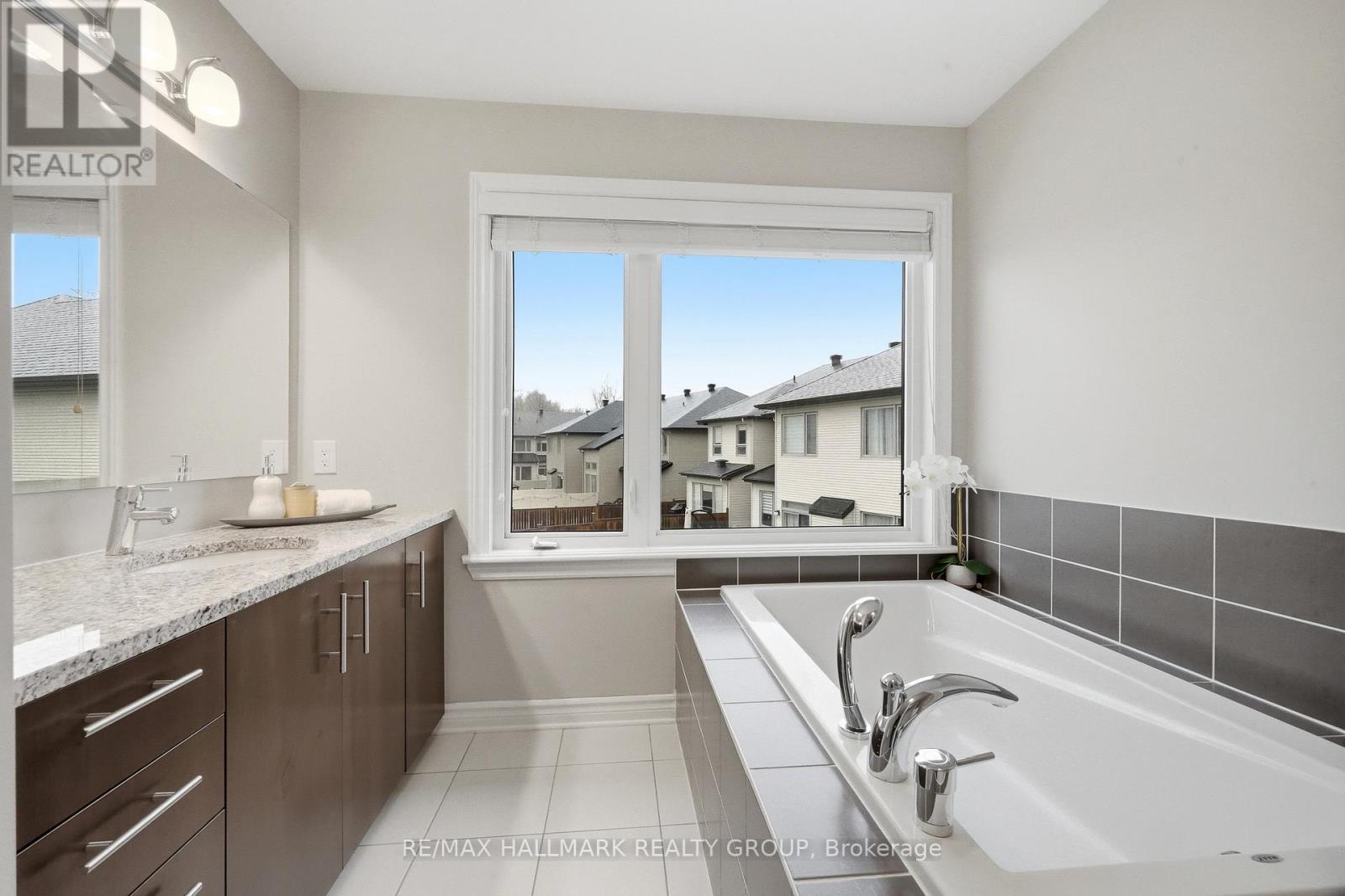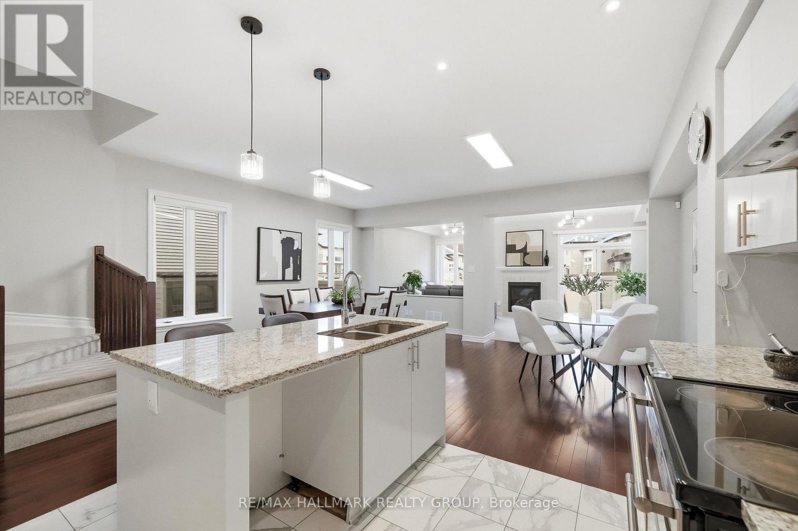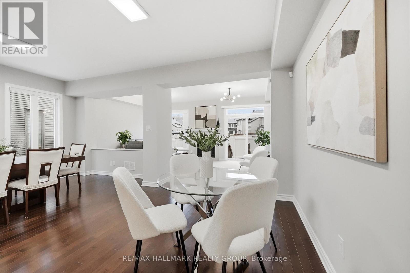 Welcome to 137 Wild Calla Way, a beautifully upgraded Richcraft Fairhaven End Unit townhome offering approx 2,539 sq ft of total living space, located in the desirable Bradley Estates community in Orleans. A rare 4 bedroom layout with the builder loft professionally converted to a 4th bedroom & 3 bathrooms, this home provides both space and functionality for modern living. Main level features a bright open concept design with hardwood flooring throughout the main hallway & dining areas. The inviting living room is finished with cozy carpeting, a gas fireplace & access to the backyard. The modern white kitchen overlooks the living space and includes stainless steel appliances, double oven, ice-maker fridge, centre island with double sink & breakfast bar, and plenty of cabinetry for storage. Upstairs you will find 4 spacious carpeted bedrooms including the primary suite, along with the convenience of second-floor laundry. All 3 bathrooms feature granite countertops, with upgraded power showers in the primary ensuite & second bathroom, and the main bath includes tile extended to the ceiling. Additional upgrades include oak stairs, modern light fixtures in the living room, kitchen island, dining room and primary bedroom, flow-through humidifier, central air conditioning, updated kitchen faucet, and plumbing improvements including new sink stoppers in all bathrooms & the powder room. The home has also been freshly painted throughout with updated baseboards. The finished lower level recreation room provides additional living space, while a large unfinished storage/utility area offers excellent storage potential. Outside, enjoy extended driveway parking with interlock for two vehicles, a single garage with inside entry featuring built-in tire rack and custom storage, plus a convenient side storage shed. Located close to parks, schools, transit, and everyday amenities, this move-in ready end unit offers comfort, upgrades, and an excellent family-friendly location! (id:31145)