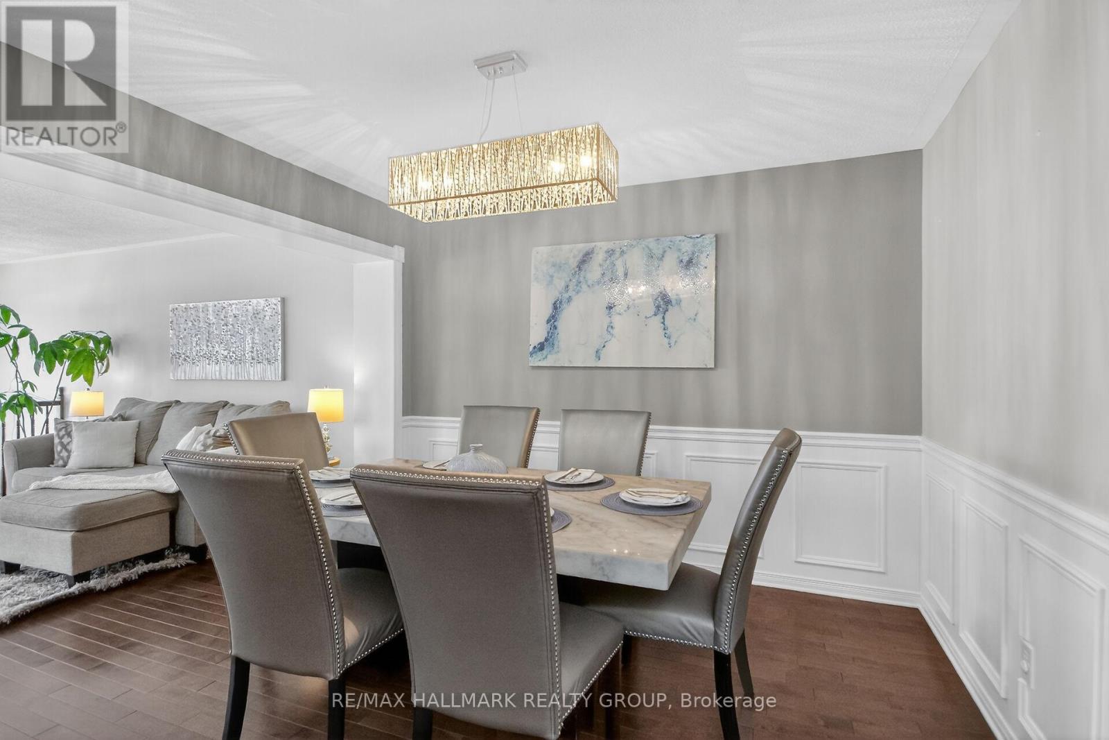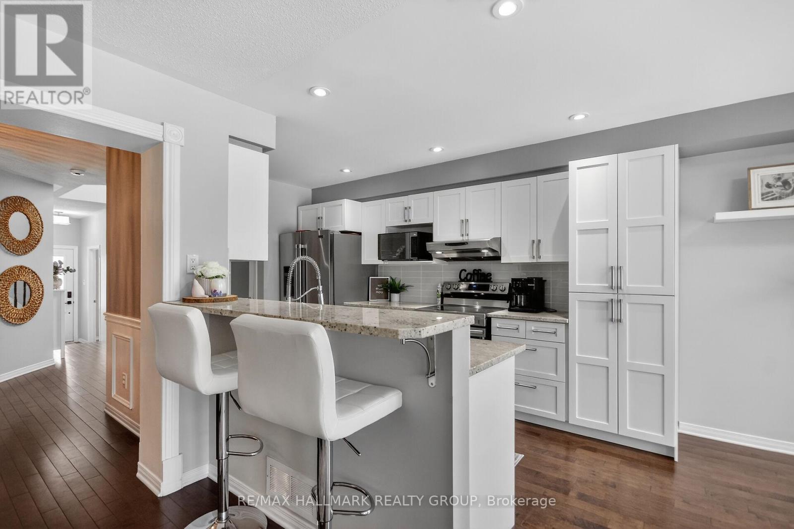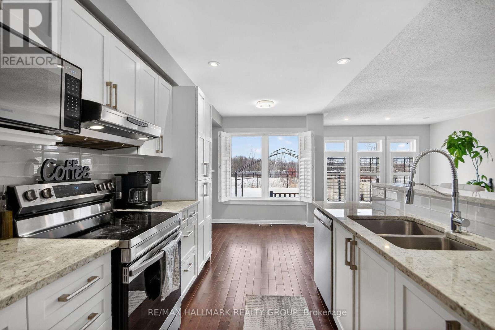 Enjoy inspirational lifestyle living in this Luxurious End Unit Townhome with No Rear Neighbors nestled in the sought-after community of East Village in Orleans. Located minutes from high-rated schools, parks, shopping, and the renowned Millennium Sports Park. This luxurious townhome combines comfort, space, and convenience is perfect for families or first-time buyers. No Rear Neighbors means added privacy and serene views, making this home stand out from the rest. Inside, you'll find luxurious finishes and spacious living spaces that features 3 good size bedrooms, 2 1/2 bathrooms, and a partially finished basement - Ideal for modern family living. The main floor showcases hardwood flooring and a bright, inviting living space layout. The luxurious kitchen features a pantry and includes "rich" granite countertops, beautiful glass tile backsplash and a generous breakfast eat-in area to quietly enjoy breakfast while overlooking gorgeous views of the green space behind your backyard - the elegant dining room features beautiful decor and a luxurious modern light fixture - the living room features a large wall of bright windows overlooking the breathtaking green space at the back of the townhome. The second floor features sparkling new laminate/vinyl flooring - a primary bedroom retreat that features a bonus room great as a private office or private study, walk-in closet, and a private Ensuite bathroom "oasis" that features a soaker tub & separate stand up shower Plus 2 good size bedrooms. The partially finished basement boasts quality laminate flooring and offers ample room for a home theatre, playroom, or another home office. The good size backyard features no rear neighbors and a good size deck. Special highlights include new carpet in both stairways, new laminate/vinyl flooring on the 2nd floor, all windows including the front & back door have been replaced. Don't miss your chance to own this beautifully maintained, move-in ready luxurious townhome/Flexible Posses (id:31145)