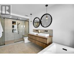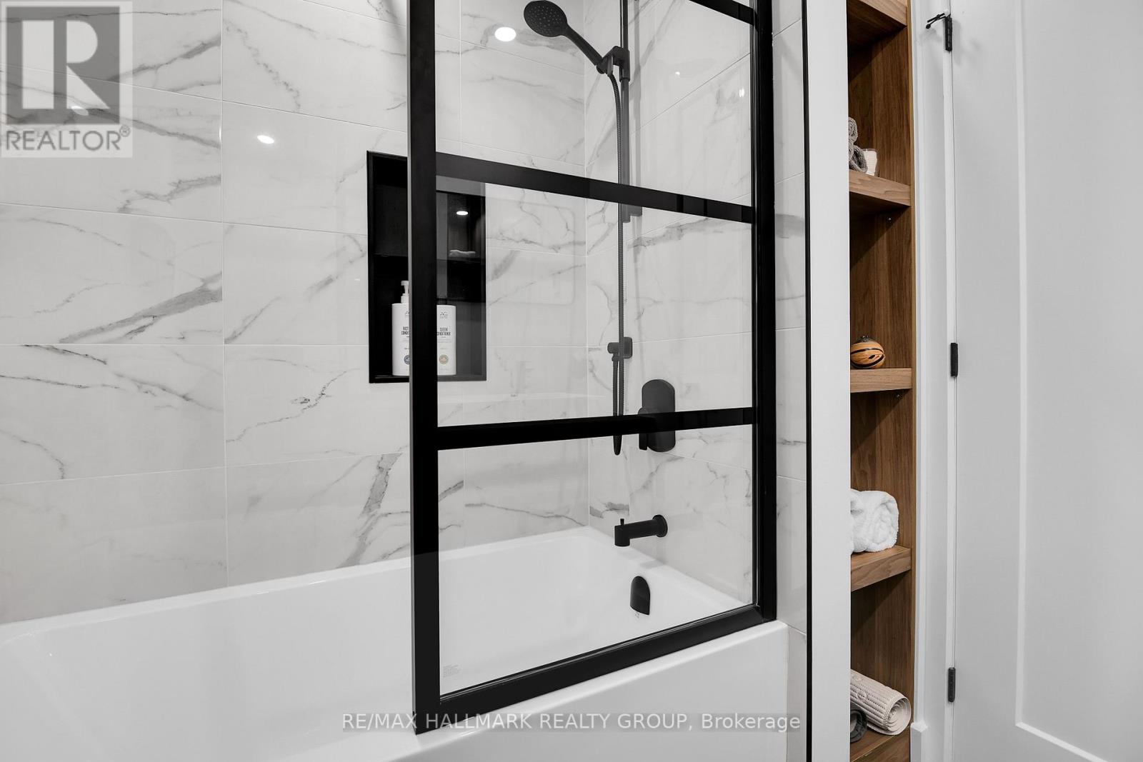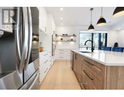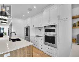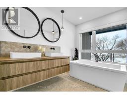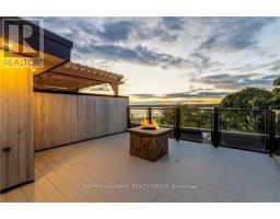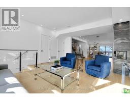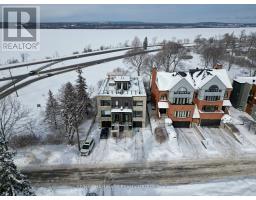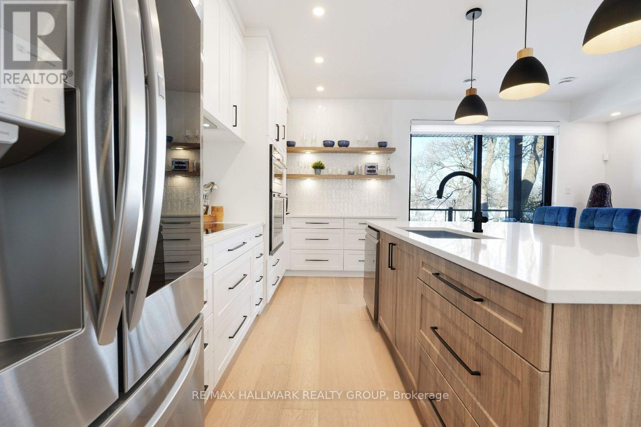 Luxurious 3-Storey Residence with Rare Unobstructed Ottawa River Views Backing onto NCC Parkland. Built in 2023, this exceptional 4-bedroom, 4-bathroom residence backs directly onto protected NCC parkland, offering rare, unobstructed panoramic views of the Ottawa River and Gatineau Hills with no future development behind. This remarkable setting provides direct access to scenic riverfront pathways ideal for kayaking, cycling, running, and cross-country skiing, creating a truly exceptional outdoor lifestyle right from your doorstep. Striking architecture and curated designer finishes define the home. The open-concept main level features a spacious living room anchored by a dramatic three-sided gas fireplace flowing into an expansive dining area ideal for entertaining. The chef's kitchen showcases a stunning 5' x 8' quartz island, custom cabinetry blending sleek modern finishes with warm textured wood accents, and premium appliances. A stylish powder room with floating vanity and designer accent tile completes the level. The terrace off the kitchen offers a beautiful setting for outdoor dining with tranquil river views. The second level features a serene primary suite with captivating views of the Gatineau Hills and a spa-inspired ensuite with double glass steam shower, freestanding soaker tub, double vanity, and imported porcelain tile. Two additional spacious bedrooms share a beautifully appointed bath, and a well-designed laundry room includes full-size appliances, folding counter, and hanging rod. The spectacular rooftop terrace offers a private retreat with sitting area, six-person hot tub, and glass railings to fully enjoy the river and sunset views. The walk-out lower level includes the fourth bedroom, full bath, and a generous media room with terrace doors leading to the patio and fenced garden with private gate to NCC parkland. Garage includes workshop space and secure storage. A truly rare riverside offering. (id:31145)