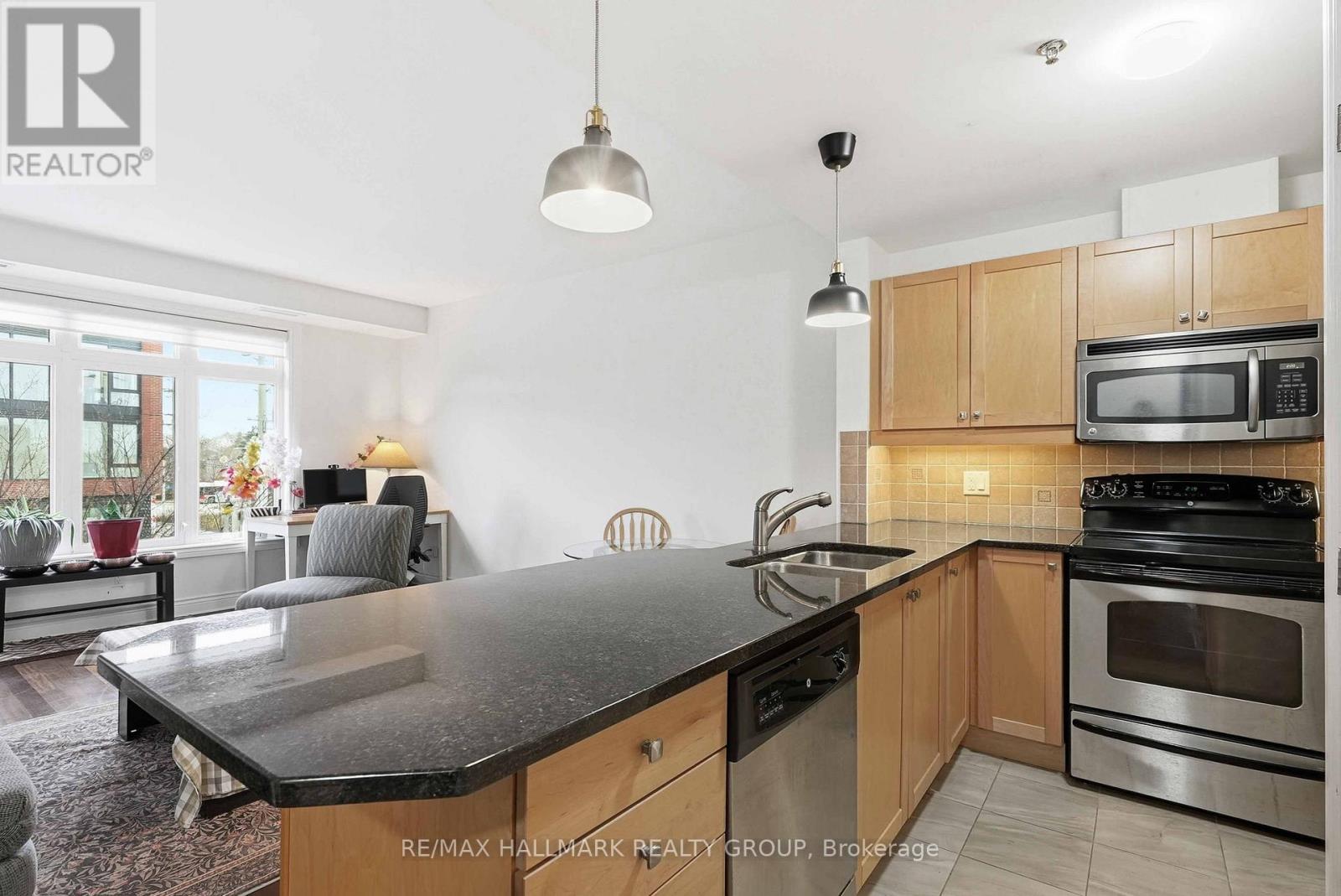 Live in the heart of Westboro Village at Stonework Lofts - where style, convenience, and lifestyle all meet. This bright, spacious 1-bedroom condo sits in one of Westboro's most sought-after boutique buildings, offering a modern open-concept layout, soaring 9-foot ceilings, and full-height windows that bathe the space in natural light from the south and west. Whether you're working from home, hosting friends, or simply relaxing after a long day, the airy flow and warm atmosphere make it an incredibly easy place to live. The kitchen is a highlight: stainless steel appliances, sleek granite countertops, great storage, and ample workspace - perfect for the everyday cook or weekend entertainer. Hardwood floors in the main living area, a carpeted bedroom for comfort, in-unit laundry, and generous in-suite storage add to the practical comforts. What truly sets this home apart is the lifestyle it unlocks. The building offers exceptional amenities, including a rooftop terrace ideal for lounging or BBQs, a well-equipped fitness room, a private lounge/party room, elevator access, and visitor parking. Everything is designed to make life simpler, easier, and more enjoyable. Step outside and experience what makes Westboro one of Ottawa's most desirable neighbourhoods. You're just moments from Westboro station, major bus routes, and a variety of shops, cafes, restaurants, and groceries (Farm Boy, Metro, Superstore, Food Basics - all within walking distance). Outdoor enthusiasts will love being minutes from Westboro Beach, river pathways, and scenic bike trails, offering the perfect balance of urban living and nature. This rental isn't just a place to live - it's a lifestyle upgrade. Choose a home that offers comfort, convenience, walkability, and community, all wrapped in the charm of Westboro's boutique living. Rent includes water, & building amenities. Pet-friendly (1 pet under 25 kg). (id:31145)