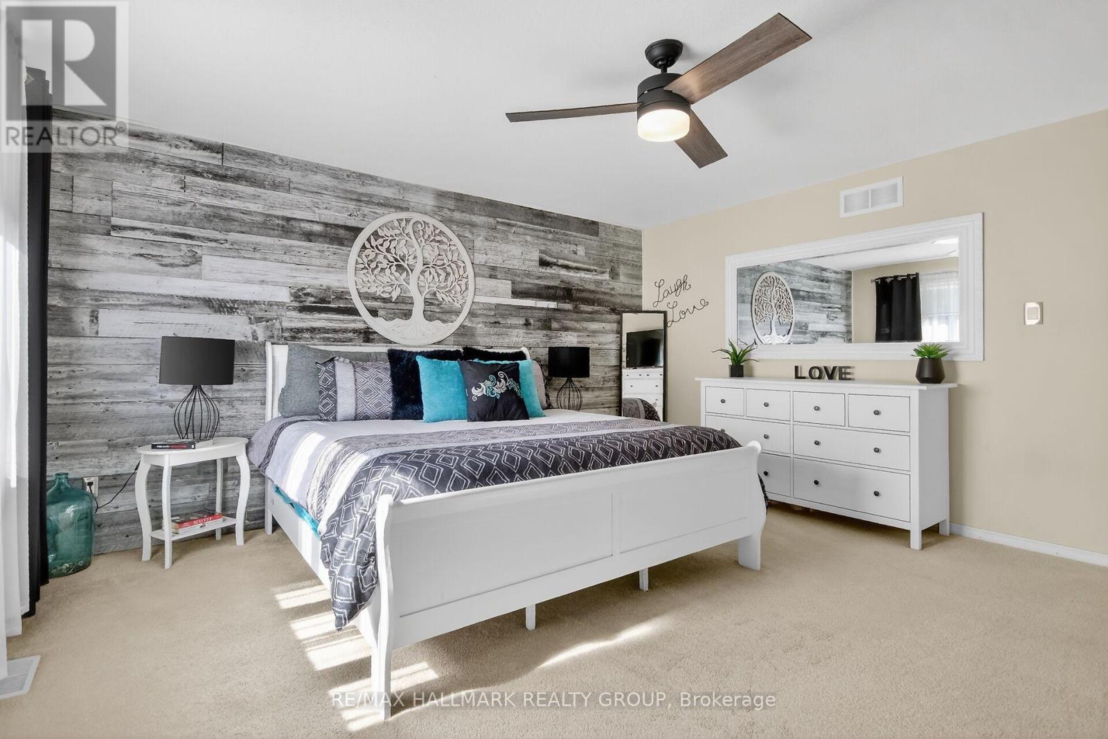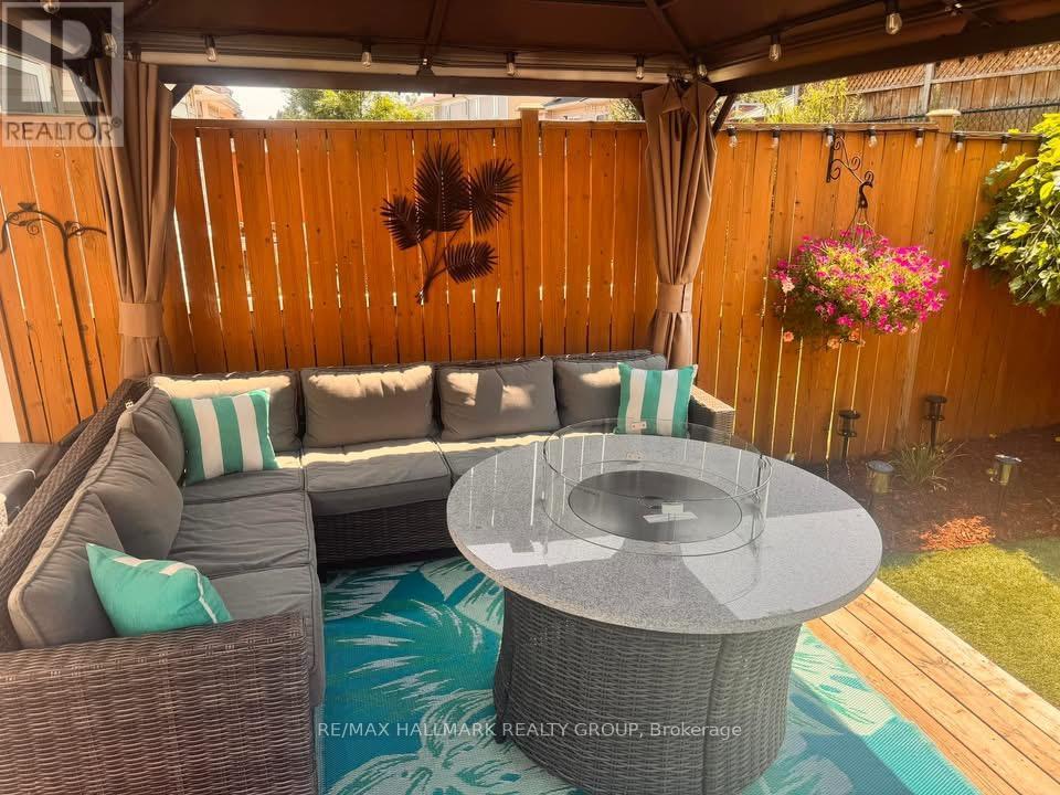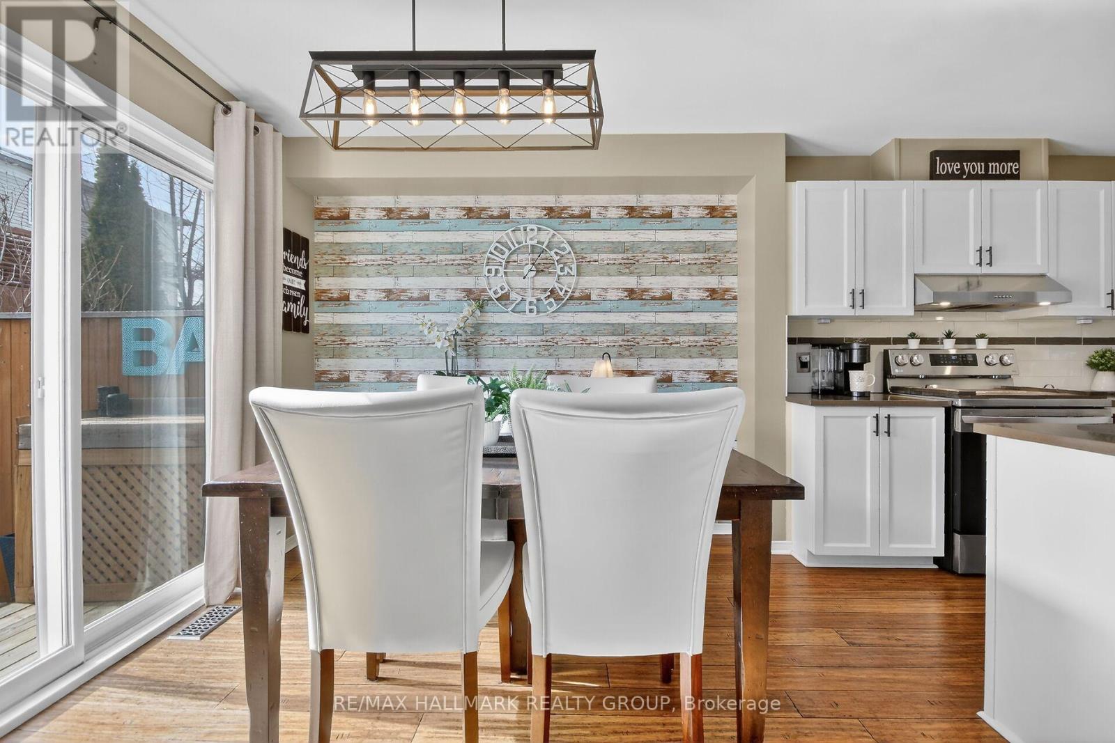 Minto Helmsley Townhome-this property is notable for its ample natural light, sophisticated decor, and peaceful setting. A front office/den ideal for home office kids play room. The main floor features bamboo flooring and an open-concept living area, enhanced by a floor-to-ceiling stone fireplace with a custom barn beam mantel. The spacious kitchen offers extensive cabinetry, generous quartz counter space, and a dedicated dining area. 2nd level has Primary bedroom with accent wall, ensuite bath an large walk in closet. 2 additional well-proportioned bedrooms, and a main bathroom. The fully finished lower level is ideal for a media room, play space, gym or hobbies. A fenced yard with a deck adjoining the kitchen area provides convenient access for outdoor entertaining and barbecuing. Located in east Barrhaven and not too far from the schools, shopping, the Ottawa River and parks. (id:31145)