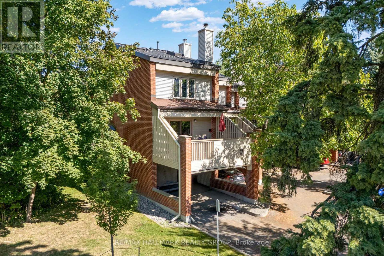 Welcome to 1-60 Greenfield -- Steps from the Rideau Canal and minutes to downtown, this 3-bed, 3-bath multi-level end-unit townhome blends city convenience with rare privacy, all while backing onto trees with no rear neighbours. Inside, the bright U-shaped kitchen boasts newer appliances (2022-2025), stone countertops and backsplash, an induction stove, a corner sink, and a large window overlooking the yard and trees. Natural hardwood runs through the dining and upper levels, complemented by shutters in the dining room. The living room features a fireplace and patio doors to a spacious terrace above the carport - perfect for hosting all season long. The private levels provide flexibility: a primary with an ensuite (corner shower), a skylit 4-piece bath with a jacuzzi tub and updated tile tub surround beside the second bedroom, and a third bedroom at the top, currently used as an additional lounge. The lower level expands the home with a full laundry room, walk-in workshop, storage, and a bonus room ideal as a gym, office, family room, or guest suite. Major systems are updated with a furnace & AC (2018). All this is just a stone's throw to the Canal, with quick in-and-out city access, and surrounded by shopping, dining, and recreation, a rare balance of downtown living and peaceful retreat. (id:31145)