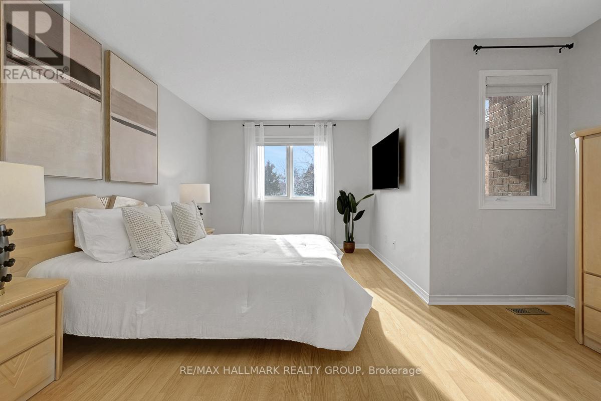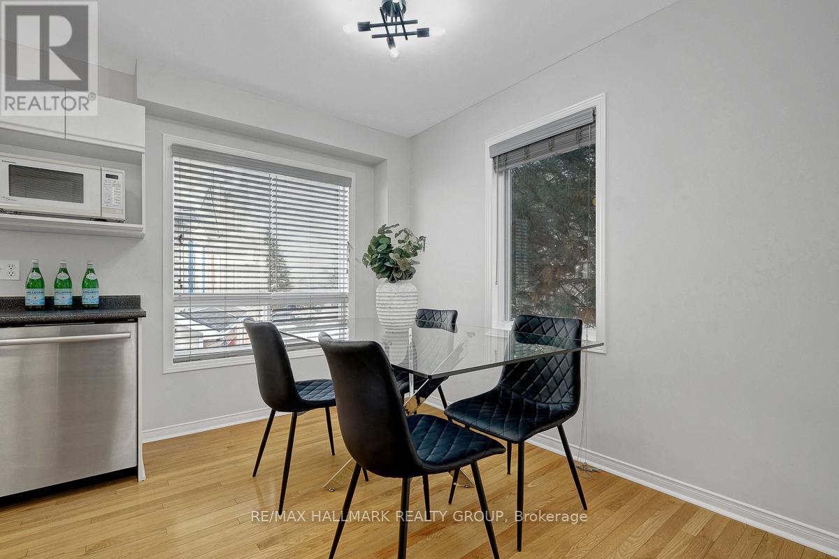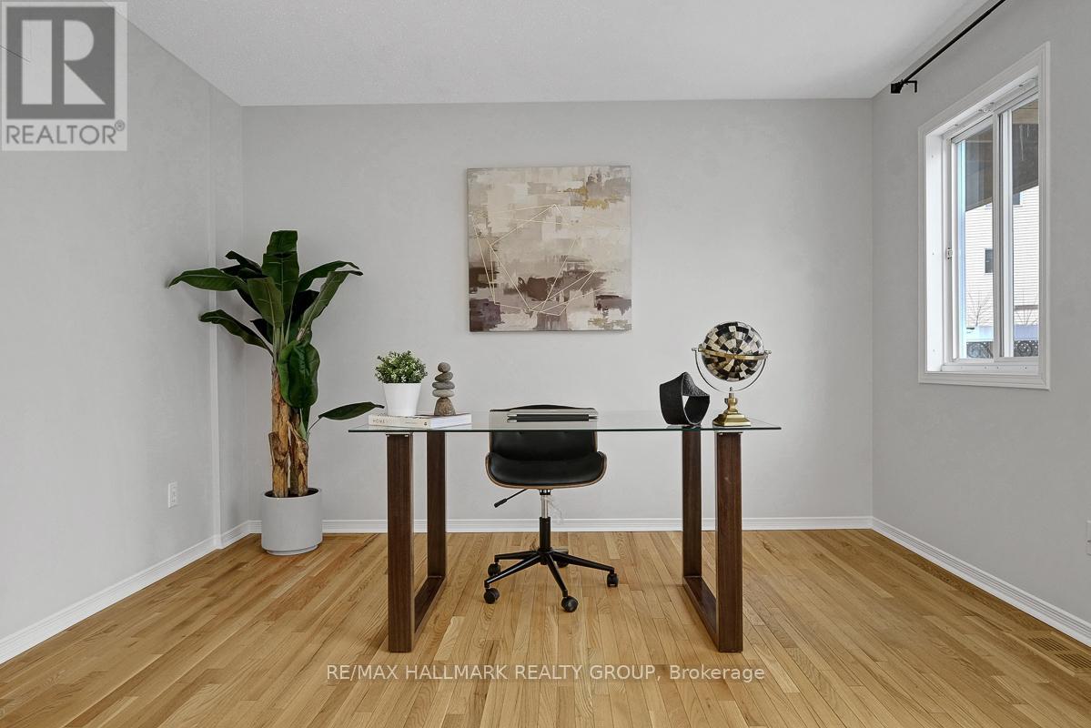 Welcome to 1 Rothbury Crescent - where your morning coffee comes with a park view and your evenings wind down in a fully fenced backyard with mature trees. This freehold end unit townhouse offers 1,725 sq.ft. across three above-grade levels in the established CFB Rockcliffe area, steps from the emerging Wateridge Village community. The main floor sets up well for flexible living; a room with its own walkout patio door to the backyard works as a third bedroom, home office, or den, plus a full bathroom. Head up to the heart of the home: an open-concept living and dining area with hardwood floors, large windows, fresh paint, and updated light fixtures. The east-facing eat-in kitchen is bright with natural morning light, freshly painted white cabinets, and real room to cook and gather. On the top floor, you'll find a generous primary bedroom that offers a walk-in closet, a solid second bedroom, and a second full bathroom. Outside, the corner lot gives you a patio and a large side yard that's fully fenced in PVC; more breathing room than most. Parking includes an attached garage plus a driveway for two. The basement houses laundry and additional storage. Recent updates include: furnace and A/C (2023), rental hot water tank (2023), driveway (2020), and new fire alarms with carbon monoxide detection (2026). The location delivers: Montfort Hospital is five minutes away, La Cité Collégiale and the Cineplex on City Park are nearby, and Costco, St. Laurent Shopping Centre, and Gloucester Centre are all within ten minutes. Quick access to both the 417 and 174 makes commuting easy in any direction. A practical, well-maintained home with real square footage, a park at your front door, and a location that works. Don't miss out! (id:31145)