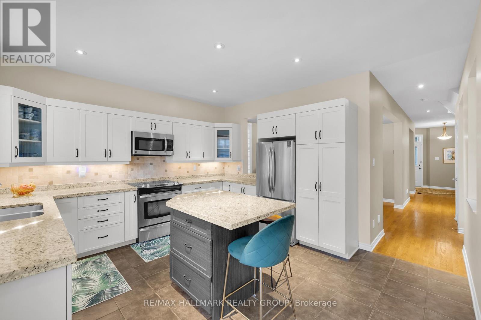Well-maintained 4 bedroom, 3 bathroom home with a double car garage, located in a desirable Stittsville neighbourhood close to shopping, restaurants, parks, trails, and excellent schools. The home offers strong curb appeal and a bright, functional layout. The main level features large windows, 9ft ceilings, pot lights, and hardwood fooring throughout the formal living and dining areas. A stone-surround freplace anchors the main living space. The spacious eat-in kitchen includes granite countertops, stainless steel appliances, ample cabinetry with pantry storage, and a centre island, all open to the main living area. Convenient main foor laundry comes with additional storage. The second level offers a primary bedroom with walk-in closet and ensuite featuring a soaker tub and a large walk-in shower. Three additional well-sized bedrooms share a full bathroom. The unfnished lower level provides fexibility for future development. Fully fenced backyard with interlock patio, storage shed, and hot tub (professionally winterized each year), and a gas BBQ hook up. A solid family home in a highly sought-after location. Recent upgrades: Roof (2019), Furnace (2020). (id:31145)