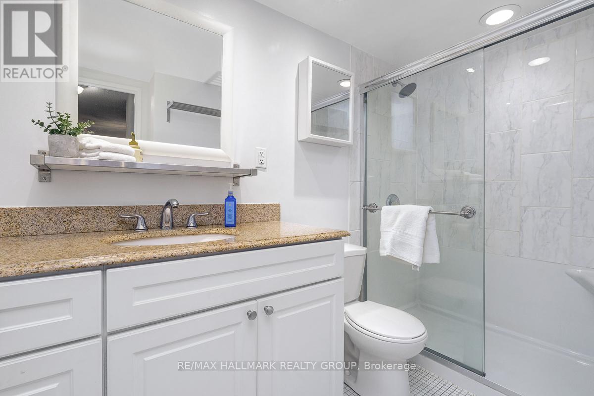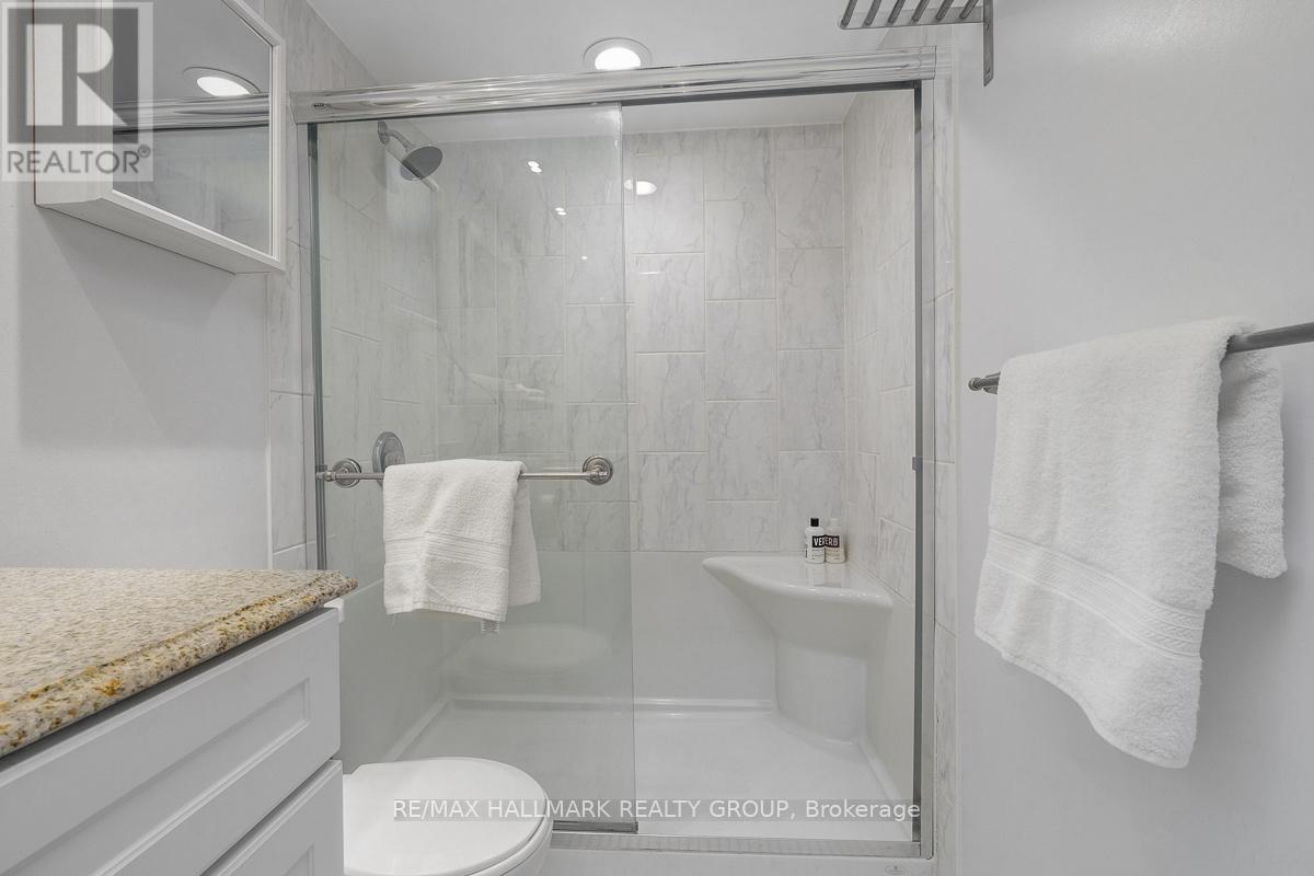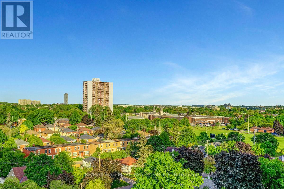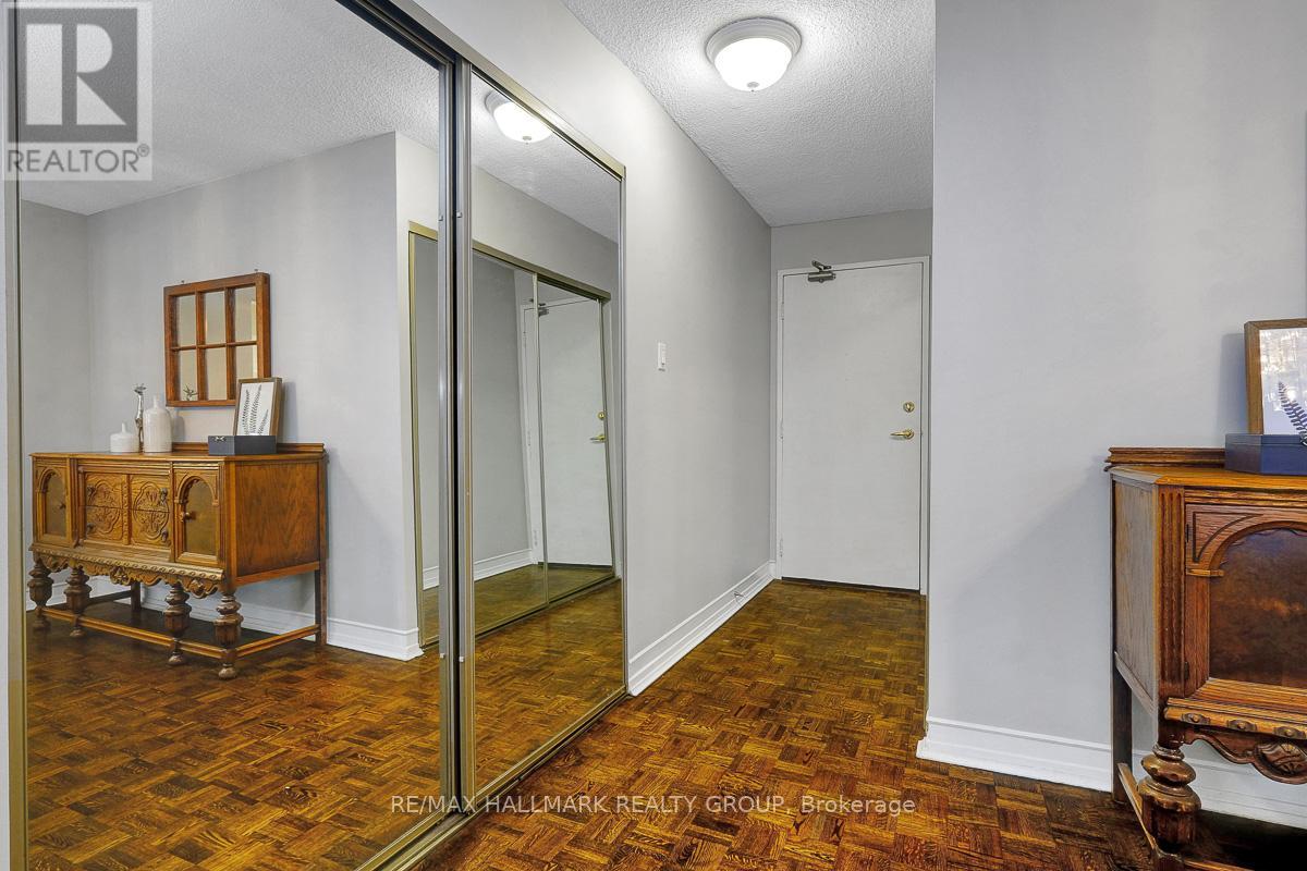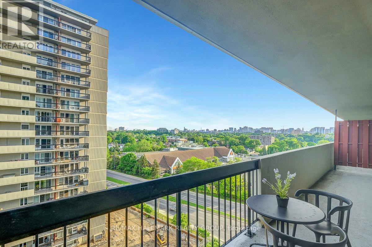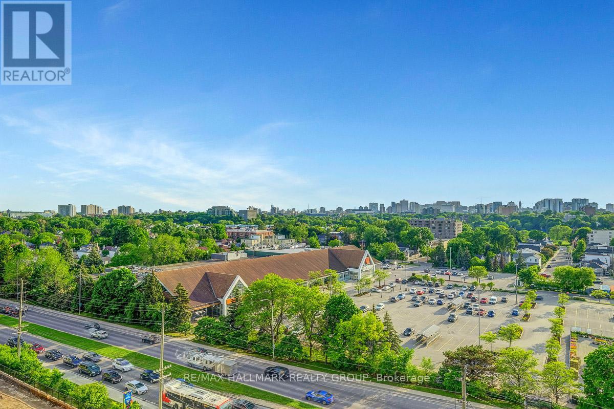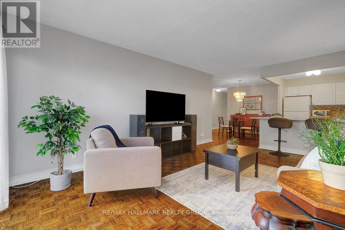 Welcome to Chateau Vanier, a well-managed condo community offering resort-style amenities just minutes from downtown. This bright and freshly painted 2 bedroom, 1 bathroom unit on the 10th floor makes a strong first impression with sunset views, city skyline glimpses, and a rare 30-foot balcony - a peaceful outdoor space to enjoy morning coffee or unwind in the evening. Inside, the layout is open and welcoming. The upgraded kitchen features classic white cabinets, glass tile backsplash, a breakfast bar, updated countertops, porcelain tile flooring, and plenty of storage. The open-concept living and dining areas have been freshly painted in a trendy modern wall tone by Benjamin Moore, complemented by refinished parquet hardwood flooring that brightens the entire space. Both bedrooms are great sizes, with generous closet space and large windows. The bathroom has been tastefully updated with a granite-topped vanity and a sleek, glass-enclosed shower. The entryway includes mirrored bi-fold closet doors, adding both storage and a sense of spaciousness. A large in-unit storage room offers excellent pantry, seasonal, or utility space - an added bonus not always found in comparable condos. This unit comes with 1 exclusive-use underground heated parking space. Residents enjoy access to top-tier amenities including a heated indoor saltwater pool, fitness centre, men's and women's saunas, library, party/meeting rooms, indoor car wash bay, EV charging stations, bike storage, workshop, and beautifully landscaped grounds. The community is quiet and friendly, appealing to professionals, retirees, and downsizers alike. Located near public transit, the Rideau River, Riverain Park, the Rideau Tennis Club, and grocery options like Loblaws, FreshCo, and Green Fresh Market. You're just minutes from downtown, the University of Ottawa, and the future Montreal Road revitalization. A perfect mix of lifestyle and locationthis is condo living made easy. (id:31145)