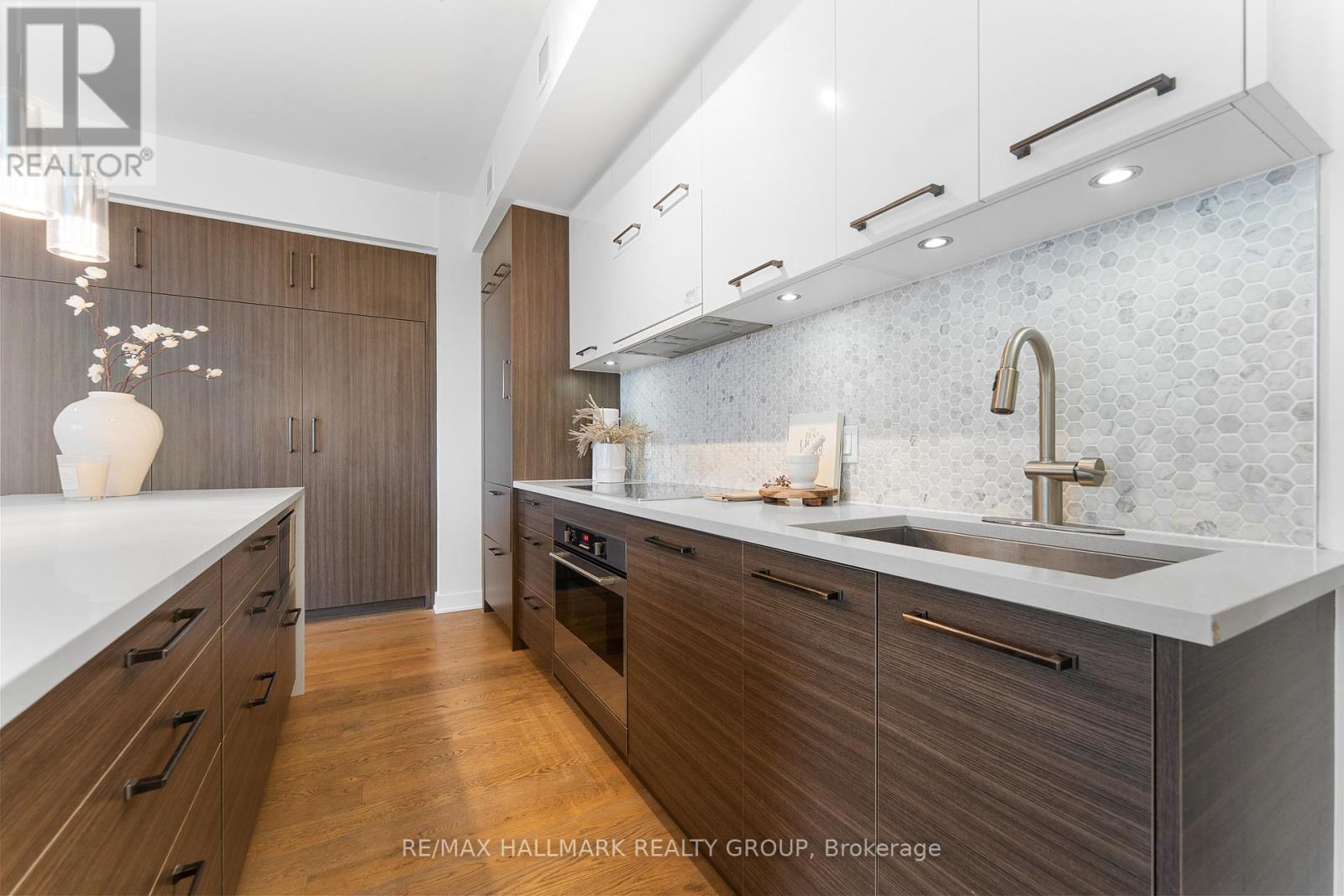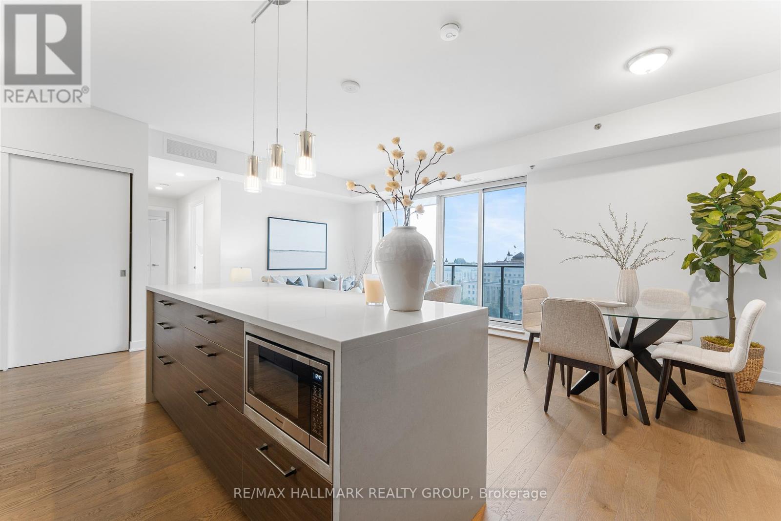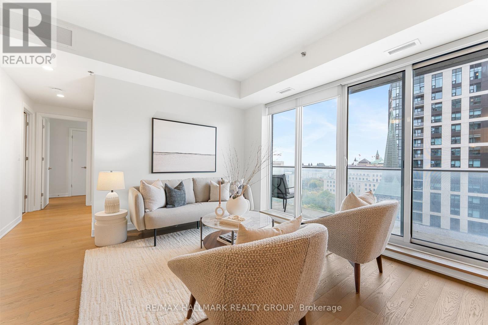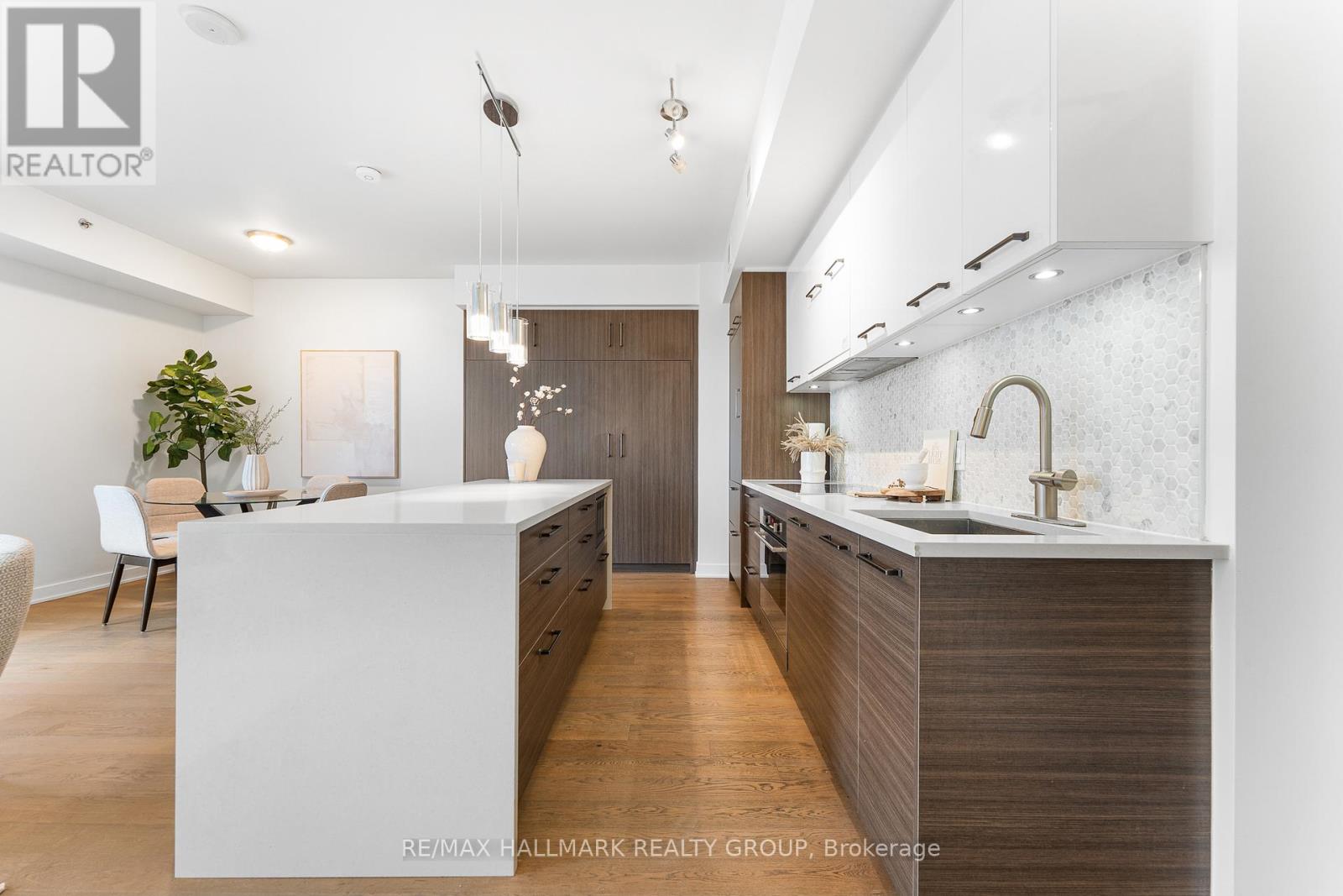 Welcome home to Cathedral Hill - where luxury meets lifestyle in the heart of Ottawa! Discover this spectacular two bedroom, two FULL bathroom condo perched high on the 10th floor at 428 Sparks Street.Offering breathtaking views of the Ottawa River, downtown skyline, Gatineau Hills and Parliament, this condo delivers a daily dose of inspiration from sunrise to sunset. Inside, an airy open-concept layout is bathed in natural light from floor-to-ceiling windows, complemented by rich hardwood floors throughout.The designer European kitchen is a true showpiece - featuring mosaic backsplash, two-tone cabinetry with integrated lighting, built-in appliances, and a stylish island with breakfast bar - perfect for morning coffee or entertaining guests.The elegant Primary Bedroom boasts a spacious walk-in closet and a spa-inspired ensuite complete with a glass shower AND deep soaker tub. A generous second bedroom, full main bathroom, and in-suite laundry add comfort and convenience to everyday living. Perfect for hosting guests, families or even an at home office, if desired. Step out onto your private balcony to take in panoramic city and river views - the perfect setting to unwind after a long day. This condo also comes with secure underground parking and a full storage locker. This is luxury living in an environmentally friendly LEED certified building! Residents of Cathedral Hill enjoy access to premium amenities including a fitness centre, yoga studio, party room, pet wash station, and concierge service. All this in an unbeatable downtown location - only steps to the Lyon LRT station, Lebreton Flats, Parliament Hill, the ByWard Market, and so much more. Experience upscale urban living at Cathedral Hill - urban luxury at its finest! Come fall in love today. (id:31145)
