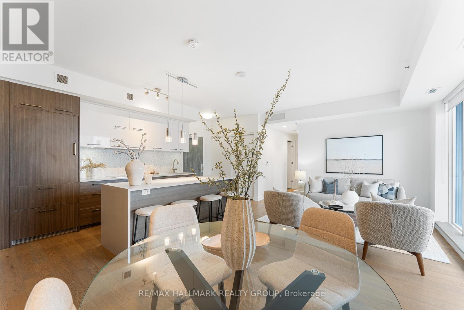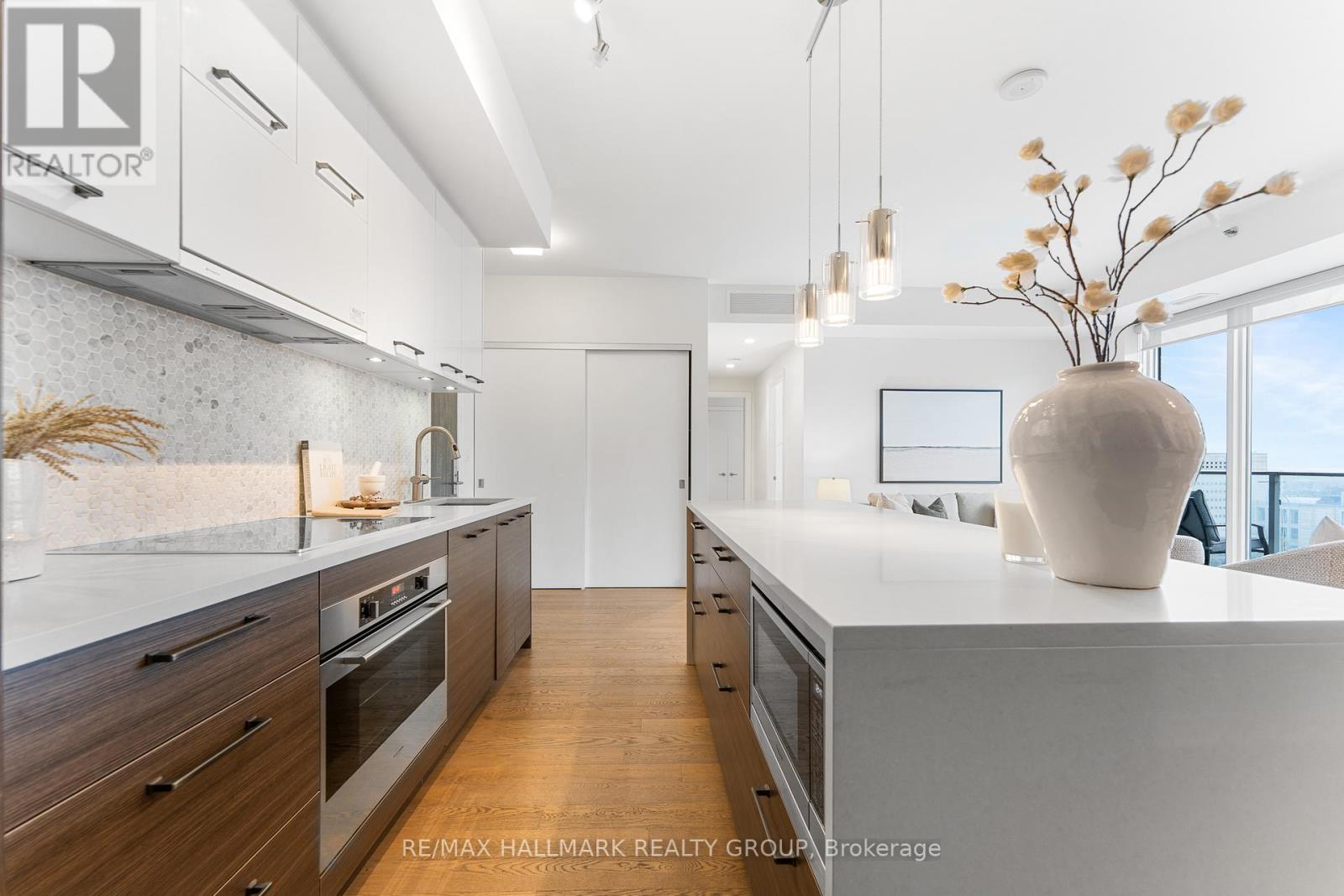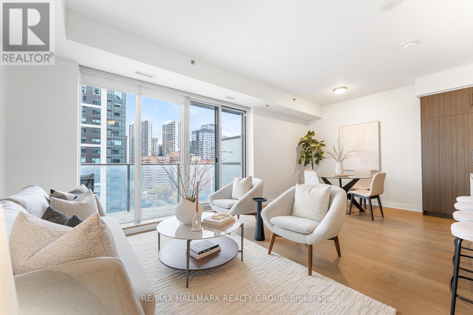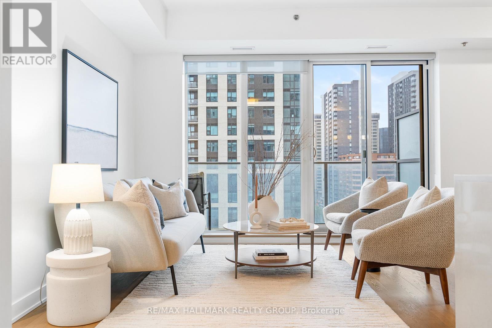 Welcome home to Cathedral Hill - where luxury meets lifestyle in the heart of Ottawa! Discover this spectacular two bedroom, two FULL bathroom condo perched high on the 10th floor at 428 Sparks Street.Offering breathtaking views of the Ottawa River, downtown skyline, Gatineau Hills and Parliament, this condo delivers a daily dose of inspiration from sunrise to sunset. Inside, an airy open-concept layout is bathed in natural light from floor-to-ceiling windows, complemented by rich hardwood floors throughout.The designer European kitchen is a true showpiece - featuring mosaic backsplash, two-tone cabinetry with integrated lighting, built-in appliances, and a stylish island with breakfast bar - perfect for morning coffee or entertaining guests.The elegant Primary Bedroom boasts a spacious walk-in closet and a spa-inspired ensuite complete with a glass shower AND deep soaker tub. A generous second bedroom, full main bathroom, and in-suite laundry add comfort and convenience to everyday living. Perfect for hosting guests, families or even an at home office, if desired. Step out onto your private balcony to take in panoramic city and river views - the perfect setting to unwind after a long day. This condo also comes with secure underground parking and a full storage locker. This is luxury living in an environmentally friendly LEED certified building! Residents of Cathedral Hill enjoy access to premium amenities including a fitness centre, yoga studio, party room, pet wash station, and concierge service. All this in an unbeatable downtown location - only steps to the Lyon LRT station, Lebreton Flats, Parliament Hill, the ByWard Market, and so much more. Experience upscale urban living at Cathedral Hill - urban luxury at its finest! Come fall in love today. (id:31145)