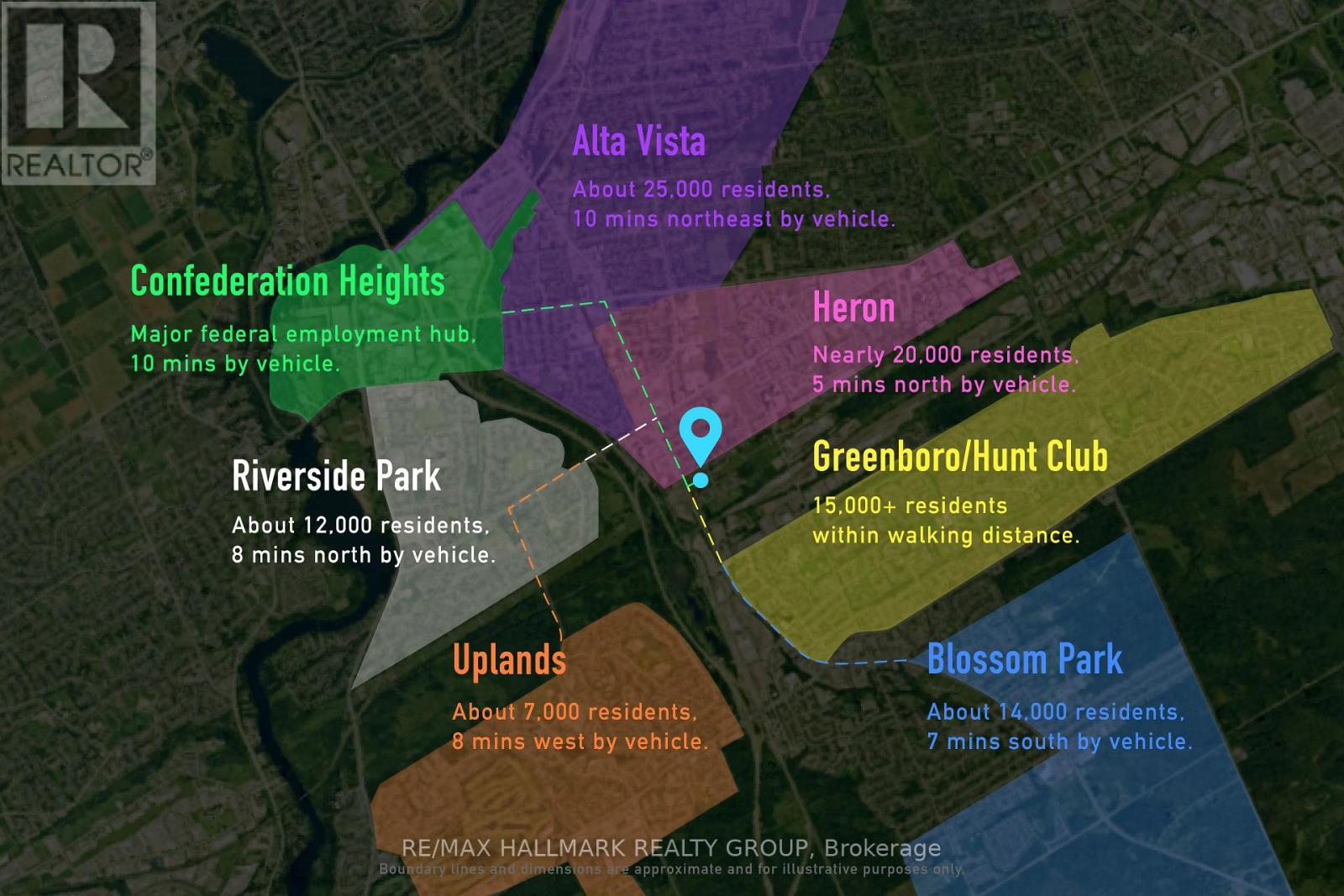 Corner retail investment on Ottawa's Bank Street: three connected ground-floor commercial condo units totaling 1,416 sq. ft. with prominent corner exposure, open retail floorplan, broad storefront glazing, and dedicated sign boxes above each unit; on-site customer parking and a professionally managed condo setting support efficient operations and predictable carrying costs. Minutes to South Keys Shopping Centre and the Heron Bank retail corridor high-traffic destinations anchored by national brands (Walmart/Best Buy; Home Depot/Canadian Tire)with steady demand from Greenboro, Blossom Park, South Keys and Alta Vista, plus commuter flows via Hunt Club Road and Airport Parkway and established transit along Bank Street. The property is leased, generating stable annual income of approximately $47,500 net, with a two-year renewal option positioning this asset for durable cash flow today and sensible upside at rollover. (id:31145)