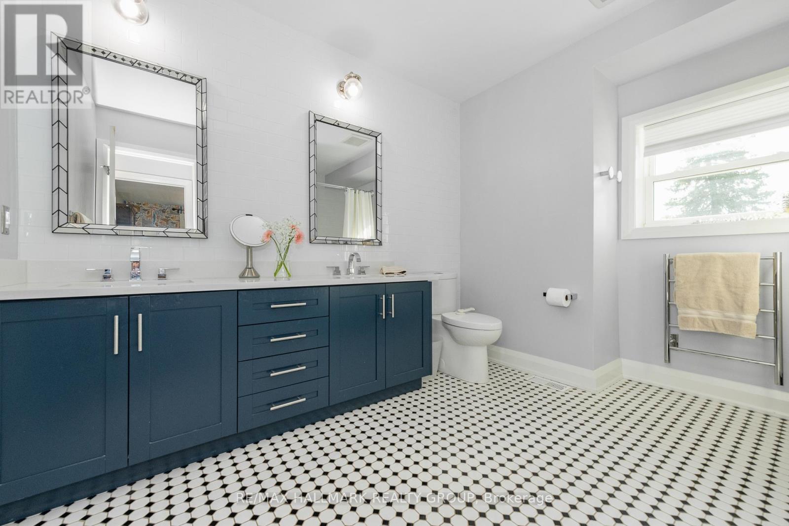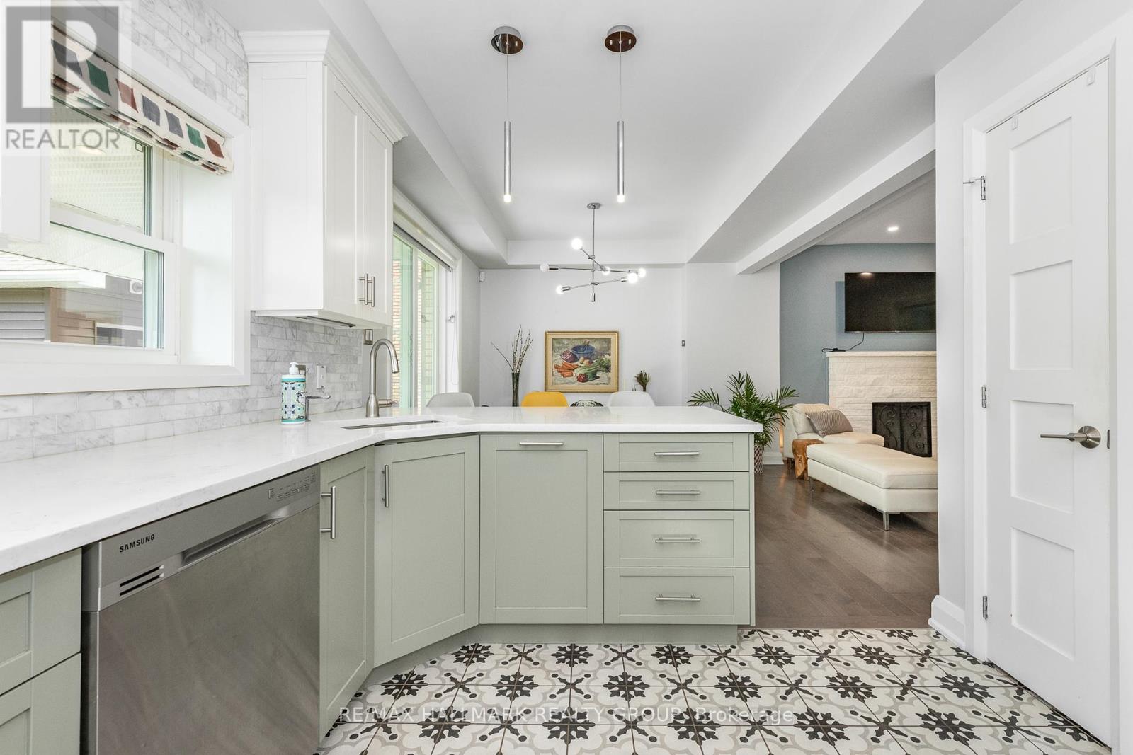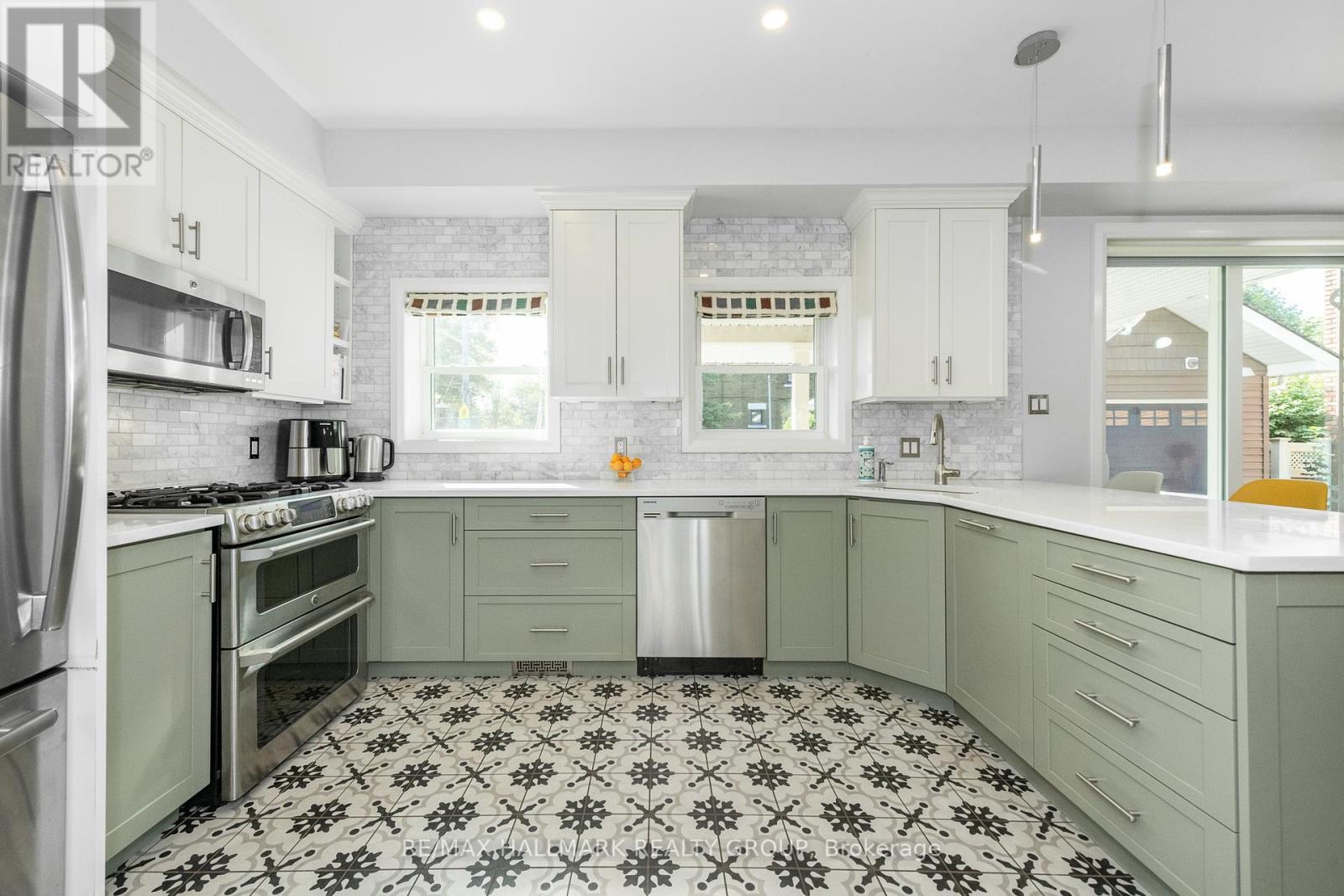 Nestled on an extra deep corner lot in the coveted Elmdale Public School District, this smart 3 bedroom/2 bathroom detached home has undergone a complete transformation from top to bottom, inside and out. Everything has been done so you can simply move in and start living! The main floor is both welcoming and efficient featuring a spacious foyer, open concept living and dining areas and an immaculate modern kitchen with a breakfast bar, pantry, Carrara marble backsplash, quartz counters, large windows and patio doors leading to a covered BBQ deck with a dedicated gas line. Three bedrooms, all with good closet space and a huge family bathroom with heated floors, double sinks, and an extra deep soaker tub are located upstairs. The full height basement offers plenty of extra room to spread out; with a family room, office or guest bedroom (you choose), and a spacious three-piece bathroom, this level adds a whole new dimension of usable space. Custom built-in storage adds to the appeal so everything has a place. The oversized detached garage is a standout feature. Fully rebuilt in 2020 it offers more than just parking; it's a flexible space ready for whatever you need whether that's a studio, a personal gym, or simply an extra space to retreat. French doors open onto the lawn and oversized windows let in lots of natural light and air. Plus, it's spray foam insulated and heated, so its comfortable year-round, and a pull down staircase provides extra storage above. All this on a spectacular south facing yard measuring 50' x 117' surrounded by a mature hedge and flowering gardens. Lots of room for a pool, trampoline, vegetable garden and more. So if you're into hosting summer barbecues, need space for the kids to do cartwheels or just want to unwind outdoors, you'll absolutely love this yard! In a neighbourhood that's both established and vibrant, this home offers modern convenience without compromising charm. It's move-in ready, and truly a turn-key opportunity. (id:31145)