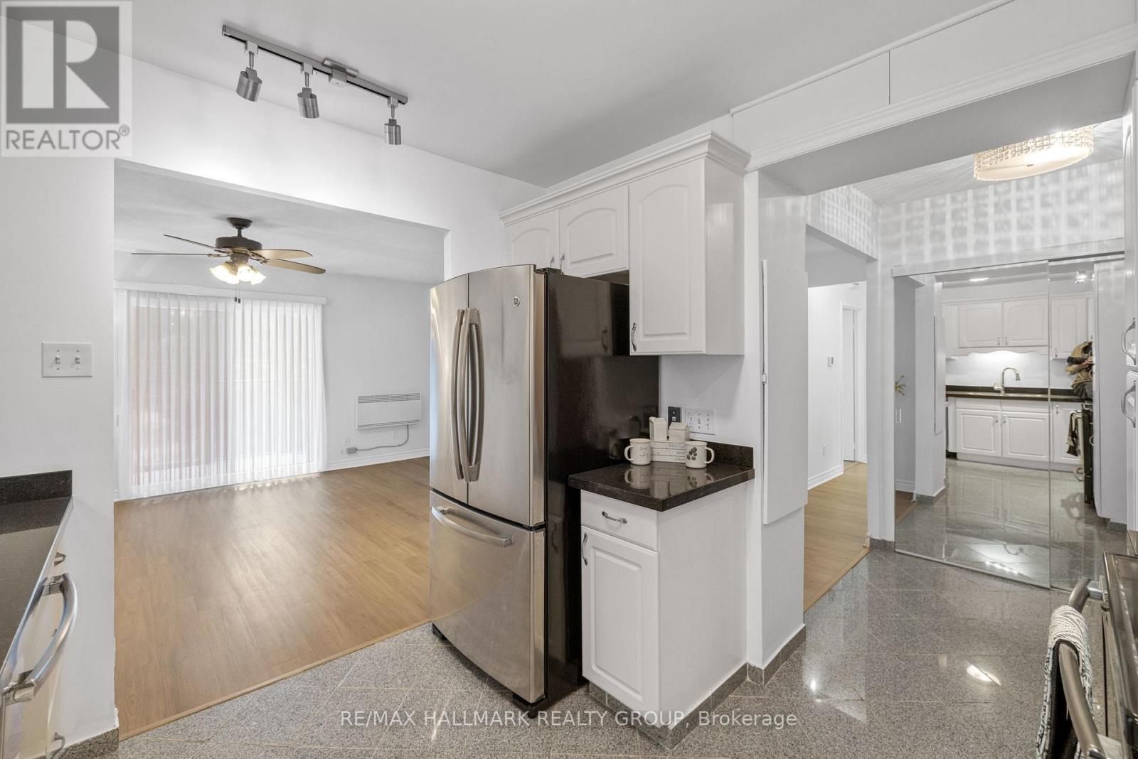Rarely offered ground-floor 2 bedroom, 2 bathroom condo with solarium in the highly sought-after Atriums of Kanata. This bright and modern unit offers unbeatable accessibility with no elevator required and direct outdoor access from the solarium, perfect for walkers, wheelchairs, or anyone seeking a low-maintenance lifestyle. Enjoy peaceful, views of the private forest from every window and avoid the summer heat with your North West facing unit. The spacious floor plan includes a large living and dining area, a renovated kitchen with granite counters and stainless steel appliances, updated bathrooms, and in-unit laundry. The primary bedroom features a 3-piece ensuite and double closets, while the second bedroom works beautifully for guests or a home office. Recent upgrades include new windows (2023), new heat pump (2024), fresh paint, updated flooring, lighting, and more. The solarium provides a cozy retreat to snuggle up with a book or to get some fresh air. This well-managed and quiet building offers resort-style amenities: outdoor pool, BBQ area, tennis and squash courts, fitness centre hot tub, library, party room, workshop, bike storage, and forest walking trails. Includes indoor parking and an large storage locker. Cat-friendly building with no dogs or smoking as per condo rules. A rare opportunity for ground-level condo living in a vibrant, amenity-rich, adult-friendly community close to shopping, transit, parks, and green space. Immediate Occupancy available! *Some photos have been virtually staged. Schedule B must be included with all offers see attachment's. Rental application, credit report, pay stubs, and proof of employment must be submitted with the application. Immediate possession available, Please give MIN 72 hours irrevocable for landlord to review the applications (id:31145)