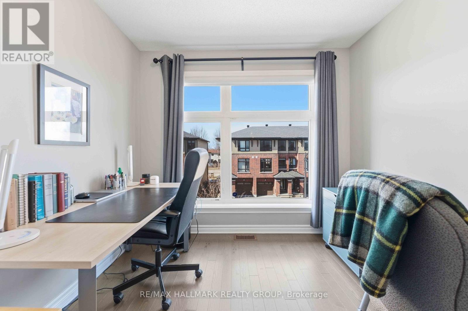 Welcome to this stunning Richcraft END UNIT townhome, offering modern style, functional living & exceptional natural light throughout. The main level features a versatile den with hardwood flooring, perfect for a home office, gym, or flex space. The bright, open concept second level is designed for both everyday living and entertaining, highlighted by pot lights & beautiful hardwood floors. The contemporary kitchen boasts crisp white cabinetry, a spacious island with seating, and seamless flow into the dining and living areas. Step out onto your private balcony, ideal for morning coffee or evening relaxation. Upstairs, the third level continues with hardwood flooring and offers a generous primary bedroom complete with a walk-in closet and a private ensuite featuring a glass shower. One additional well-sized bedroom, a full main bathroom, and convenient third-floor laundry complete this level. The lower level provides ample storage space, while the extra long garage with built-in shelving adds practical functionality. The widened driveway with interlock allows for additional parking - a rare and valuable feature. Located in a highly desirable, transit-friendly community close to schools, shopping, restaurants, and recreation, this home offers the perfect blend of comfort, style, and convenience. (id:31145)
