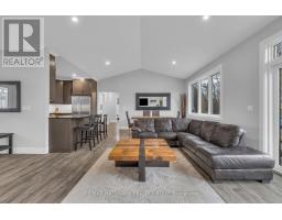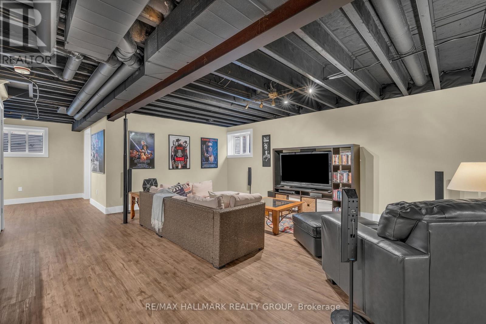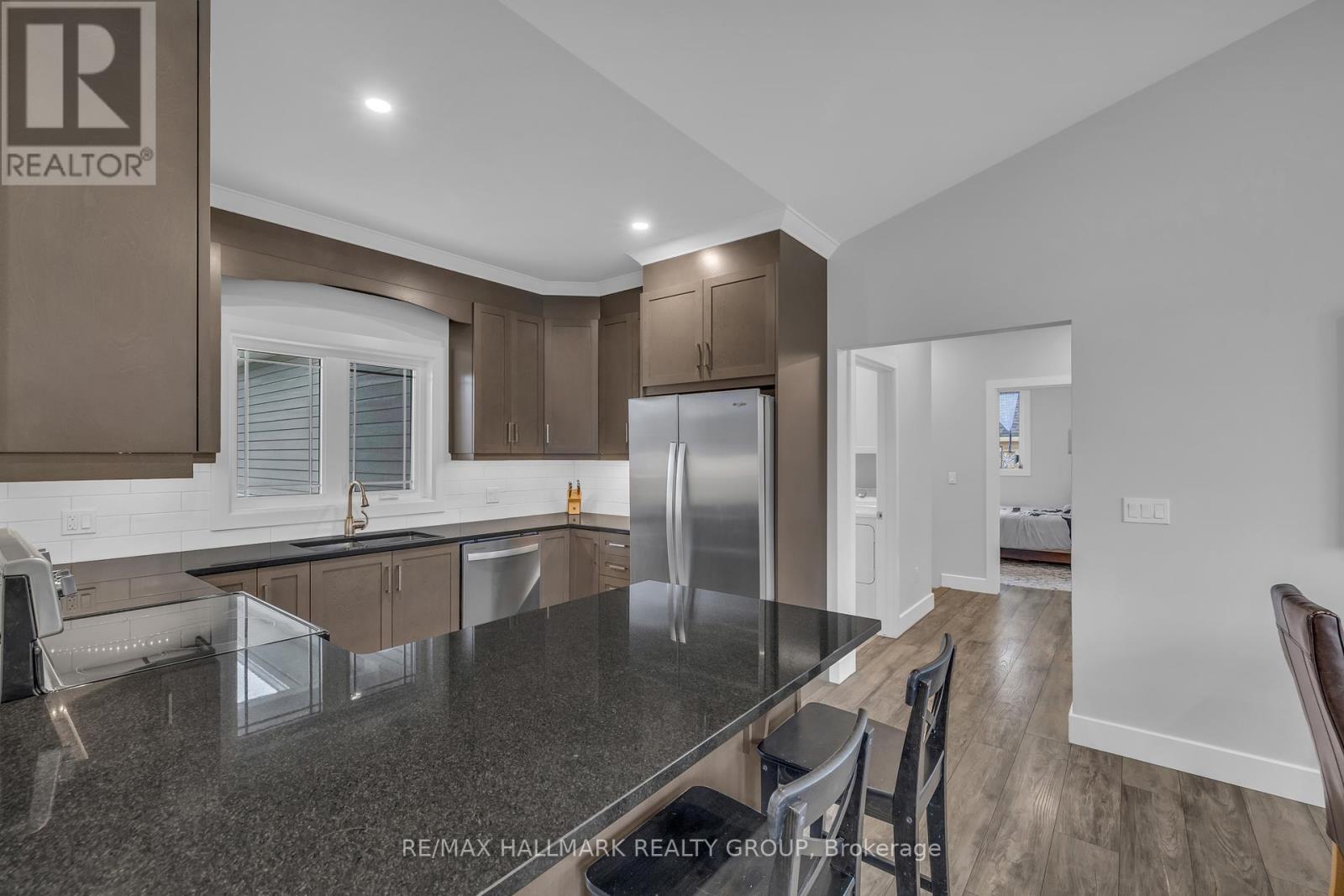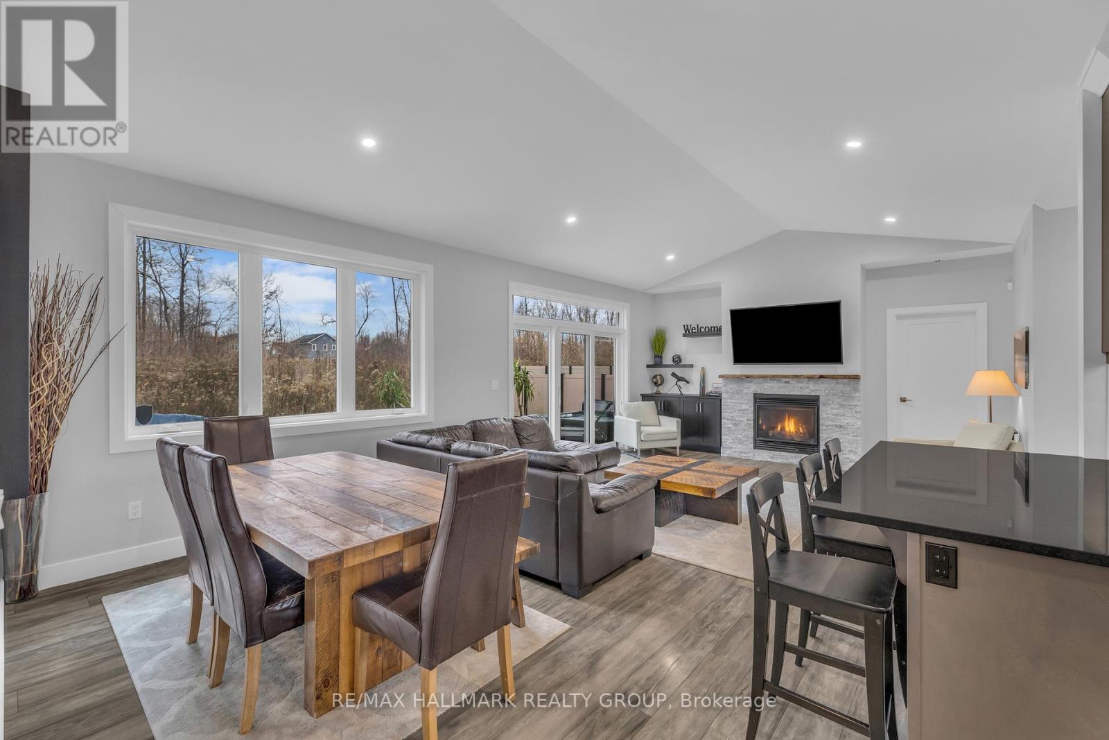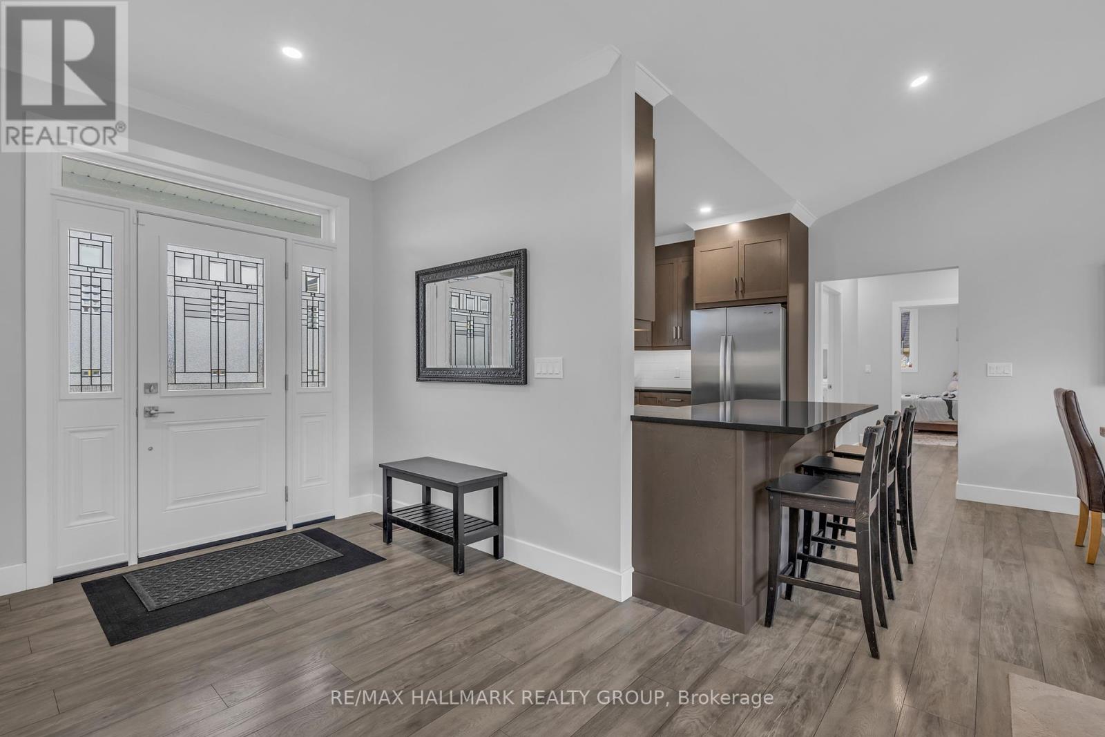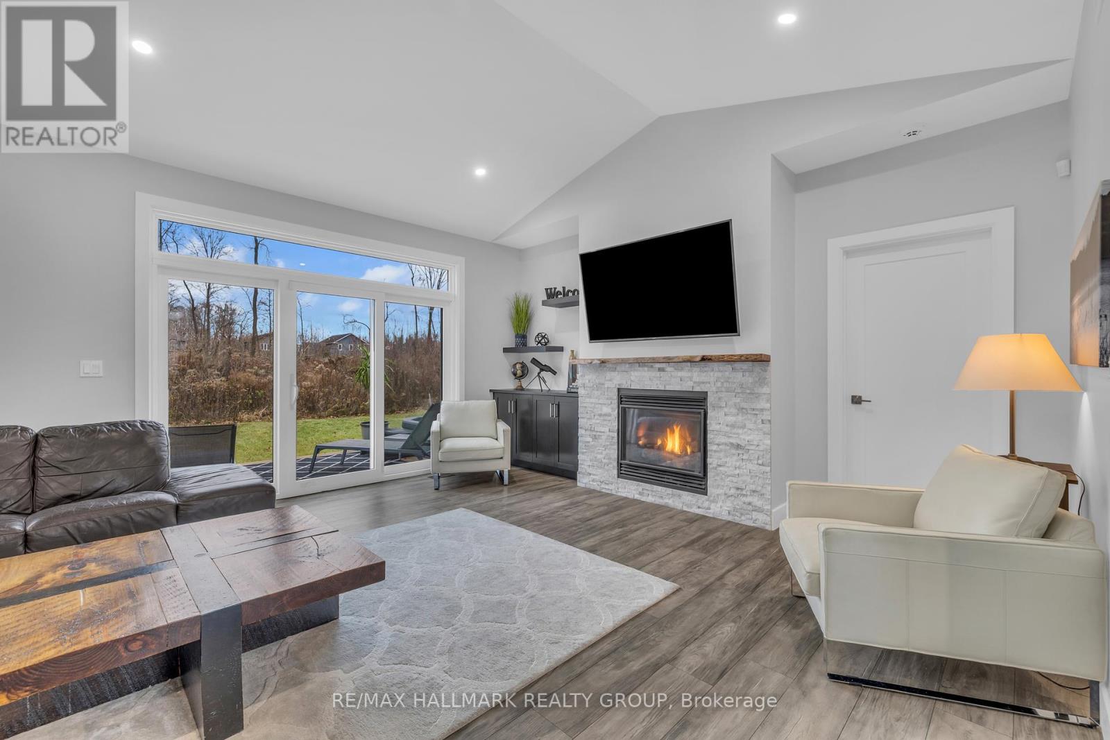 Welcome to 1077 Shearer Drive, nestled in the newest and most sought-after phase of Brockville's premium Bridlewood subdivision. This upscale bungalow sits proudly on a spacious double lot with no rear neighbours, offering privacy and room to grow. Step inside and fall in love with the bright, open-concept living and dining area, where vaulted ceilings, a cozy gas fireplace, and custom built-in cabinetry create the perfect balance of warmth and sophistication. The kitchen features moody cabinetry, sleek black quartz countertops, and a functional eat-at peninsula - the ideal setting for both family breakfasts and evening entertaining. A convenient mudroom/laundry room combination connects directly to the true two-car garage, keeping daily life organized and effortless. The primary suite is a serene retreat with a private 3-piece ensuite and walk-in closet, while two additional generously sized bedrooms and a 4-piece bath complete the main floor. Downstairs, discover a spacious finished rec room with plenty of room for a pool table and family movie nights, plus a dedicated office area, guest bedroom, and rough-in for a future bathroom - offering flexibility for multigenerational living or rental potential. Step out to your backyard oasis, where an above-ground pool promises endless summer enjoyment. The freshly paved driveway is the cherry on top, adding convenience and curb appeal. This home truly checks every box offering style, space, and smart value. Don't overpay for less elsewhere; this may be the best value in Brockville and a solid investment for the discerning home buyer. (id:31145)