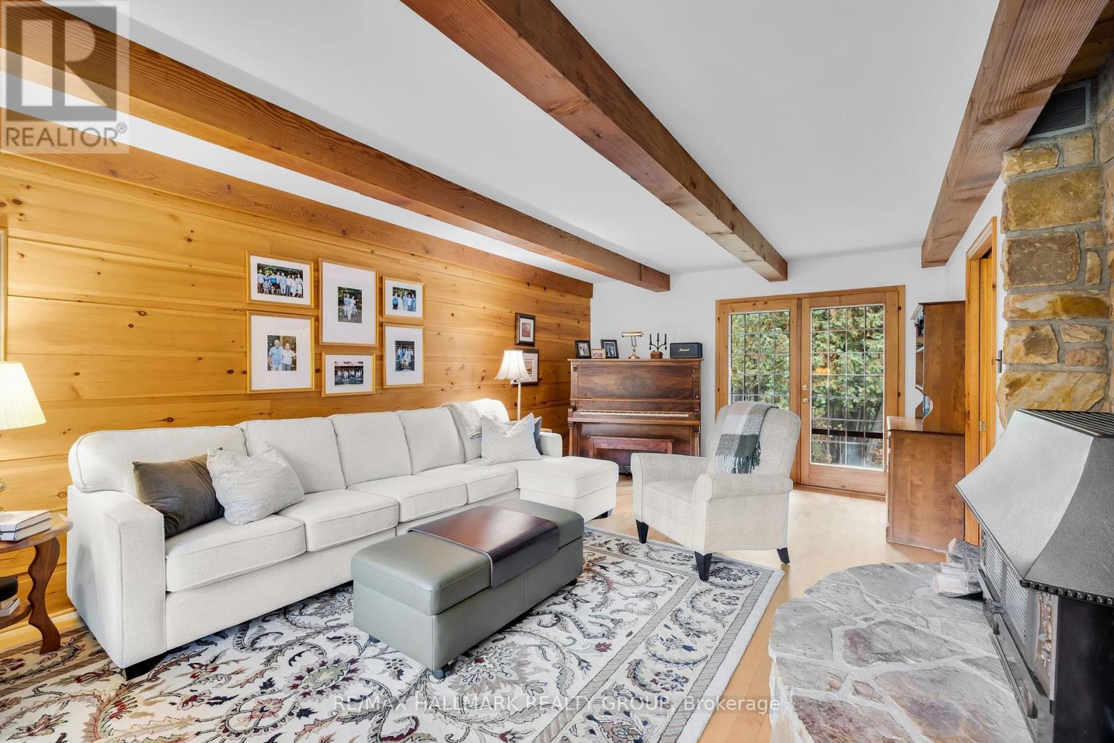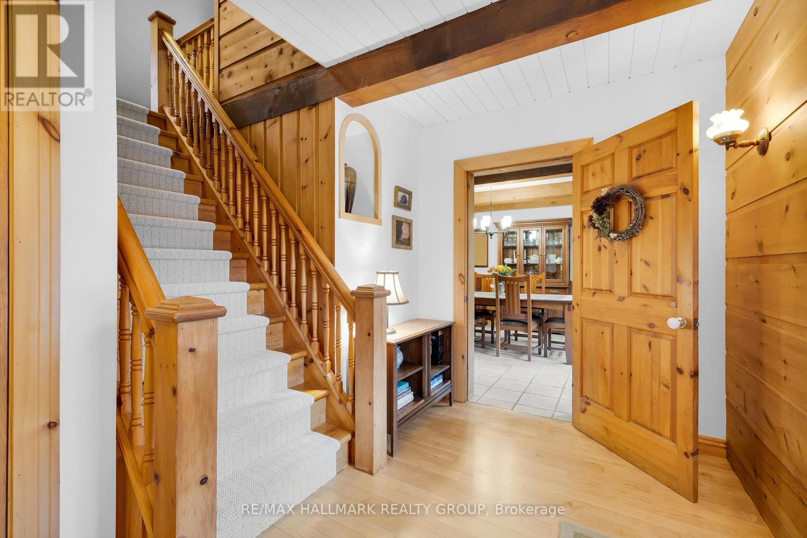 OH: Sat., April 4, 1-3 pm. Set in the waterfront community of Dunrobin, on a private 4.3acre lot surrounded by trees, this beautiful spacious log home offers the perfect blend of rustic charm, privacy, & thoughtful design. Crafted for efficiency and low maintenance, this home is surrounded by nature and exudes warmth at every turn. The main level welcomes you w/ a cozy living room featuring a stone-masonry wood-burning stove, ideal for relaxing evenings w/ family & friends. Patio doors lead you to a large, private backyard, where nature surrounds you; an ideal space for summer barbecues, kids at play, or simply unwinding in peace. A family room provides even more space to unwind, ideal for movie nights, games, or a quiet reading corner. The kitchen is a delight, w/ custom wood cabinetry, hidden storage, exposed beams, & a warm eating area w/ another wood-burning stove. A powder room, mud room, & a laundry room complete the main floor. Upstairs, you'll find four comfortable bedrms w/ large closets and two baths, offering plenty of room for family and guests. The huge two-car garage, currently used as a woodworking shop w/ a woodstove to keep warm in the winter months, also features a loft that can be transformed into an apartment, music studio, lounge, or creative space, whatever suits your lifestyle. Outdoors, a large cedar deck is perfect for entertaining, while a play structure & and wooden shed adds convenience and fun for the family. Throughout the home, the woodwork is exquisite from the staircase to the exposed ceiling beams, giving this log home its unique charm. Backing onto 16 acre of park land & located just minutes from the Ottawa River, where you can enjoy paddling, boating, or relaxing along the shore, local snowshoeing, cross-country skiing, walking, biking paths, tobogganing, as well as shopping & amenities in Kanata North, the Eagle Creek Golf Course, this home has been lovingly cared for by its original owners, reflecting true pride of ownership. (id:31145)