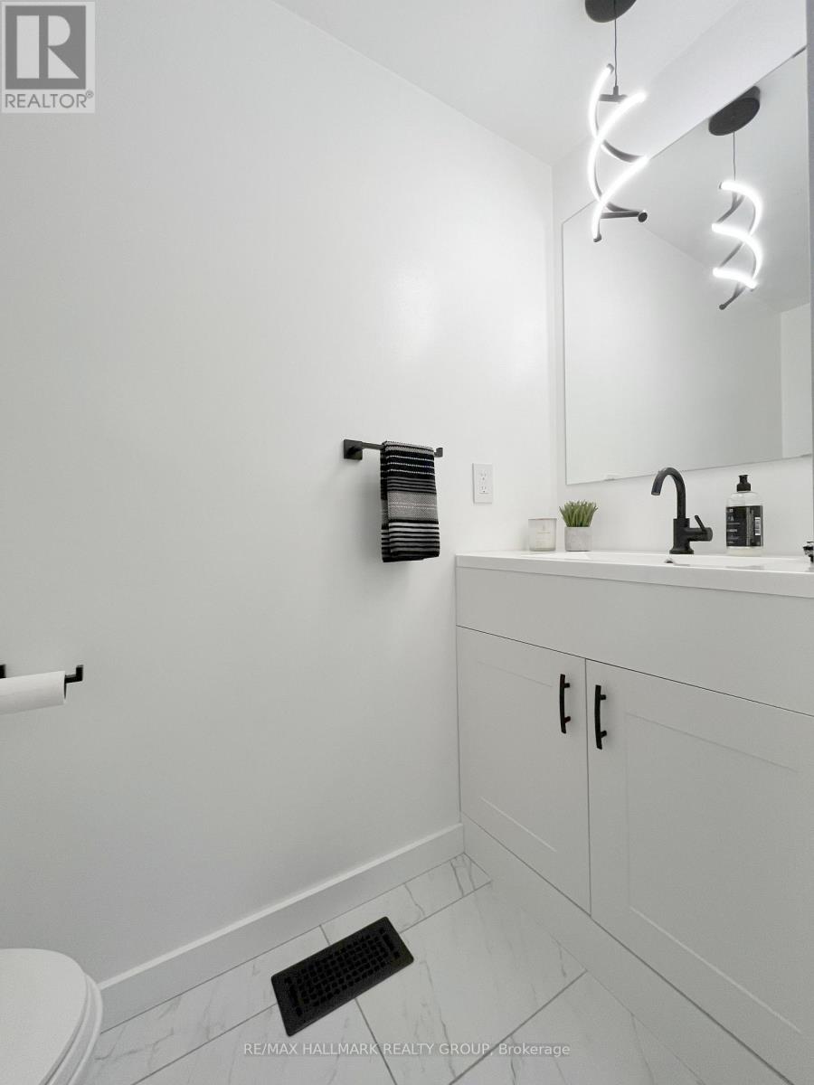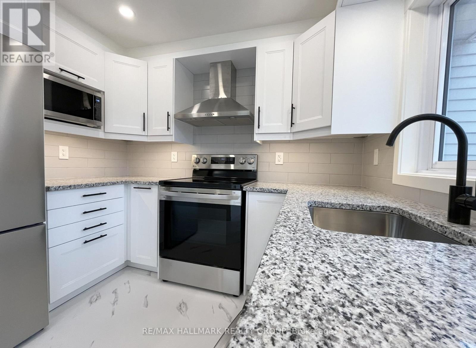 Welcome to 94 Esterlawn Private a beautifully updated 3 bedroom 1 1/2 bath condo with nothing to do but move in and enjoy! This multi level property has been tastefully updated with new flooring, kitchen and fresh paint. The Foyer has inside entry from the garage. The dining area overlooking the living room with an electric fireplace makes for cozy entertaining. The newly updated kitchen features granite counter tops and pot lighting. The eating area has a new coffee bar and extra cabinets opening to a generous sized balcony/deck that provides a wonderful outdoor living area. The third floor of the unit has three bedrooms and a full bathroom. The floor plan of the Primary Bedroom has been modified to include a walk in closet with a pocket door not found in the original units that provides ample storage space. A perfect location that is close to schools, public transit and is walking distance to shopping. (id:31145)