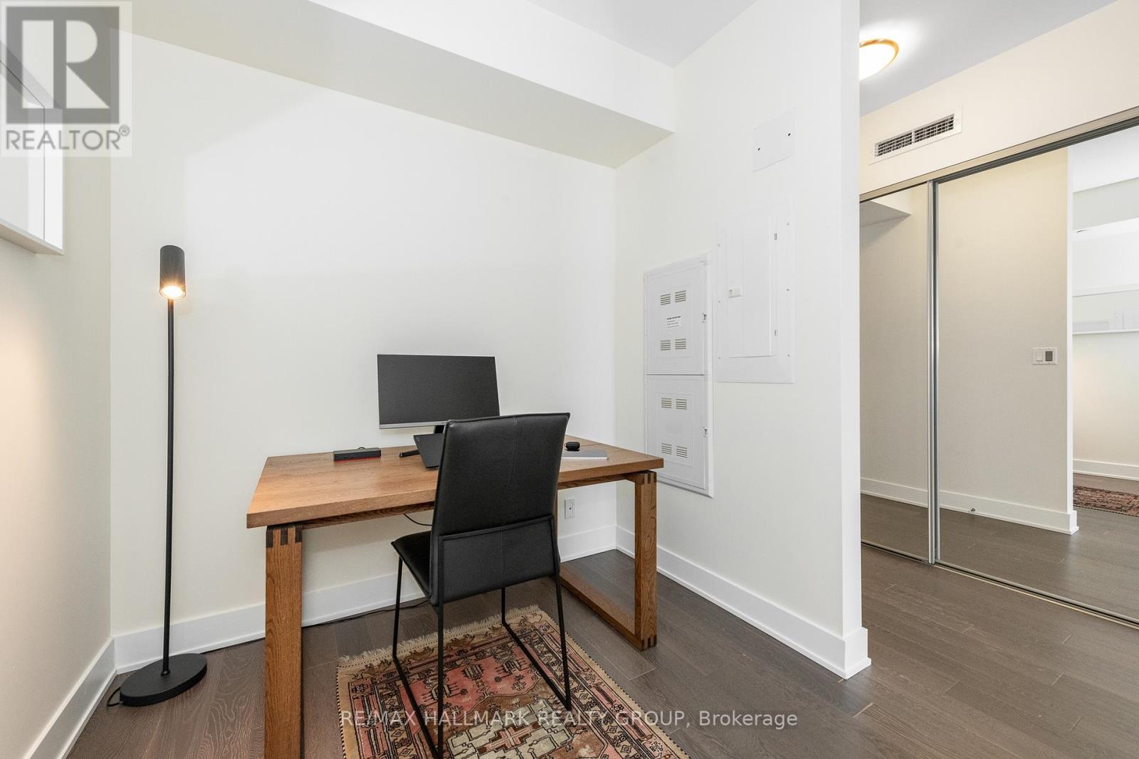 Welcome to luxurious living in the heart of Westboro! This exquisite 1-bedroom plus den condo at 485 Richmond Rd offers over 780 sq. ft. of living space, including outdoor living, and provides an ideal blend of comfort, style, and convenience in one of Ottawa's most sought-after neighborhoods. Enjoy unobstructed views of the Ottawa River, perfect for those looking to embrace nature while remaining close to urban amenities. Step inside and appreciate the spacious open-concept layout that fills the space with natural light. The versatile den can serve as a home office, guest room, or cozy reading nook, catering to all your lifestyle needs. The modern kitchen features sleek cabinetry, high-end appliances, and ample counter space, making meal prep and entertaining a delight. The generously sized bedroom provides a peaceful retreat with large windows to wake up to stunning river views. The well-appointed bathroom features contemporary finishes, creating a calming atmosphere. Living at 485 Richmond Rd means indulging in a wealth of building amenities. Start your day with a workout in the fully equipped gym or host gatherings in the inviting kitchen and meeting room. Guests will appreciate the comfort of the on-site suites. You can delve into a good book in the quiet library or enjoy summer evenings on the rooftop terrace with barbecue facilities, perfect for taking in gorgeous views of the Ottawa River. This prime location offers easy access to the LRT, lush parks, charming shops, and diverse restaurants that Westboro is known for. Whether you're biking along scenic trails, enjoying a leisurely walk by the river, or dining at trendy eateries, everything is at your doorstep. Don't miss this incredible opportunity to own a piece of Westboro. Schedule a viewing today! (id:31145)