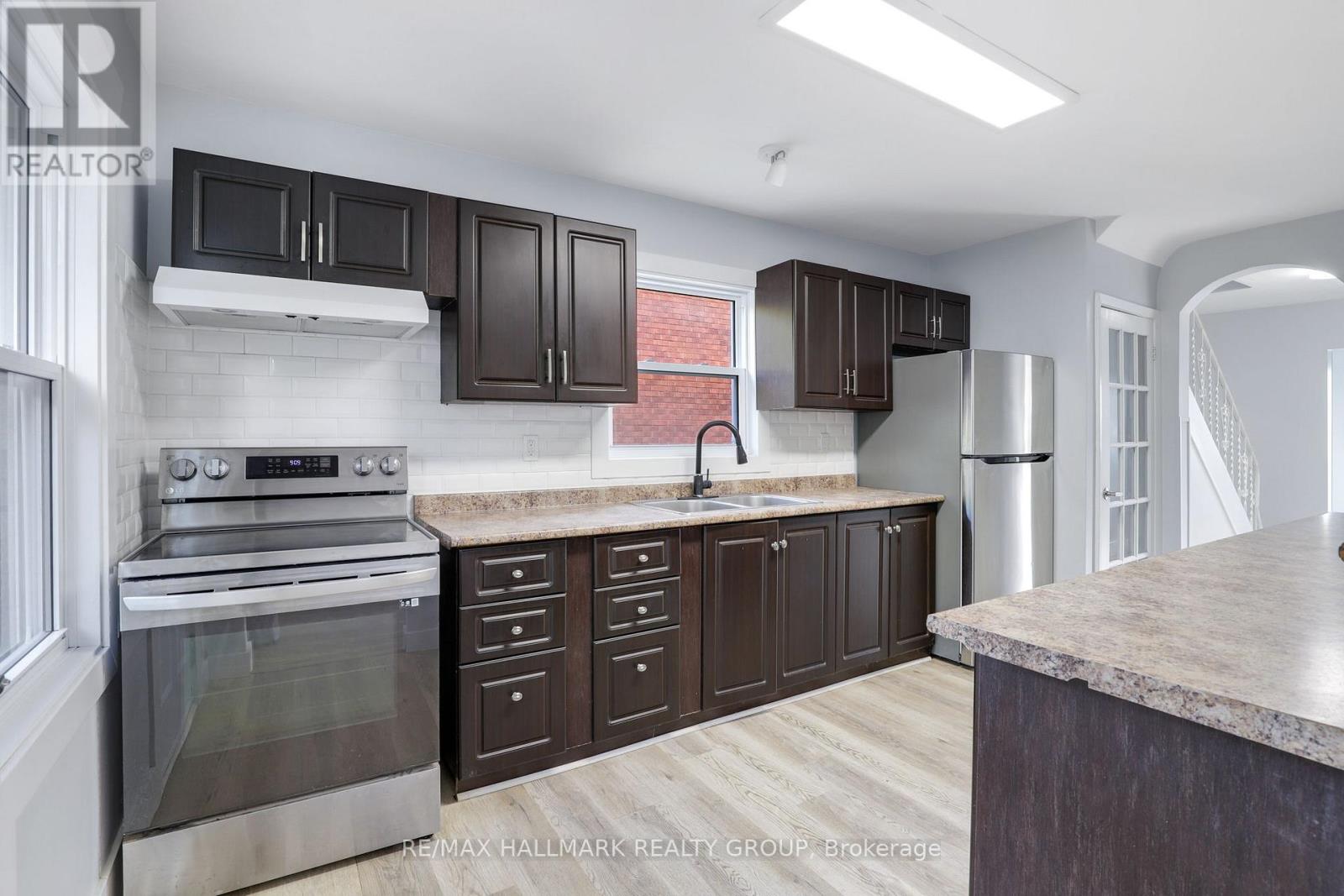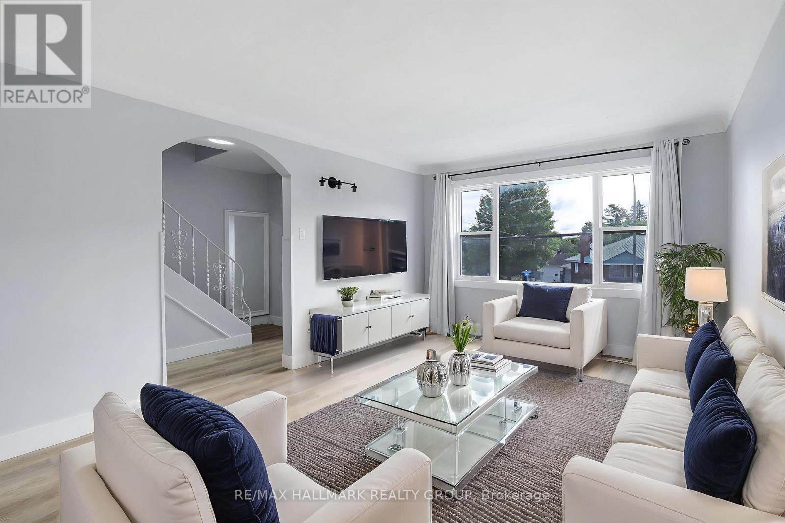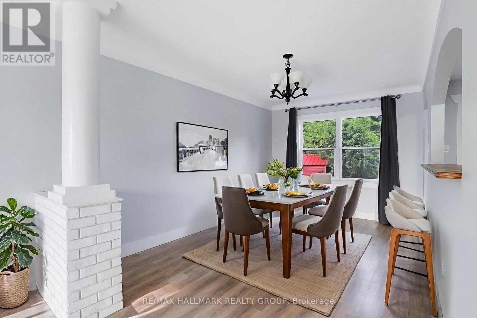 Welcome to 1108 Merivale Road a charming freehold semi-detached home offering space, comfort, and versatility in a central Ottawa location. The main floor features a bright layout with defined living, dining areas and a kitchen that opens to the dining space with a convenient breakfast bar perfect for casual meals or entertaining. Upstairs, you'll find three well-sized bedrooms and a full bathroom. The fully finished basement offers a large rec room and a second full bathroom ideal for guests, a home office, or additional living space. Step outside to enjoy a fully fenced backyard, perfect for summer gatherings or quiet relaxation. A dedicated parking space is included. Located close to transit, shopping, schools, and amenities, this home is a fantastic opportunity for first-time buyers, families, or investors. Key updates include: roof (2018), windows (2018), furnace (2014), main floor hardwood (2023), updated bathrooms (2017), updated kitchen (2017), lighting fixtures (2023), and fully finished basement (2023). (id:31145)