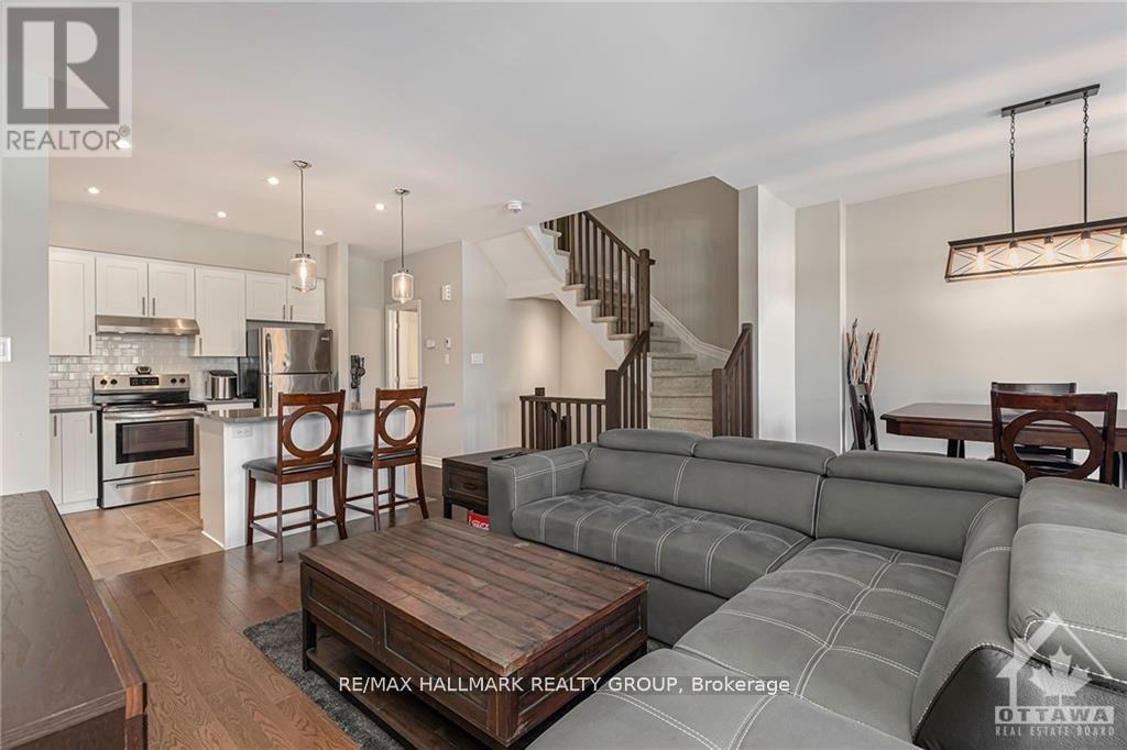 Welcome to this beautifully maintained, bright, and modern Richcraft townhome offering 2 spacious bedrooms and 3 bathrooms across three well-designed levels. Located within walking distance to schools, public transit, and shopping convenience is at your doorstep.The main level features a welcoming entryway with a versatile office nook perfect for working from home and access to the basement with ample storage space and room for a small gym.Upstairs, the open-concept second floor boasts 9-foot ceilings and stunning hardwood floors. The modern kitchen is equipped with stainless steel appliances, quartz countertops, and a large island ideal for cooking and entertaining. The spacious dining area accommodates a large table and leads to a private balcony with a BBQ gas hookup.The upper level includes a generously sized primary bedroom with room for a king-size bed, a walk-in closet, and a private ensuite. A second bedroom, a full bathroom, and a conveniently located laundry room complete this level.This home offers modern living with smart design and thoughtful finishes perfect for professionals, small families. (id:31145)
