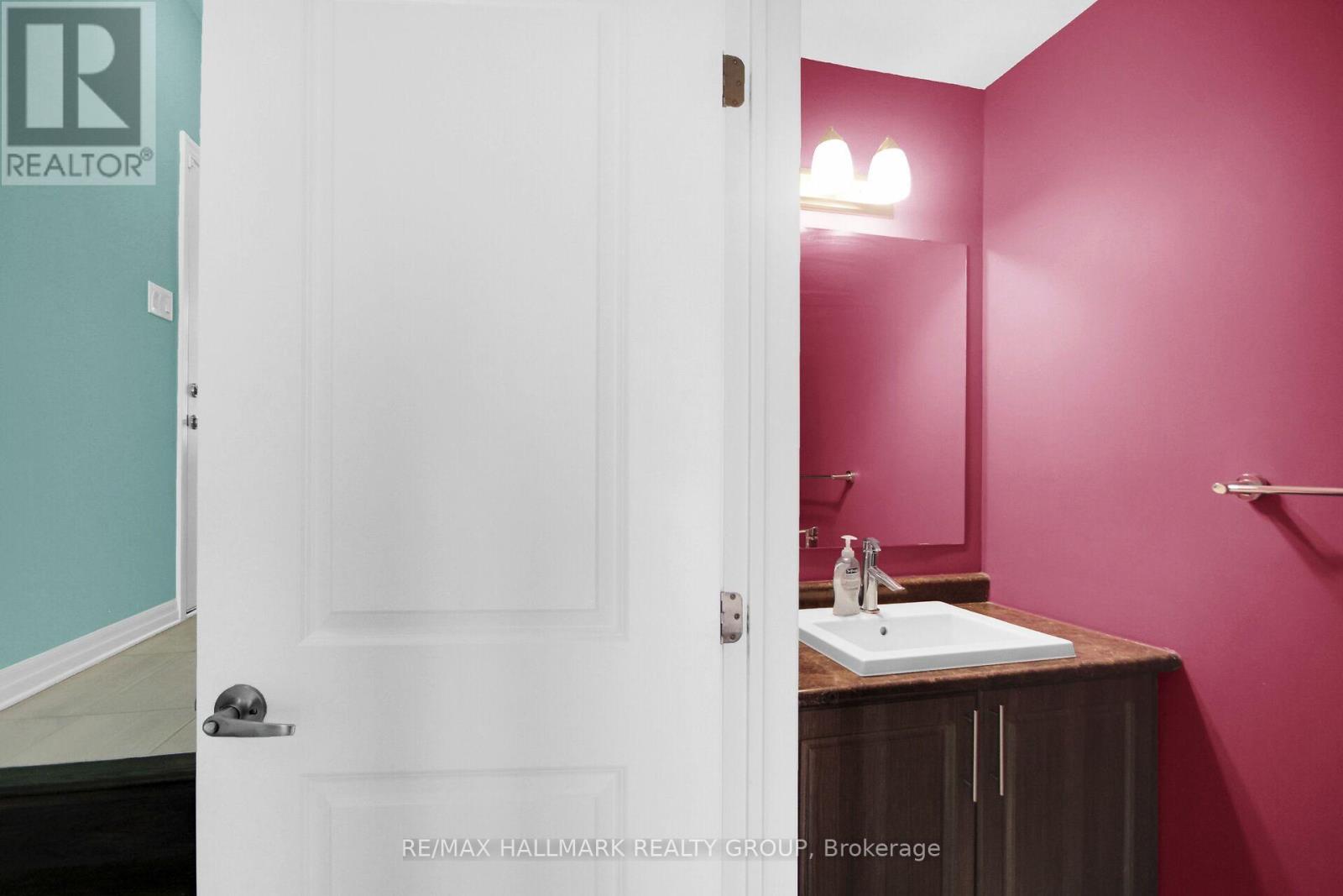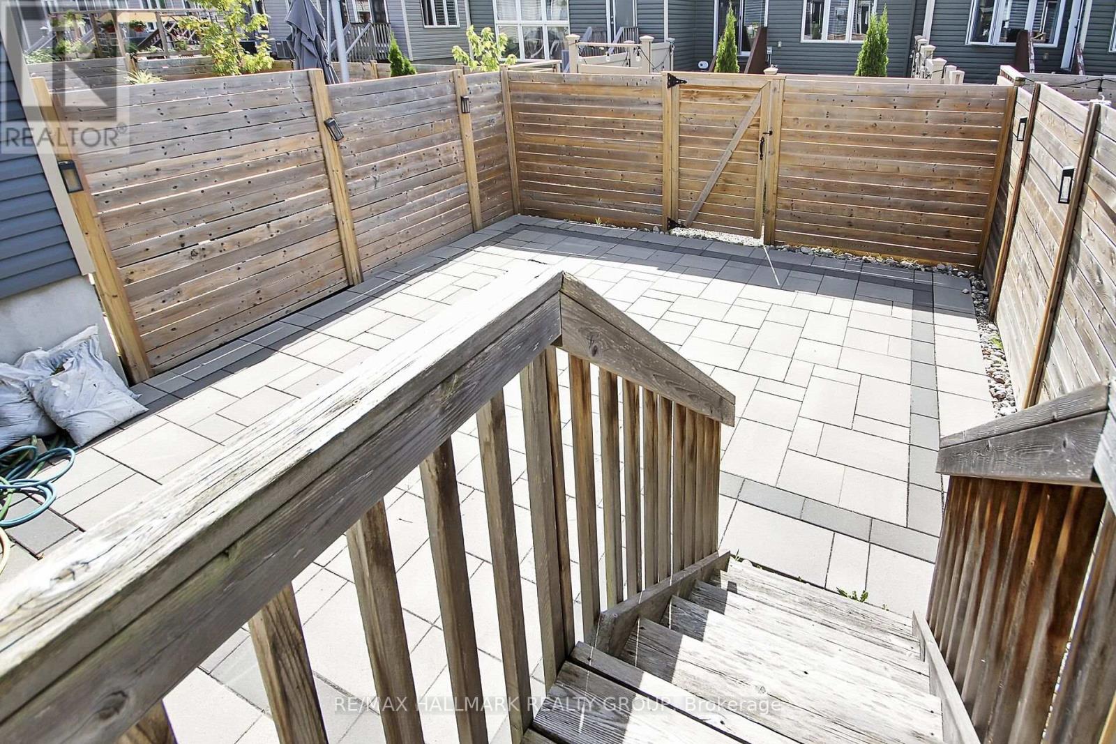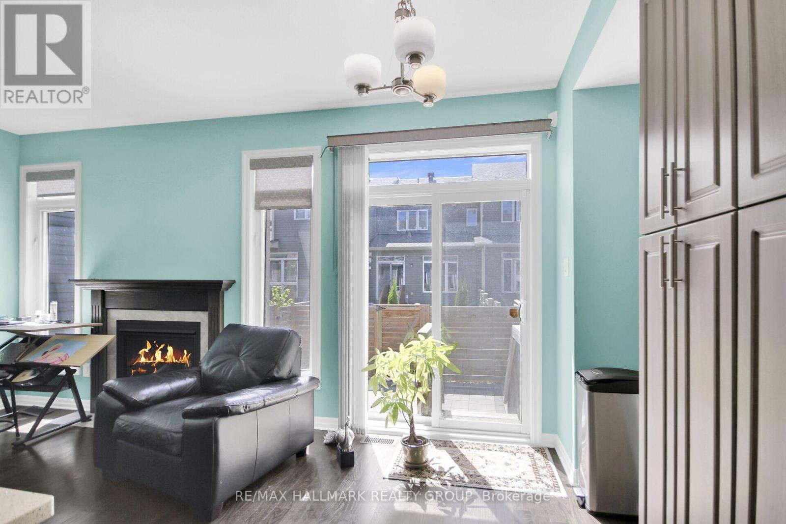 ** $4,000 CASH BACK ON CLOSING FOR PAINT ** Welcome to this beautifully maintained townhome (Claridge's Clarity model) in sought-after Kanata South! This bright and inviting home offers 3 bedrooms, 2.5 baths, a fully finished basement, and a private fenced yard with a maintenance-free patio. The main level features a welcoming foyer with ceramic tile, rich hardwood flooring throughout the open-concept living and dining areas, and 9-ft ceilings that create an airy feel. A cozy gas fireplace adds warmth to the space, while the chef-inspired kitchen boasts abundant cabinetry, quartz countertops, and a gas stove. Upstairs, the spacious primary retreat offers a walk-in closet and a luxurious en-suite bath, complemented by two additional bedrooms and a full family bathroom. The fully finished lower level provides a bright recreation room with a large window, ideal for a family room, home office, or gym. Enjoy the outdoors in your private fenced backyard with an upgraded low-maintenance patio. Great location just steps from Proudmore Romina park and close to shopping, schools, and transit, this home combines comfort and convenience in a fantastic location. Schedule your personal viewing today! (id:31145)