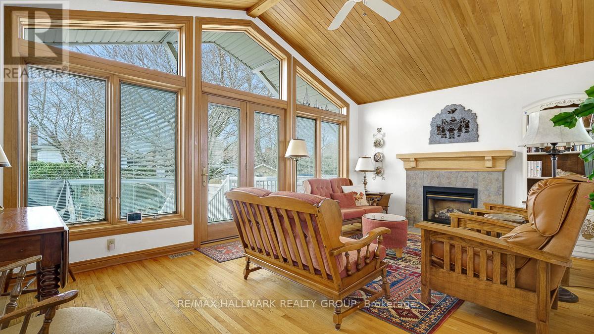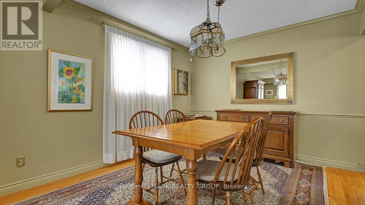 Welcome to this lovingly maintained 2+2 bedroom, 2 and a half baths split bungalow with a garage. Located on a quiet crescent in sought-after Blackburn Hamlet, nestled within Ottawa's greenbelt. Surrounded by nature, walking and biking trails, parks and within walking distance to all amenities. This established community offers exceptional privacy and convenience, just minutes from downtown Ottawa.Hardwood flooring runs throughout the main and upper levels, adding warmth and continuity. The living room is highlighted by a large bay window and opens to a formal dining room, providing space for hosting. The kitchen features granite countertops, a breakfast bar, upscale appliances and well-designed storage.The stunning family room features a vaulted ceiling and cozy gas fireplace, creating a bright and inviting space for everyday living and entertaining. French doors open to a zero- maintenance deck and private backyard featuring interlock landscaping and mature gardens.The upstairs offers a spacious primary bedroom with a 2-piece ensuite. The main floor has a well-sized bedroom and a large full bathroom.The fully furnished lower level provides excellent flexibility, currently offering two additional bedrooms, or if preferred, use as a large rec room, a home office and a gym. A large laundry room and full bath, as well as mechanical and storage areas, complete the lower level.A rare opportunity to own a solid, well-cared-for home in one of Ottawa's most desirable community-oriented neighbourhoods. 24 hrs irrevocable on all offers, attached Schedule B to be included (id:31145)