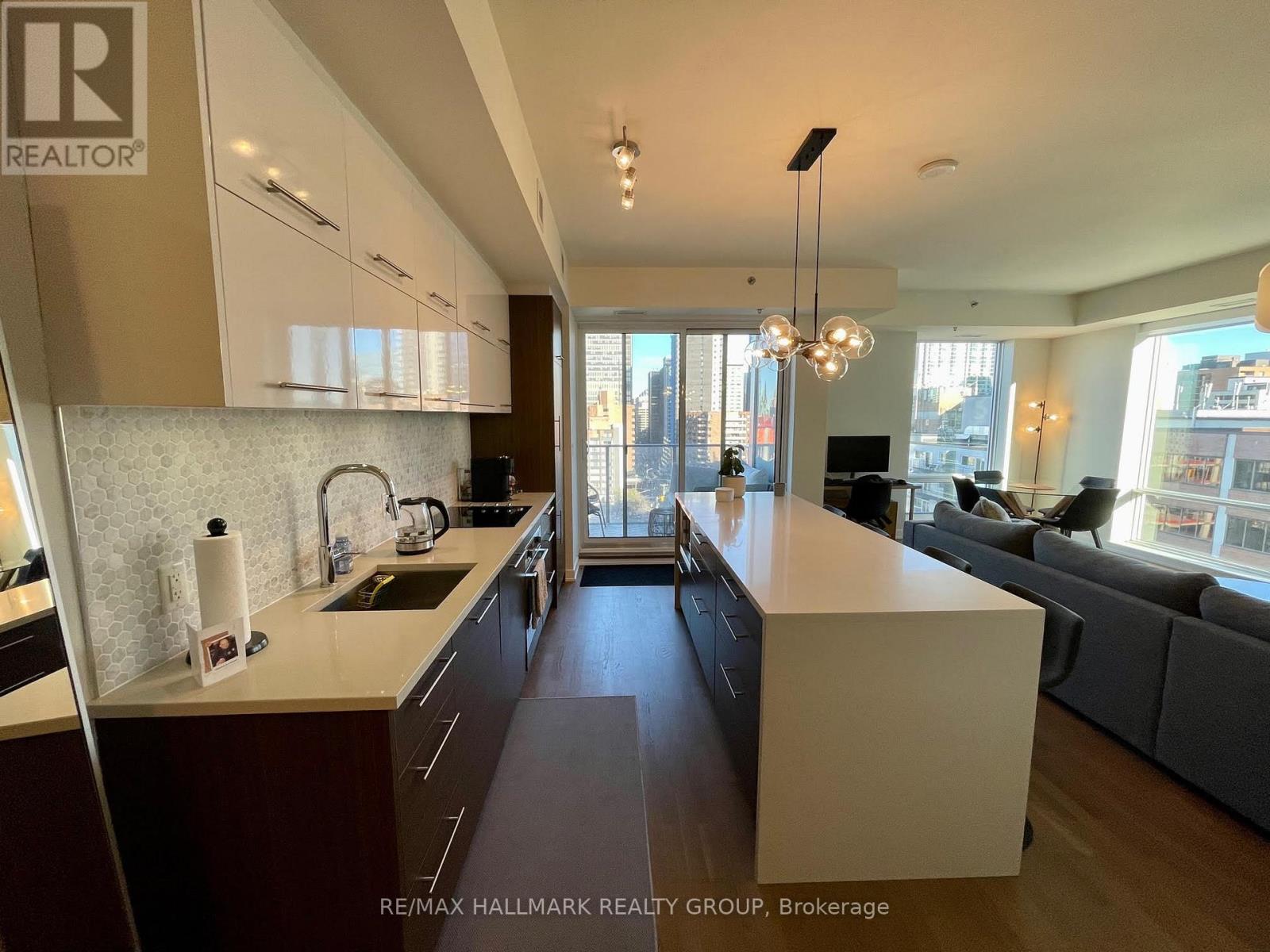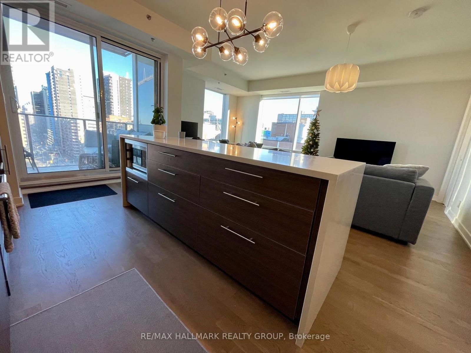 Welcome to Cathedral Hill! This luxurious and spacious 1-bedroom corner unit, approximately 798 square feet including the balcony, offers heated indoor parking and modern urban living at its best. The suite features hardwood floors throughout, a sleek kitchen with a large island and stainless steel appliances, and floor-to-ceiling windows that fill the space with natural light, creating an open and airy feel. The oversized balcony provides plenty of room for lounge seating and offers stunning views of the Ottawa River, city skyline, and Gatineau Hills.Cathedral Hill is a LEED-certified, environmentally friendly building with outstanding amenities including a party room with gas BBQ, fitness centre with sauna, yoga and exercise rooms, guest suite, concierge, pay-per-use electric vehicle charging stations, and 24-hour security. Perfectly located just steps from the LRT station and bike paths, commuting is simple and convenient no matter your destination. Available December 1, 2025 . One heated indoor parking space and storage locker included. No pets please. (id:31145)