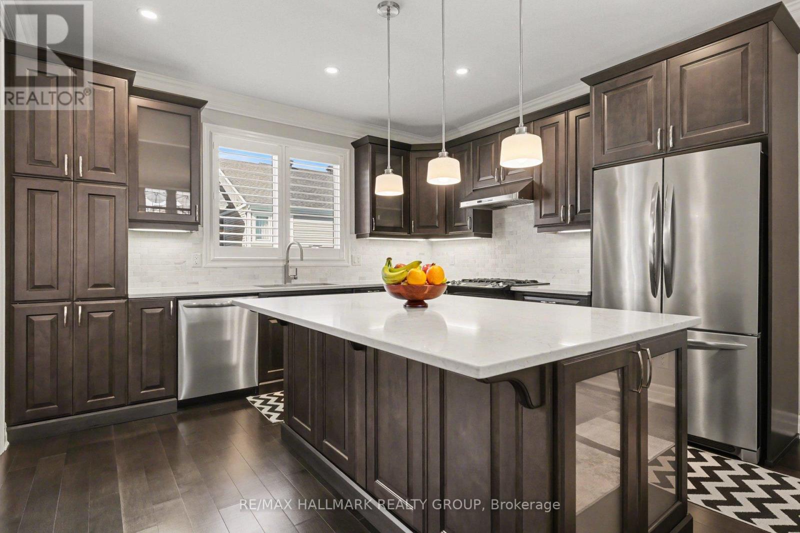 Welcome to 125 Solaris Drive, a Stunning, Exquisitely Detailed HOME! Impeccable 3 bed, 2.5 bath single-family home with roughly 220k of upgrades in the most family-friendly neighbourhood Kanata's Trailwest! Step inside to the grand foyer with custom bench, leading into open-concept living, dining, and Chef's dream kitchen with gorgeous maple cabinetry, quartz counters, large island-breakfast bar & SS appliances. Maple staircase leads to the unique mid-level family room with soaring ceilings, stunning stone accent wall with gas fireplace and balcony. Bathed in morning sunlight, it is the ultimate hangout zone to enjoy FAMILY Entertainment, Coziness, and Happiness. On second level, berber carpets in bedrooms. Master bedroom with 5 pc ensuite spa bath including his/her sinks, deep soaker tub, glass shower enclosure, and walk-in closet. The two more great sized bedrooms and stunning 4pc / Double-Sink main bath . The custom computer nook is perfect for Working from home. Crown moldings, smooth ceilings, premium custom window shutters & hardwood floors throughout. The basement features high soaring 12-foot ceilings, mudroom, built-in bench & laundry and big size windows. An ideal space for your workouts, featuring -perfect even for practicing your golf swing. It's exceptionally smart layout provides endless potential for future development. Landscaped front, back and side Yard, back yard fully fenced with custom Trex raised deck and extensive interlock. Most of the ground has been paved, providing a clean and stable surface, perfect for kids, pets, and summer BBQs. Attached 2 car garage insulated, Epoxy Flooring. Hot Water Tank owned. Situated close to Top Rate schools, parks, shopping, transit, trails and all essential amenities, this home is perfect for families, professionals, or investors. Move-in ready and full of potentials and pleasant surprise. (id:31145)