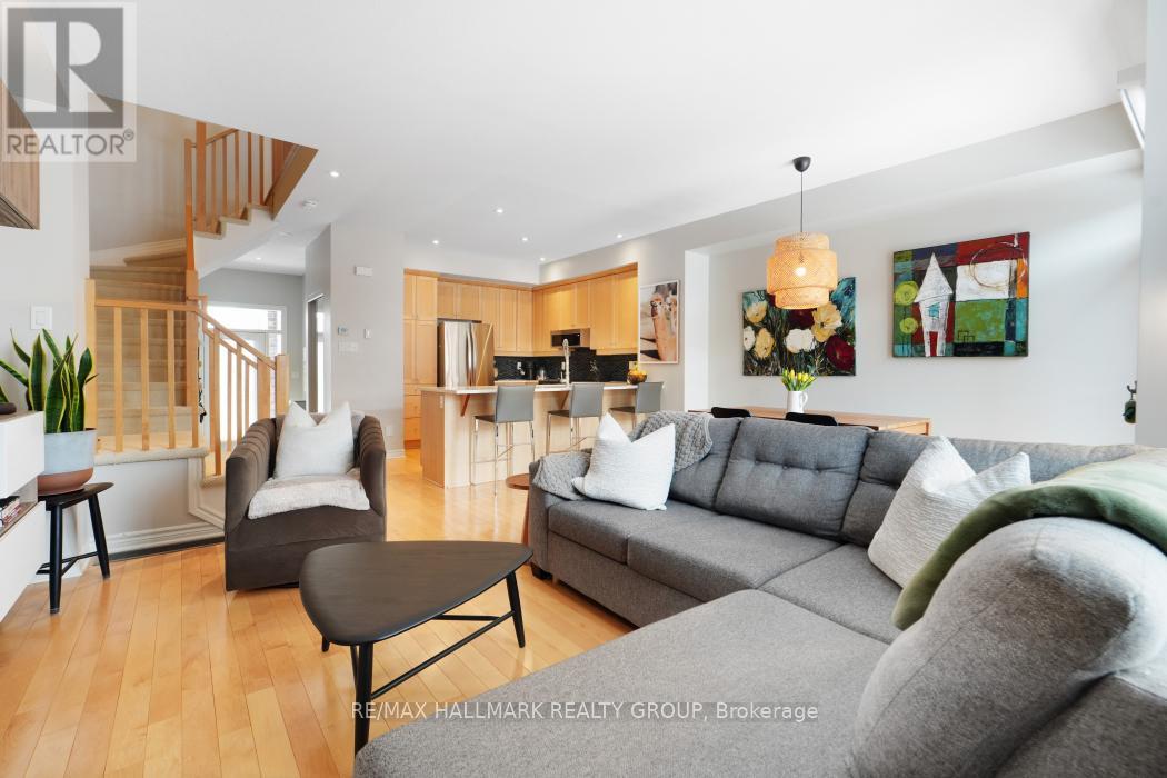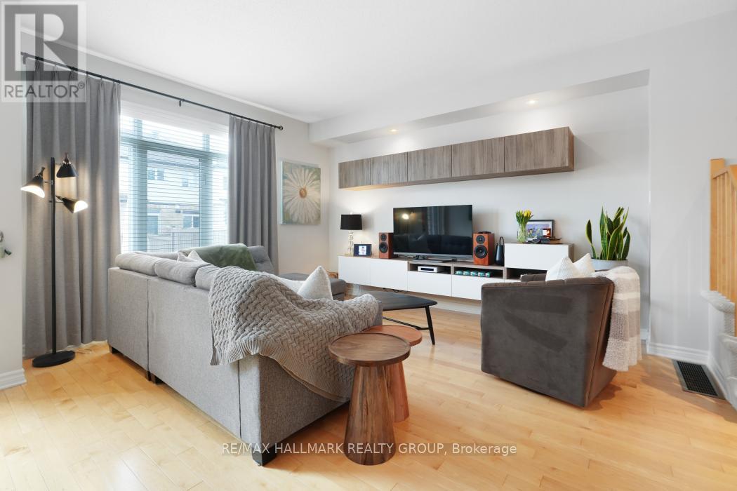 LUXURY UPGRADES + OVER 1757 SQ FT. + PREMIUM LOCATION ~ surrounded in parks and green space including River's Bend Park with walking/biking paths along the Rideau River ~ just steps to LRT station and excellent schools ~ minutes to shopping, restaurants and Community Center. Upgrades include quartz counter tops, custom lighting, custom window treatments and freshly painted in designer colors. "Picture Perfect' curb appeal with gorgeous brick work, a covered porch and interlock walkway. Bright, welcoming foyer opens with great site lines into the great room. The main floor offers an open-concept floor plan, hardwood floors, 9 ft. ceilings, open staircase and a wall of windows flooding the space in natural light. Great room with custom, floating entertainment center. Gorgeous kitchen with stainless steel appliances, pantry & large breakfast bar. Elegant dining area with patio doors to fully fenced backyard. Low maintenance landscaping with river rock, stone patio and deck. The master retreat feels like a boutique hotel and boasts double door entry, large window, walk-in closet and spa-like en-suite with soaker tub & separate shower. 2 additional bedrooms and convenient 2nd floor laundry. Finished lower level has a large family room with cozy fireplace, perfect for movie nights. Rough-in bathroom and storage room. Book an appointment today for this immaculate home in family-friendly neighbourhood. (id:31145)