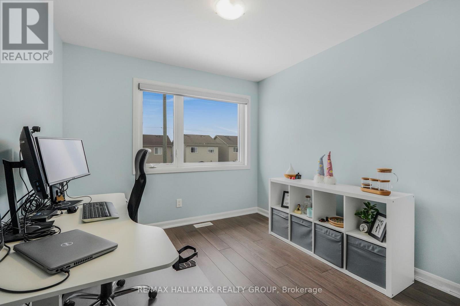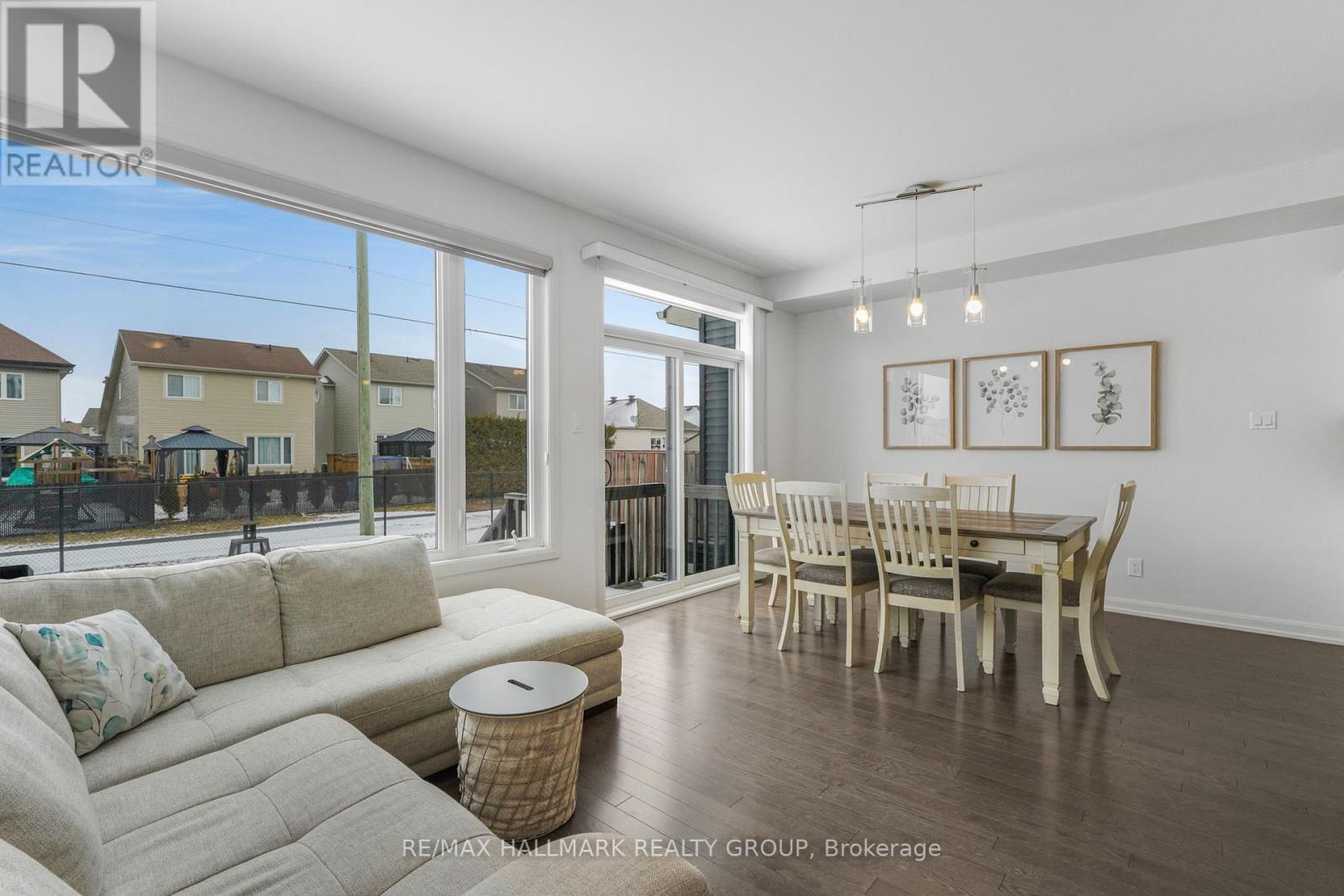 Welcome to 129 Turquoise Street. Build in 2021, this immaculate 3 bedroom, 2.5 bathroom 1,680 sqft Longwood Arbois townhome model located in the heart of Rockland in Morris Village! NO REAR NEIGHBOUR BACKING ONTO A TRAIL. Open concept main floor features hardwood & ceramic throughout, beautiful gourmet kitchen with a convenient island, lots of countertops, modern cabinets and stainless steel appliances. Upper level features laminate floors throughout, 3 spacious bedrooms, full secondary bathroom, en-suite and a convenient laundry room. Fully finished basement with large recreational room & plenty of storage space; perfect to entertain familyand friends. Featuring: single garage space, a/c & air exchanger. Walking distance to parks, schools and much more. This house isextremely well maintained! You won't be disappointed! Book your private showing today! (id:31145)
