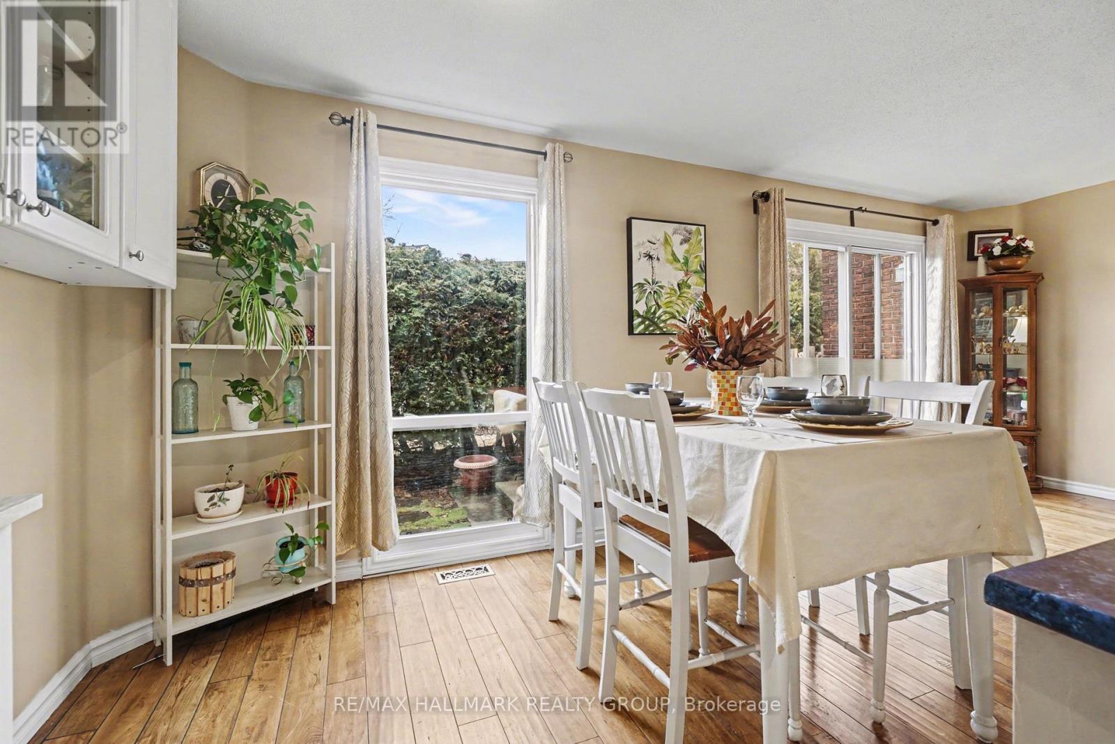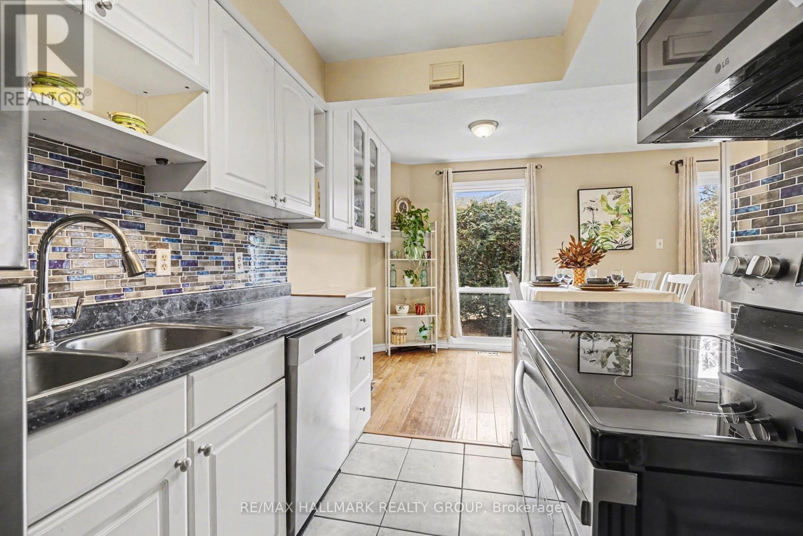 $475 MonthlyRare find in Bells Corners! This exceptionally spacious 4-bedroom, 2.5-bathroom end-unit condo offers over 1,800 sqft of living space and is perfect for families or professionals seeking a low-maintenance lifestyle without sacrificing room. Opportunities like this are few and far between, especially featuring a rare attached 1-car garage plus an additional driveway spot for two-car parking. Step inside to a bright, modern main floor featuring high-end laminate and ceramic tile throughout. This home is completely carpet-free for easy cleaning and a sleek look. The kitchen is a chef's delight, boasting crisp white cabinetry, a stylish backsplash, and sleek stainless steel appliances. You will love the open-concept living and dining area, which is flooded with natural light through stunning floor-to-ceiling window and a patio door leading to your private outdoor space. A convenient powder room is also located on the main level. The second floor continues the premium laminate flooring and hosts an impressively spacious primary suite. Uniquely, this floor offers three additional well-sized bedrooms providing ample space for a growing family, guests, or a home office. The full bathroom on this level shines with modern finishes and a beautiful quartz countertop. The finished lower level adds incredible value, offering a large, open recreation room with endless possibilities for a home gym, theater, or play area, plus a bonus bathroom with a stand-up shower. As an end unit, you enjoy a larger-than-average backyard and added privacy. Perfectly positioned in a prime location, you are minutes away from the Queensway Carleton Hospital, NCC trails, parks, diverse shopping, and transit. With reasonable condo fees and a layout that is nearly impossible to find in this price bracket, this property is a standout gem. These units do not come for sale often, so do not miss your chance to own this versatile and move-in-ready home. (id:31145)