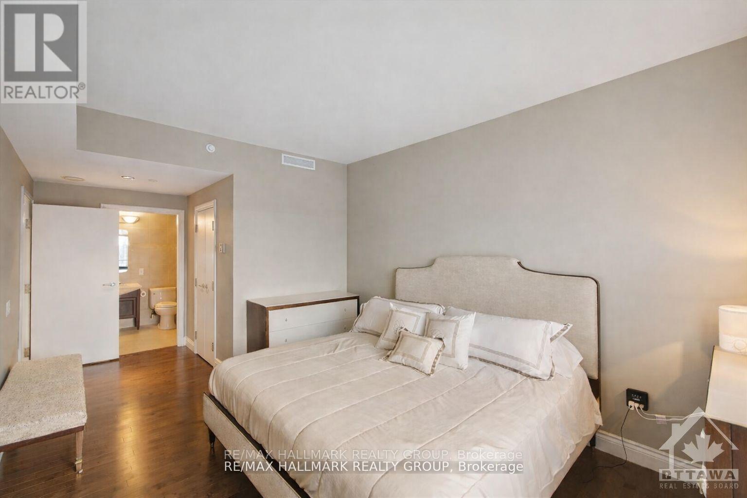 Unbeatable value in one of Ottawa's most prestigious addresses-where suites have sold for as high as $2.4M-this impressive 1,276 sq ft luxury residence deserves to be at the top of your list. Perfectly positioned in the heart of the ByWard Market and just steps to majestic Sussex Drive, the National Gallery, museums, and Parliament Hill, this refined condominium offers the ultimate urban lifestyle with unparalleled access to world-class dining, boutiques, entertainment, and cultural landmarks. Bathed in natural light, the well-designed open-concept layout showcases sweeping views from every room, rich maple hardwood flooring, and elegant living/dining spaces that transition beautifully to an oversized balcony. The custom Deslaurier kitchen is a chef's dream, featuring high-end appliances, sleek cabinetry, a stylish island, and gas stove-ideal for gourmet cooking and sophisticated entertaining. The spacious primary suite impresses with floor-to-ceiling windows, a walk-in closet, and a spa-inspired 5-piece ensuite, while the second bedroom offers equally captivating views of the iconic Chateau Laurier. Residents enjoy exceptional amenities including 24/7 security, a state-of-the-art fitness centre, indoor saltwater pool, hot tub, and a beautifully landscaped rooftop terrace. Parking Unit 39 Level B and Locker Unit 90 Level B are included, along with all appliances, window blinds, washer, dryer, microwave/hood fan, refrigerator, stove, dishwasher, gas stove(s), and automatic garage door opener. Rentals: none. *Some Photos virtually staged. Currently tenanted until end of August 2026. Schedule B must accompany all offers. 24 hours irrevocable on all offers. (id:31145)