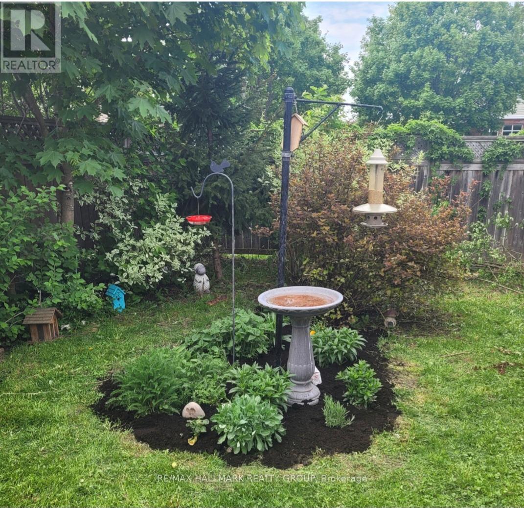 Location! Location! This Richcraft 2 storey, 3 bedroom, 2.5 bathroom townhome is tucked away on desirable Gatespark Private in Kanata Lakes. This home features oak hardwood floors in the living room and dining room. Large picture window overlooks the back yard providing garden views. Eat in kitchen with patio door to the back yard. Kitchen offers ample cupboard and counter space with attractive wood cabinetry. Stainless steel kitchen appliances compete the look. Ceramic Floors in entrance, kitchen and all bathrooms. 3 spacious bedrooms. Walk in closet in the primary bedroom. The recreation room offers lots of space to entertain and is complete with a corner gas fireplace. Easy care modern vinyl plank floor! Laundry room provides additional storage. Additional storage room provides rough in for 4th bathroom and central vac. The fenced backyard offers a quiet oasis away from it all with a deck and planter boxes. Just a gardeners delight! This quiet peaceful location offers proximity to Jim Malone Park. Nothing to do but move in. Kanata Lakes has become one of the most popular, premium communities in all of Ottawa. Top-rated schools, and excellent shopping and dining, while community is surrounded by nature. Parks, and trails are steps away. . Make it your new home today on a private street. Recent updates include: Furnace(2019), Hot Water Tank( 2022), Basement plank vinyl floor and basement stair carpet (2022), Air conditioner (2024), Humidifier (2024), Roof(2025). Painting(2025) Newer Stainless Appliances.24 hours irrevocable on all offers. (id:31145)