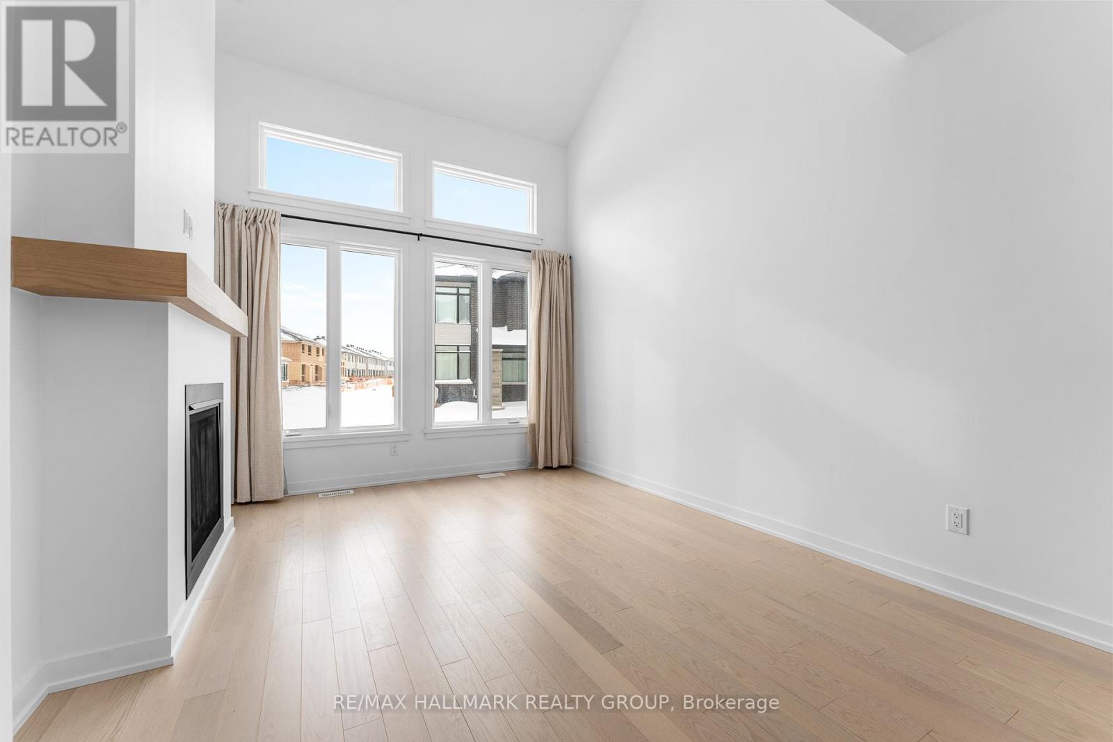 Welcome home to this BRAND NEW townhome in the heart of Kanata where modern finishes meet an airy, light-filled layout designed for everyday living. Step inside to discover engineered hardwood flooring on the main level, oversized windows that let the sunlight pour in all day long, and an open-concept design that feels both spacious and inviting. The sparkling kitchen features stainless steel appliances, ample chic cabinetry, spacious island with bar seating, breakfast nook and a functional layout that flows seamlessly into the living and dining areas - perfect for entertaining or relaxed evenings at home. The soaring fireplace in the vaulted living room adds warmth and character, creating a cozy focal point. Just imagine reading your favourite book in front of the fireplace this Winter! On the second level, the bright and well-proportioned bedrooms offer comfortable retreats. The luxurious Primary Bedroom comes complete with a full ensuite and walk in closet. Two additional generous second level bedrooms are perfect for families, guests or even an at home office if desired! Both bedrooms overlook Walter Baker Park and all the surrounding greenery/trails giving you a peaceful and serene space. Plus, convenient second level access to laundry is the cherry on top! Not to mention, the finished lower level provides valuable extra living space - ideal for a rec room, gym or even media room. You really can have it all here! Located in a fantastic Kanata neighbourhood, this home is close to parks, schools, shopping, and everyday amenities, making it a great choice for families, professionals, or anyone looking for a fresh start in a growing community. Plus, just steps away from Walter Baker Park with plenty of paths for walking or biking, and a nearby storm water pond gives you plenty of green space and nature access in the City! A move-in-ready townhome offering modern comfort, thoughtful design, and a location you'll love - this is Kanata living at its best (id:31145)