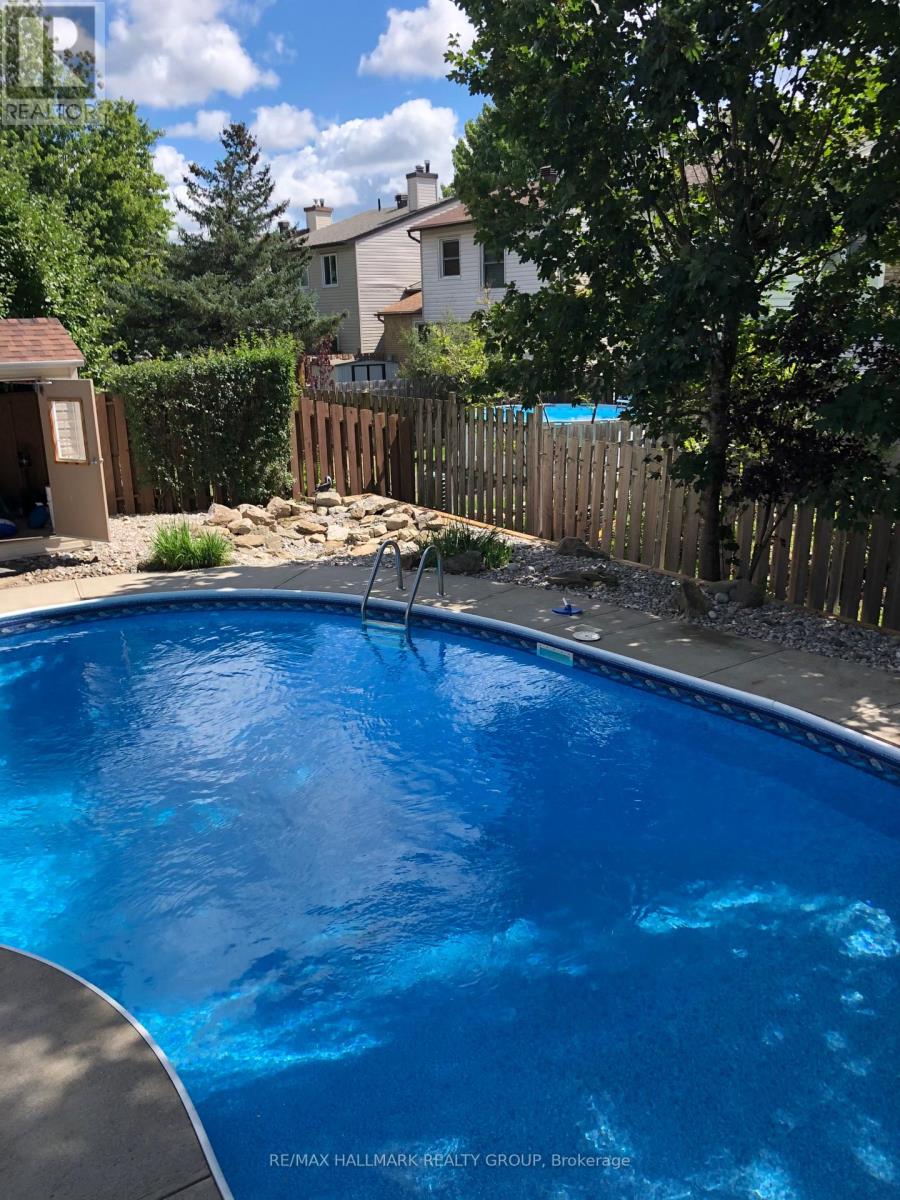 This 3+1 bungalow is situated in the excellent location of old Barrhaven on a very quiet court. The sunken living room, dining room, and hall feature hardwood flooring, complemented by newer Berber carpet in the bedrooms and recreation room. Gas fireplaces enhance both the living and recreation rooms. The kitchen is equipped with plenty of cabinet, counter space and an island and provides access to the backyard. Large primary bedroom with cheater ensuite as well as 2 other good sized bedrooms. Finished lower level with 4th bedroom, full bath and massive recreation room. Notable upgrades include a furnace installed in 2021, an insulated garage door (2006), and updated front and back doors (2008). A spacious deck overlooks a beautifully maintained inground heated pool (2006) and the huge landscaped pie-shaped lot offers privacy alongside established perennial gardens. (id:31145)