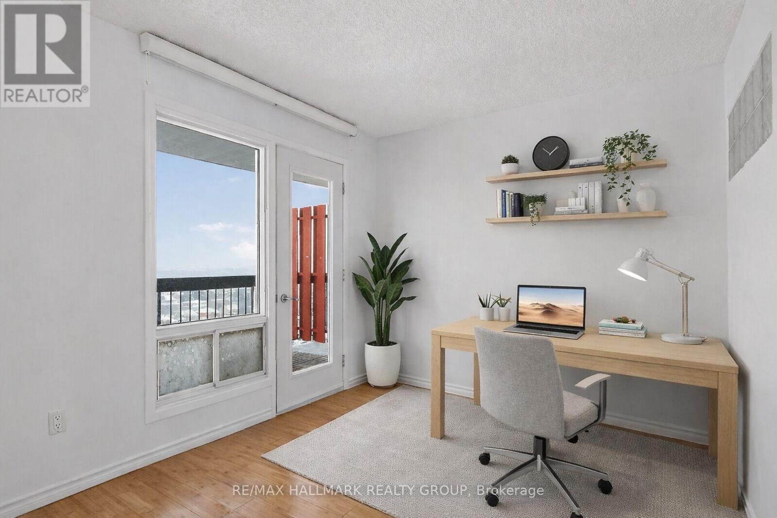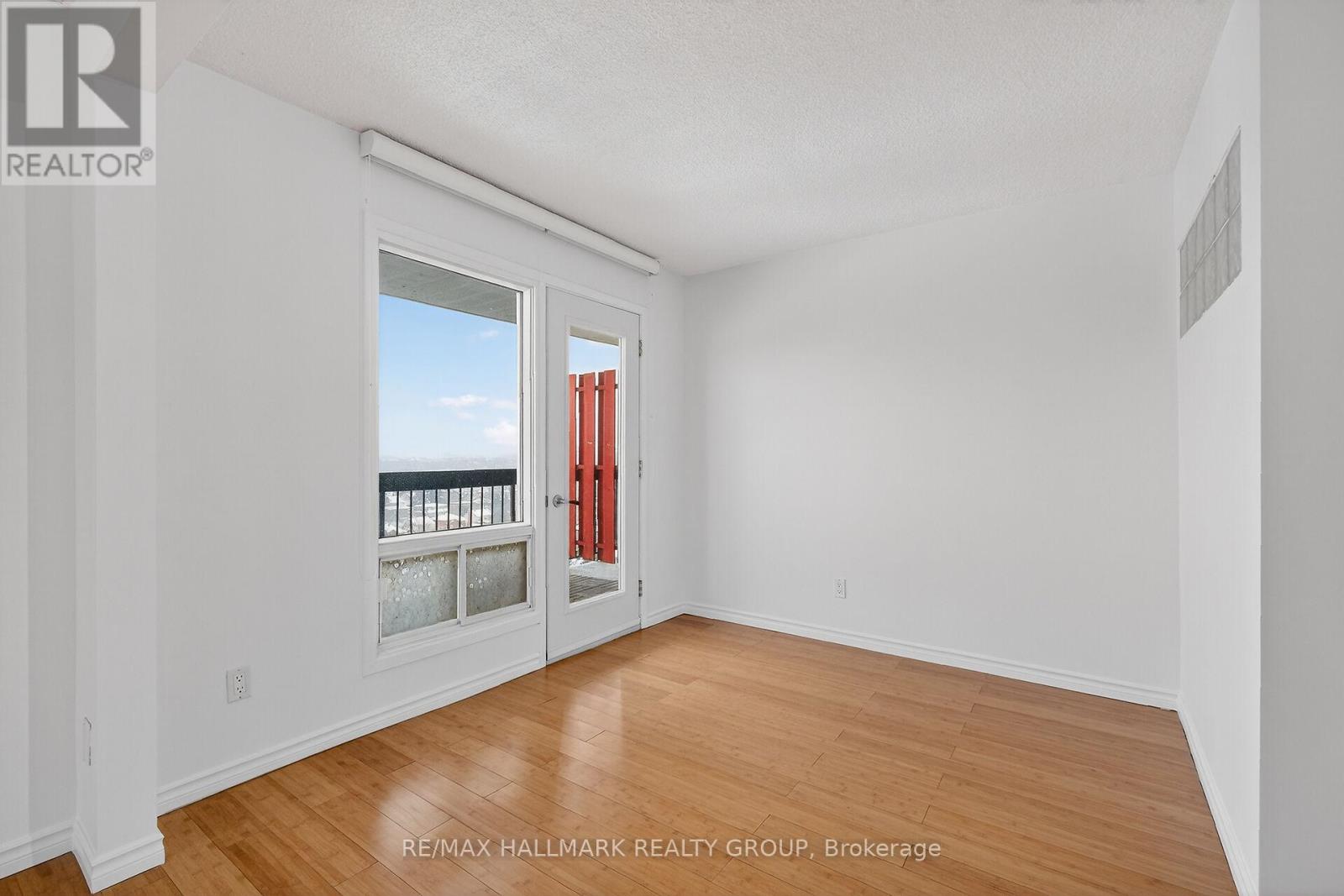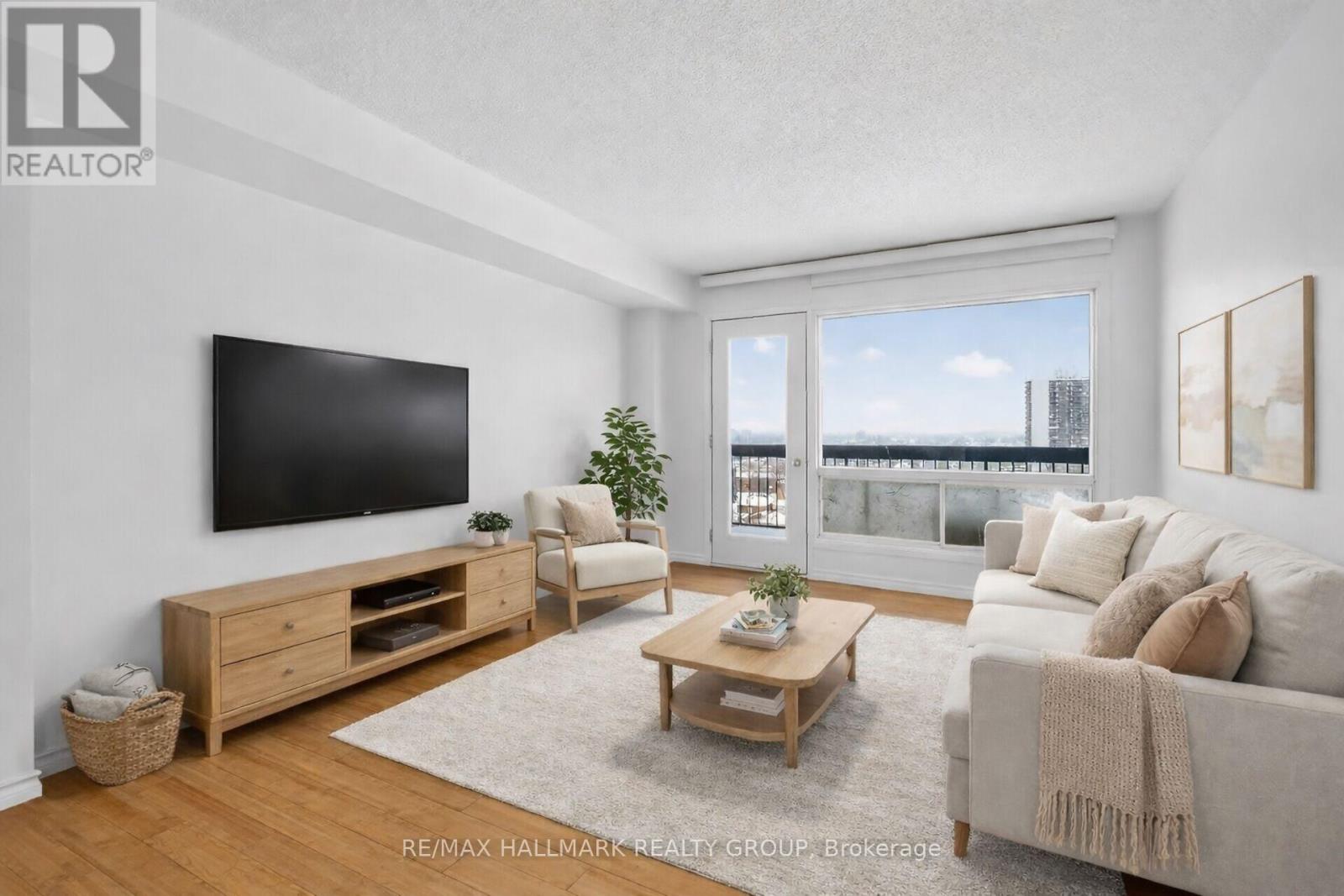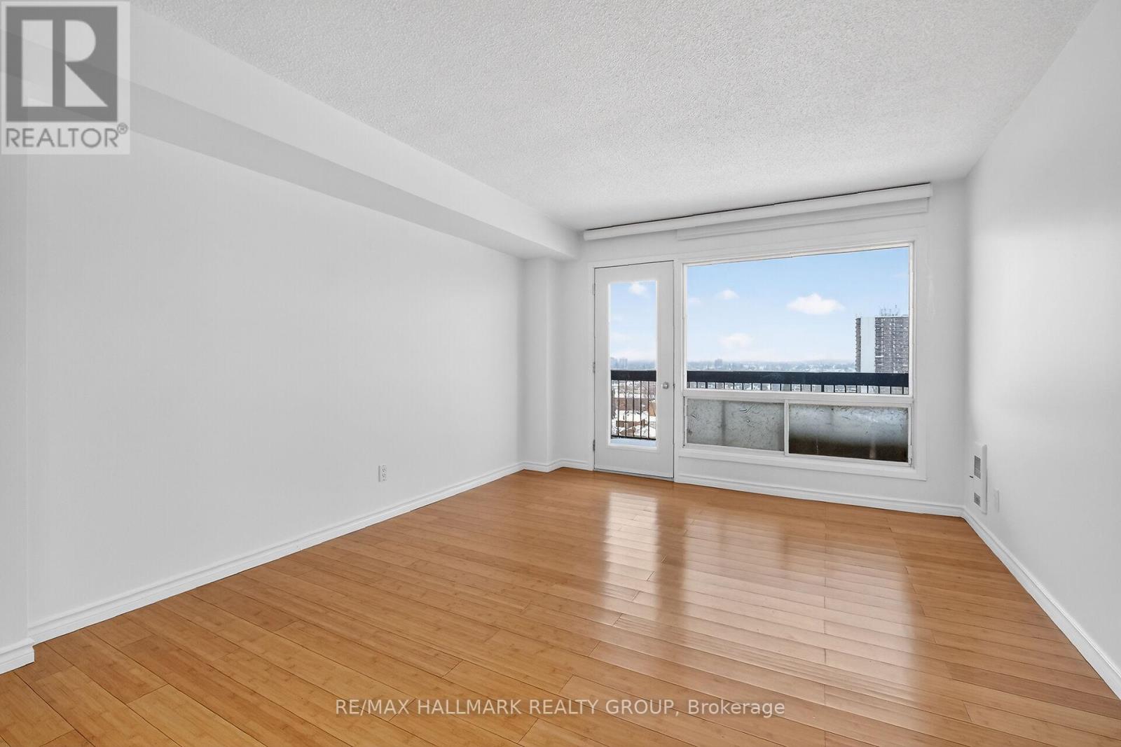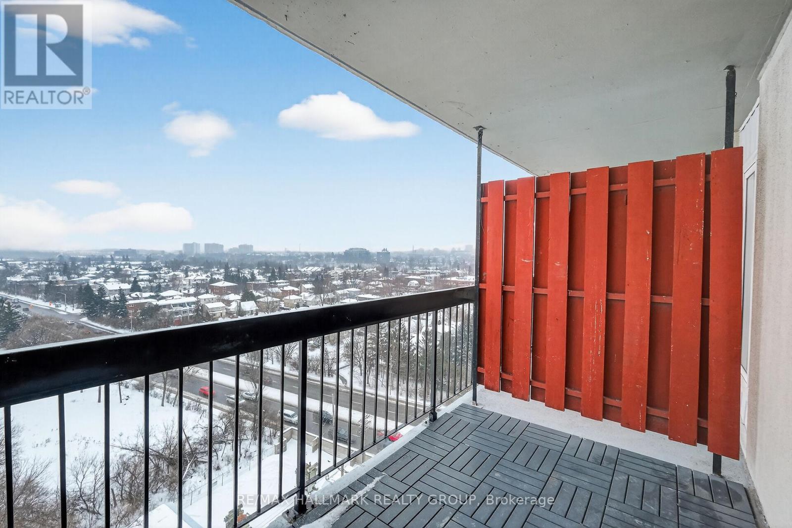 Perched on the 14th floor, this exceptional corner condo offers peaceful panoramic views with sun-filled south and east exposures. Featuring the largest floor plan in the building at just over 1,000 sq. ft., this residence stands out for both size and versatility. Enjoy two separate balconies, perfect for morning coffee or unwinding at sunset. Originally designed as a 2-bedroom plus den, the current owner removed a wall to create an expansive, studio-style primary retreat with den, ideal for those craving an oversized bedroom. Prefer a dedicated workspace or guest room? Easily reinstall the wall to restore a private den or third bedroom with direct balcony access. The suite features updated flooring throughout (carpet-free), an updated, modern bathroom with a walk-in shower, and a generous ensuite storage/pantry. Underground parking is included. The building offers outstanding amenities, including an indoor pool, full fitness centre, and even a convenience store on site, perfect for days you don't want to step outside. An unbeatable, super walkable location puts public transit just one minute away, a modern Loblaws across the street, four nearby parks, schools, and Montfort Hospital all within easy reach. (id:31145)