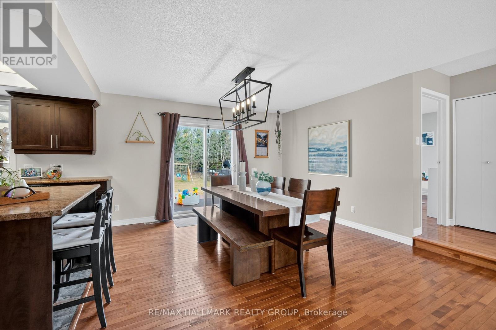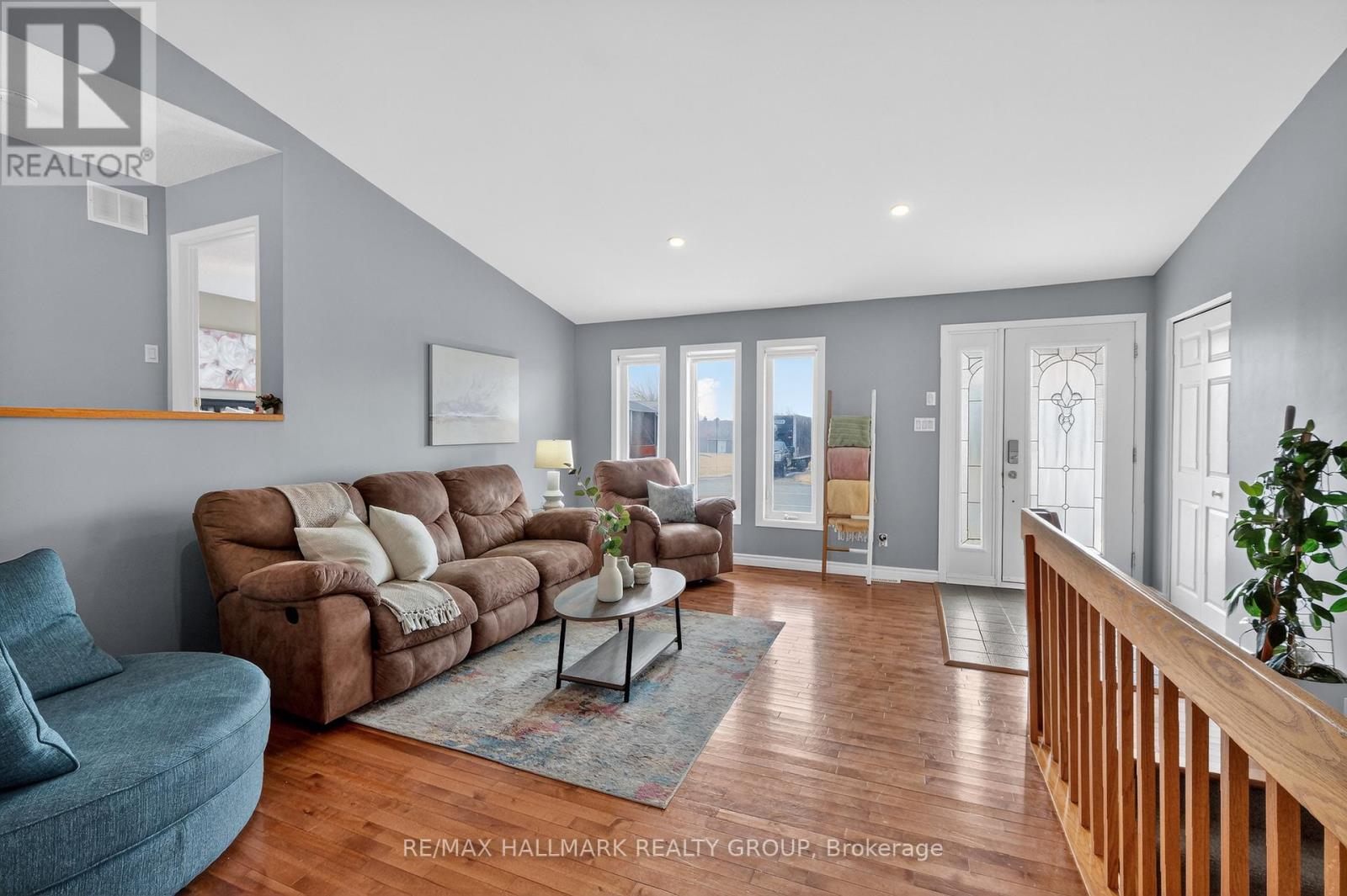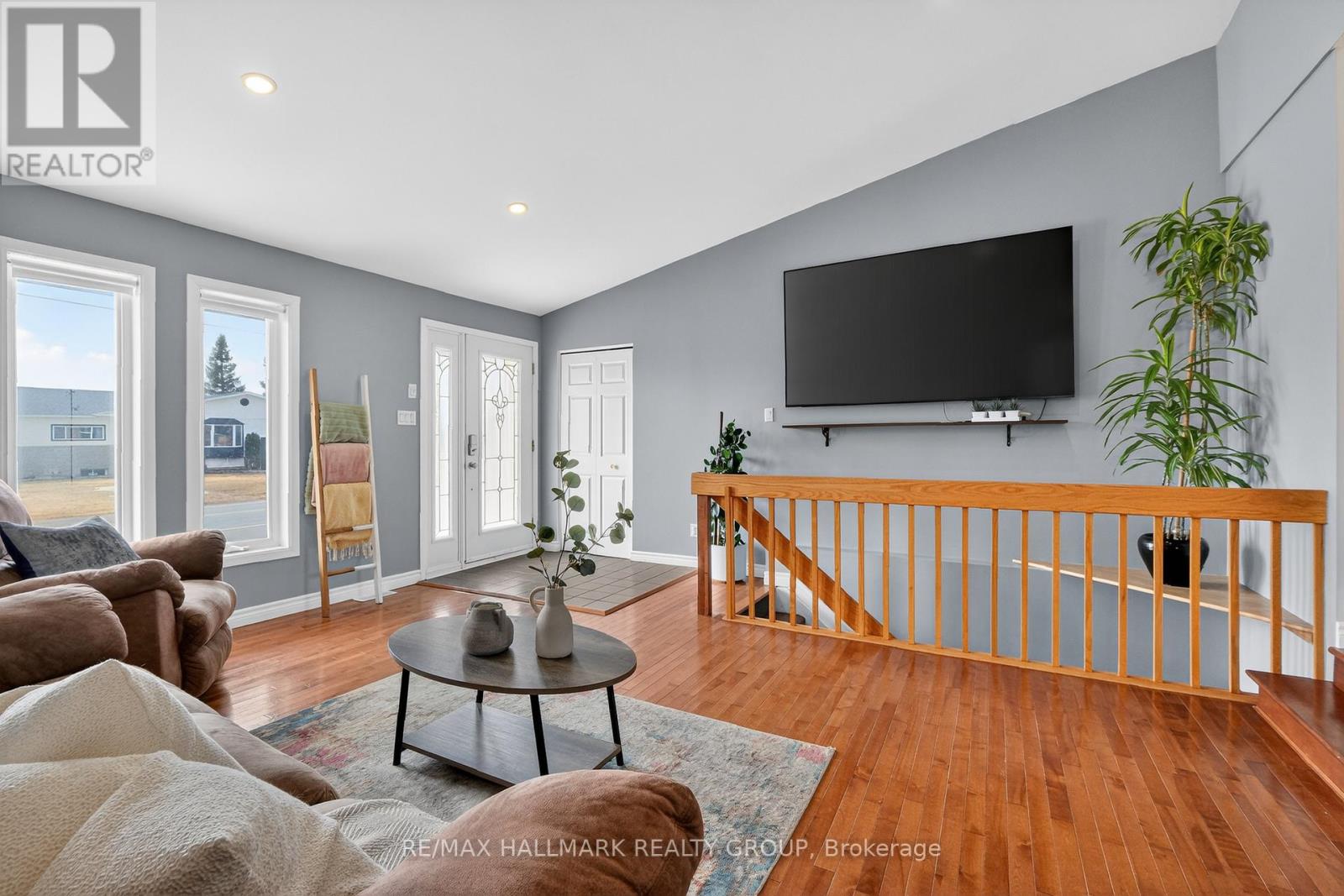 Enjoy the best of country living with everyday conveniences just steps away-convenience store, LCBO, Canada Post, park, and schools all while being only minutes from Highway 17.This lovely bungalow is set on a quiet, family-friendly street with no rear neighbours, offering added privacy and peaceful surroundings. It features a spacious open-concept layout, an oversized garage, and a large lot with a composite deck-perfect for outdoor living and entertaining. The bright living room boasts cathedral ceilings and pot lights, flowing seamlessly into the updated kitchen with a central island, ceiling-height cabinetry, and open access to the dining area ideal for family gatherings. The main floor offers a generous primary bedroom with his-and-hers closets, a large second bedroom, hardwood flooring, and the added convenience of a laundry/mudroom with direct backyard access. The finished lower level features high ceilings, oversized windows, a cozy gas fireplace, and plenty of flexible space including a recreation room, family room, home gym area, and an additional large bedroom-perfect for guests or a teenager. (id:31145)