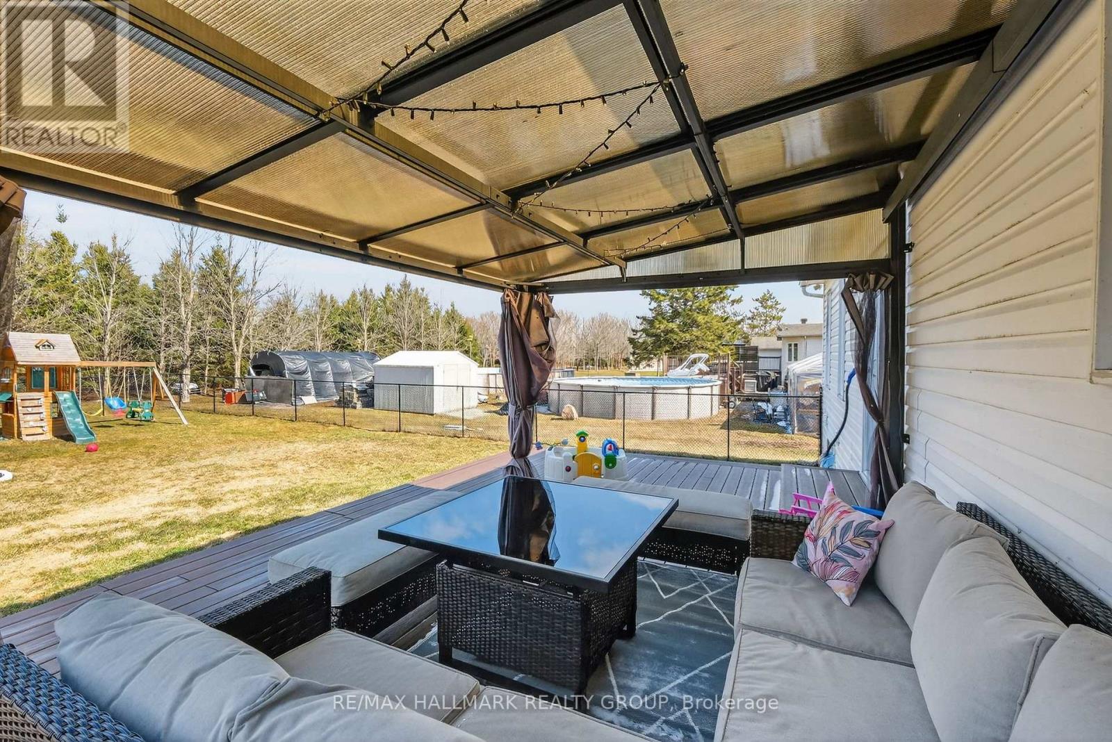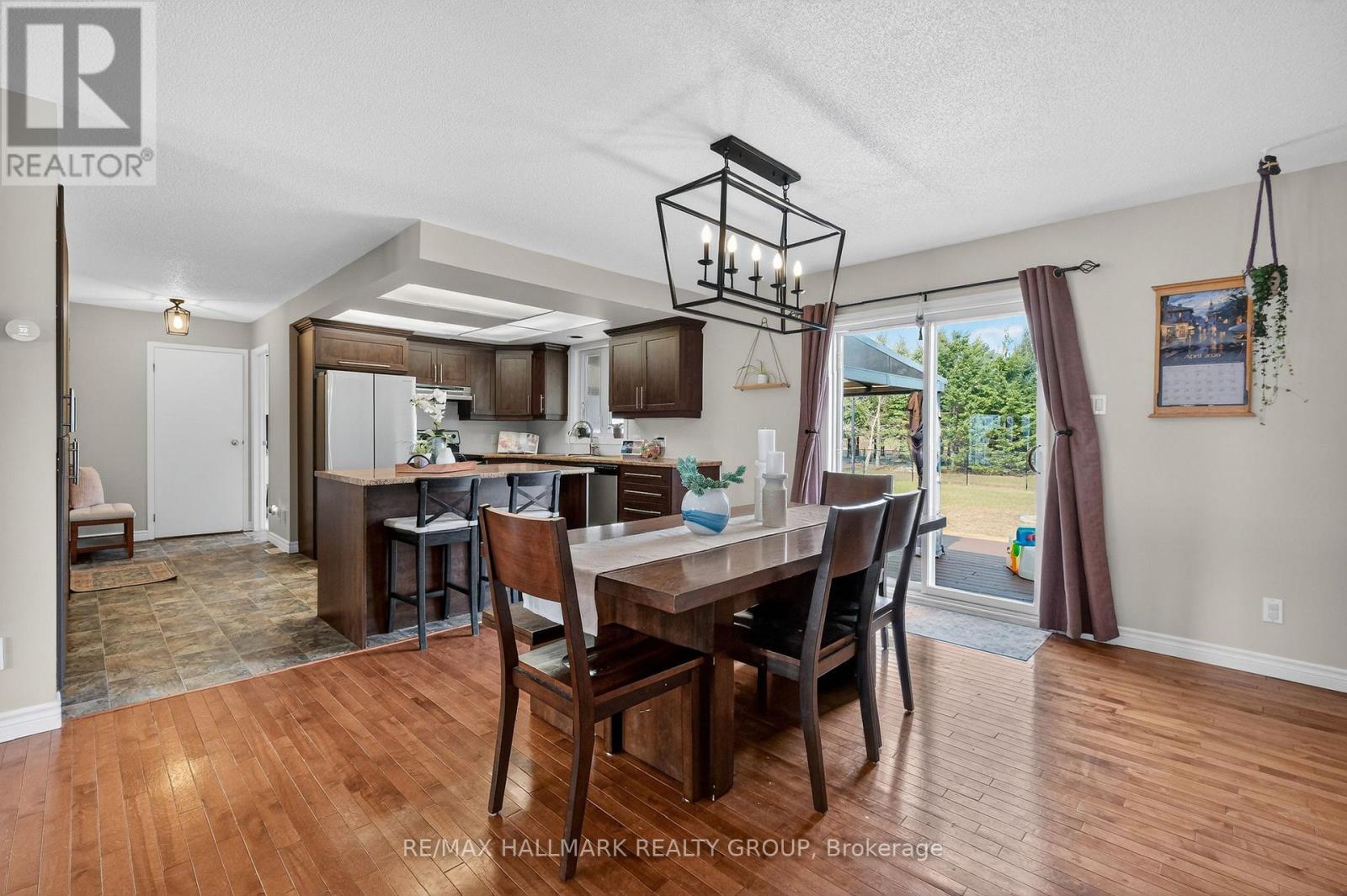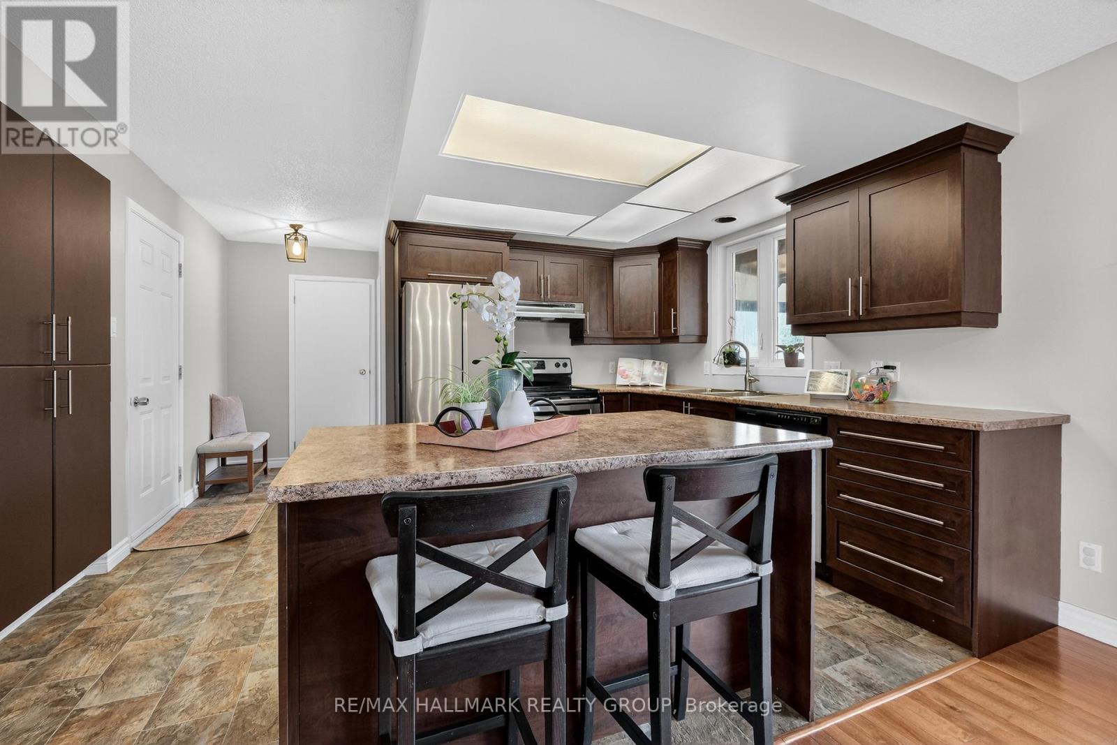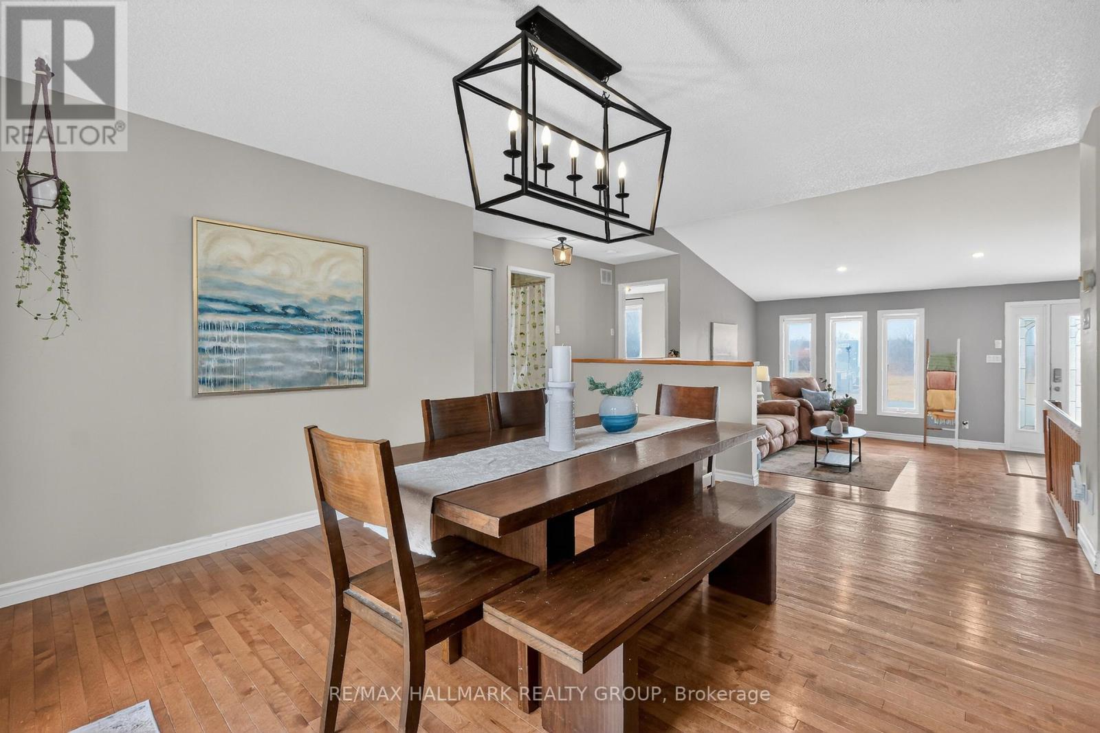 Enjoy the best of country living with everyday conveniences just steps away-convenience store, LCBO, Canada Post, park, and schools all while being only minutes from Highway 17.This lovely bungalow is set on a quiet, family-friendly street with no rear neighbours, offering added privacy and peaceful surroundings. It features a spacious open-concept layout, an oversized garage, and a large lot with a composite deck-perfect for outdoor living and entertaining. The bright living room boasts cathedral ceilings and pot lights, flowing seamlessly into the updated kitchen with a central island, ceiling-height cabinetry, and open access to the dining area ideal for family gatherings. The main floor offers a generous primary bedroom with his-and-hers closets, a large second bedroom, hardwood flooring, and the added convenience of a laundry/mudroom with direct backyard access. The finished lower level features high ceilings, oversized windows, a cozy gas fireplace, and plenty of flexible space including a recreation room, family room, home gym area, and an additional large bedroom-perfect for guests or a teenager. (id:31145)
