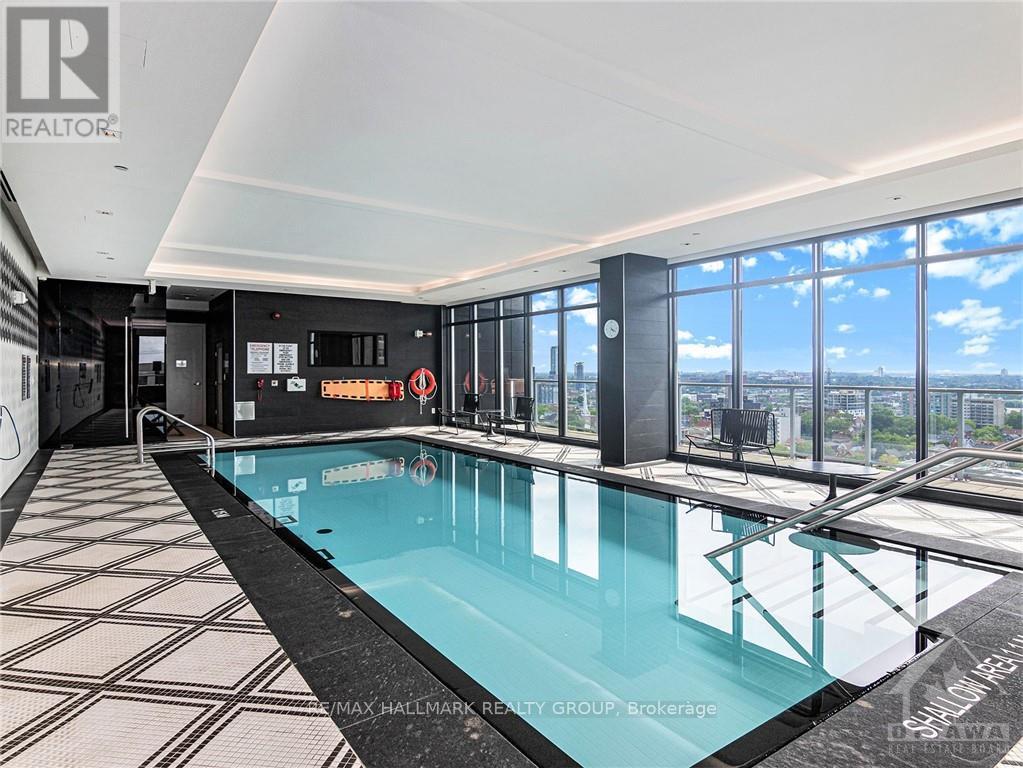 Located in Centre Town, this spacious 1 bed + den condo offers exquisite views of the city skyline that are sure to please! The open concept layout features a kitchen with high-end stainless steel appliances and quartz countertops that flow seamlessly into a living space flooded with natural light, thanks to floor-to-ceiling windows. The building offers incredible top-floor amenities, including a heated saltwater pool, gym, sauna, party room, and conference room, all with sensational views. The unit also comes with a storage locker and an underground parking space. parking space - C-3 (P3-3) and locker - A-37 (P1-37). Available June 1st. (id:31145)
