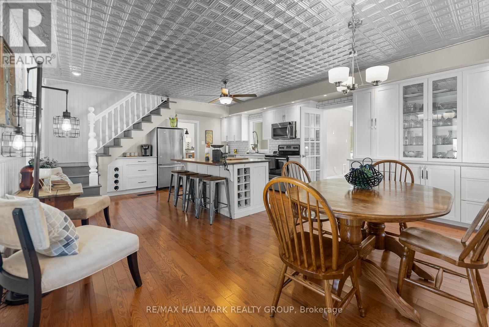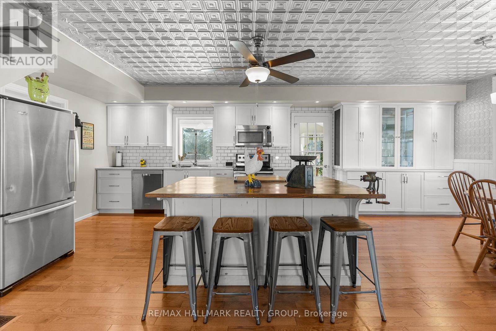 Are you looking for space, close proximity to the city & the opportunity to run a business from your home? Look no further than this amazing opportunity situated on a large lot in the heart of Greely just 25 minutes from Ottawa, just shy of an acre with no Rear Neighbours, walking distance to local amenities & conveniently located right beside the community centre. With the mixed zoning the possibilities are endless. 2 Detached Double Garages with power for storage & additional workspaces plus parking for plenty of vehicles, equipment etc. with a large circular driveway. This spacious 4 bedroom boasts over 2460 sq feet & has retained it' s character & country charm with modern thoughtfully planned renovations throughout. Sit on your porch swing on your covered verandah to enjoy your morning coffee or read & relax. Updates include the kitchen/eating area, rustic wood block island with a breakfast bar, stainless steel appliances, built in cabinetry & coffee nook. Gleaming hardwood flooring on the main floor. 2 full custom bathrooms, 1 -3 pc & 1 -5 pc. Walk in shower with rain forest shower head. Beautifully tiled done in white & grey. Open living/dining room is filled with natural light with an electric fireplace. A very versatile space currently used as a living space. There is room in your kitchen for a large dining room table. Original wood hand crafted staircase leads you to the second level to a large primary bedroom with a wall of closets, a generously sized 2nd bedroom & updated 5 piece bath with double sinks. There are 2 additional large bedrooms separated by stairs on the other side of the home & both bedrooms can be accessed from a second staircase from the kitchen. Original hardwood flooring preserved. Generlink installed in 2023 & Furnace in 2022. Extension with separate entrance is the perfect space for your office allowing you to see clients without accessing your home. Don't miss on this Rare opportunity! (id:31145)