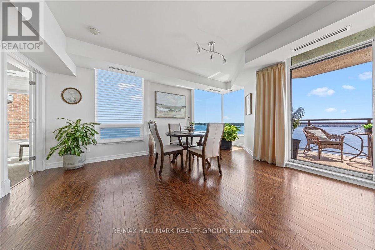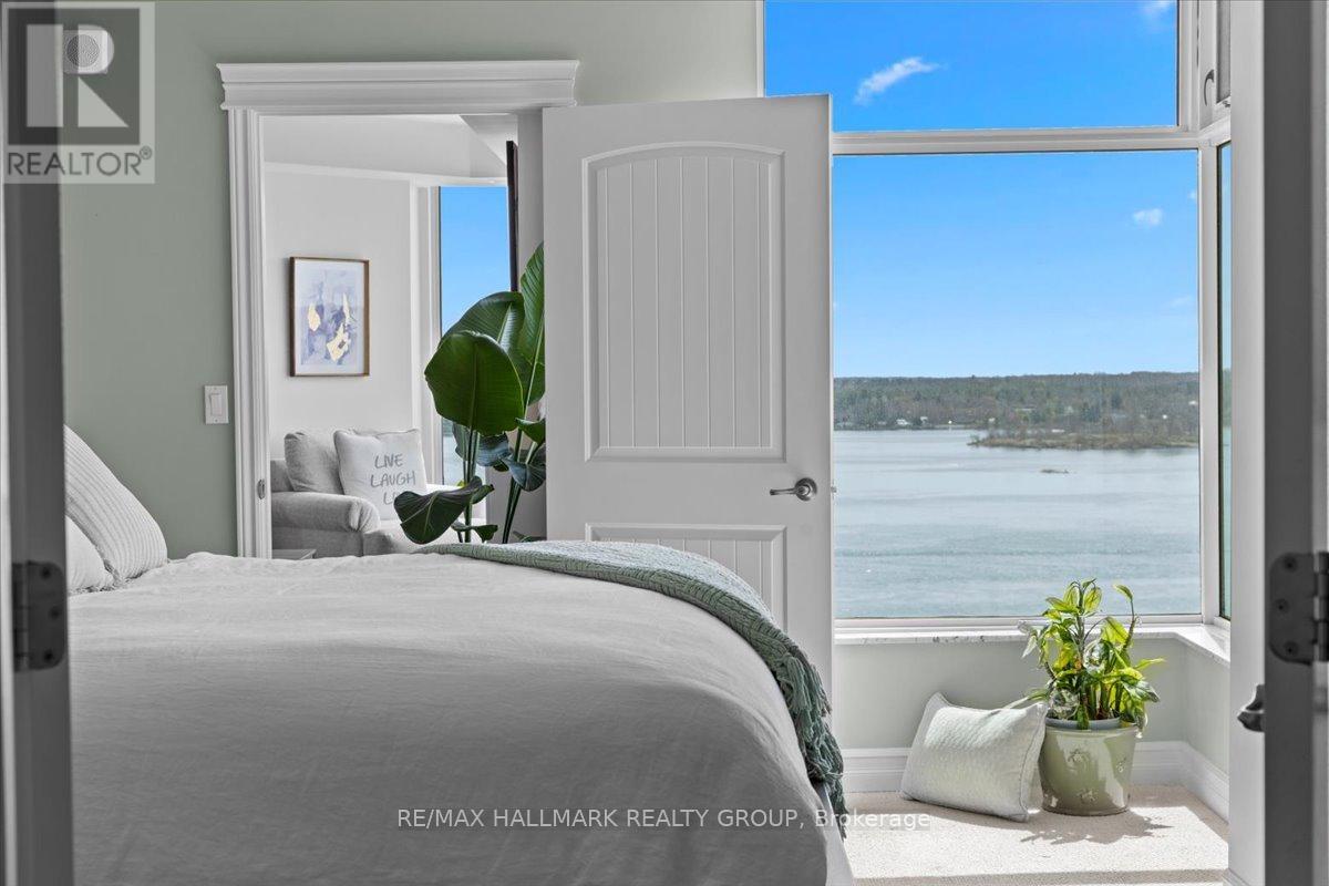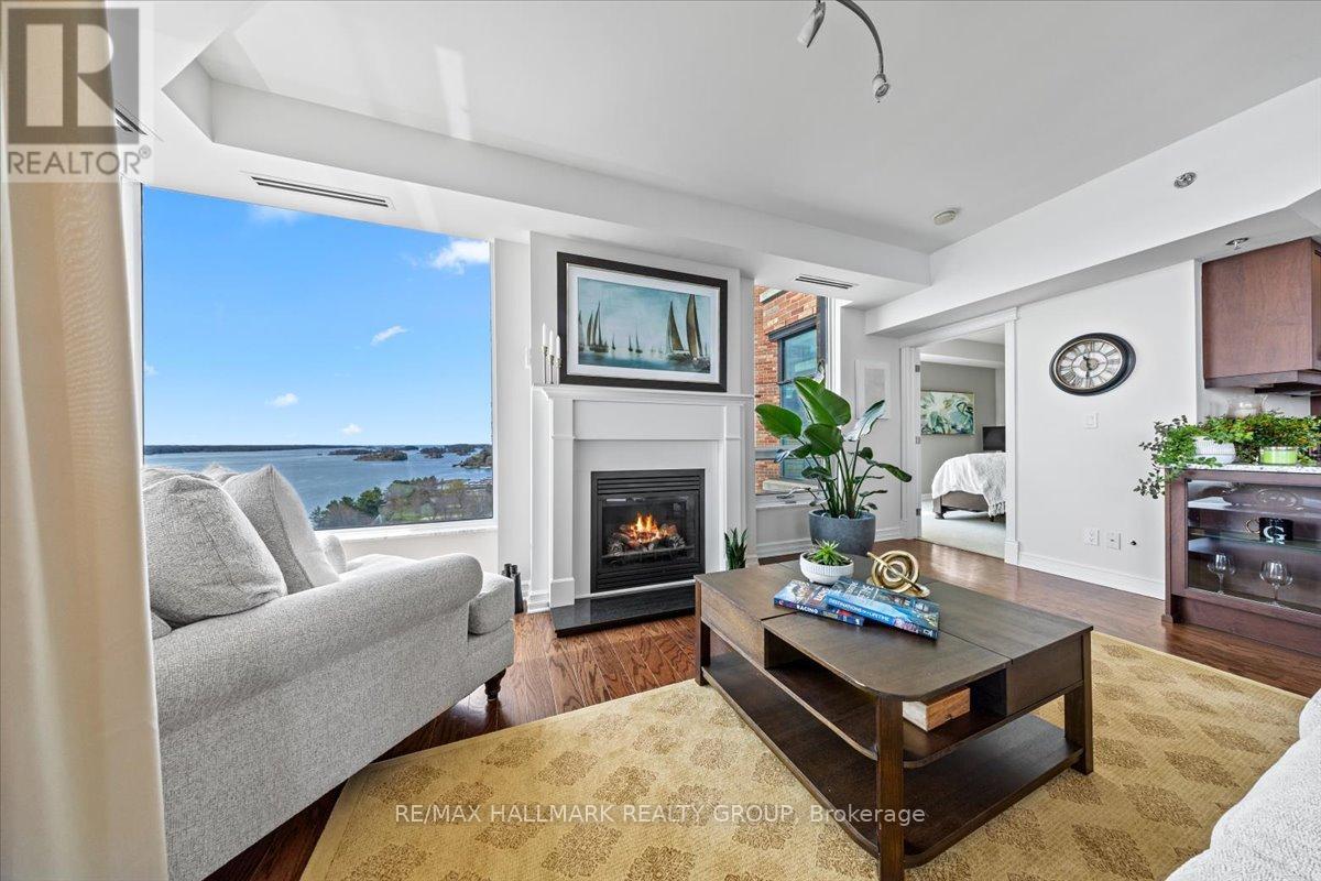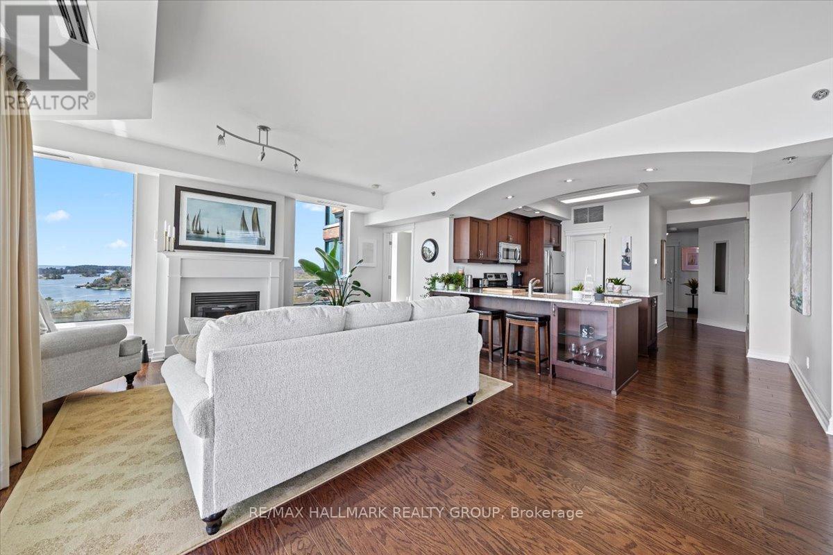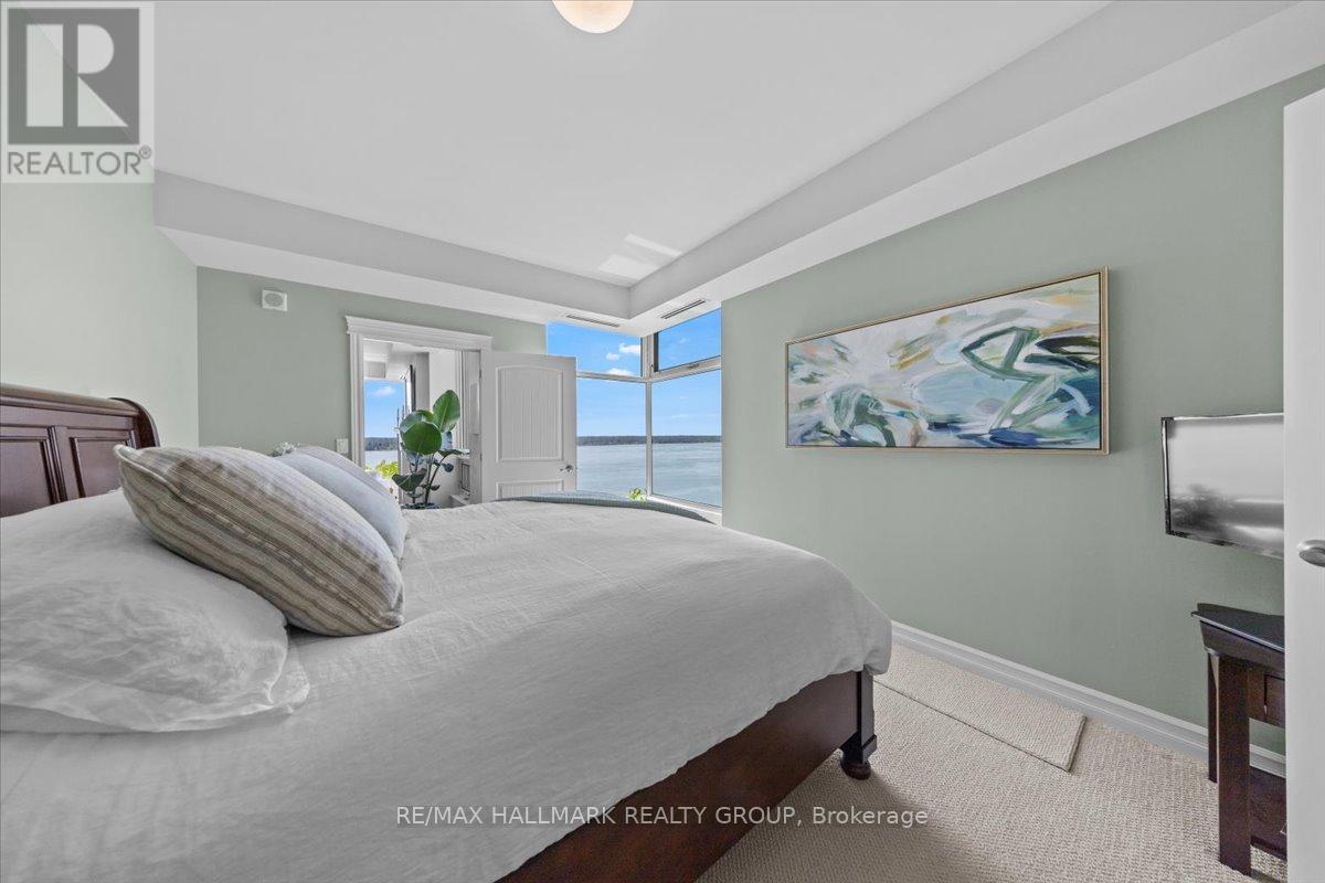 $1,470.67 MonthlyWelcome to Unit 1501 at Tall Ships Landing in beautiful Brockville. where luxury meets lifestyle. This spacious 2 bedroom + den residence offers breathtaking panoramic views of the St. Lawrence Seaway and features an open-concept layout with a seamless flow between the living room, dining area, and kitchen perfect for entertaining or relaxing in style. The primary bedroom boasts a generous walk-in closet and a spa-like 5-piece ensuite. A second bedroom, a full 4-piece bathroom, and a bonus den area provide flexible space for guests, a home office, or hobbies. Additional highlights include in-suite laundry cleverly tucked into a large pantry for added convenience. Enjoy resort-style amenities including an on-site restaurant, clubhouse, fitness centre, indoor pool, and stylish lounge areas. Waterfront living has never looked better! Deeded handicapped parking space #101. $150 monthly fee in addition to condo fees applies to all residents for garage maintenance. (id:31145)