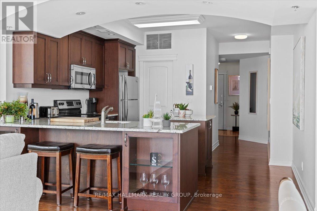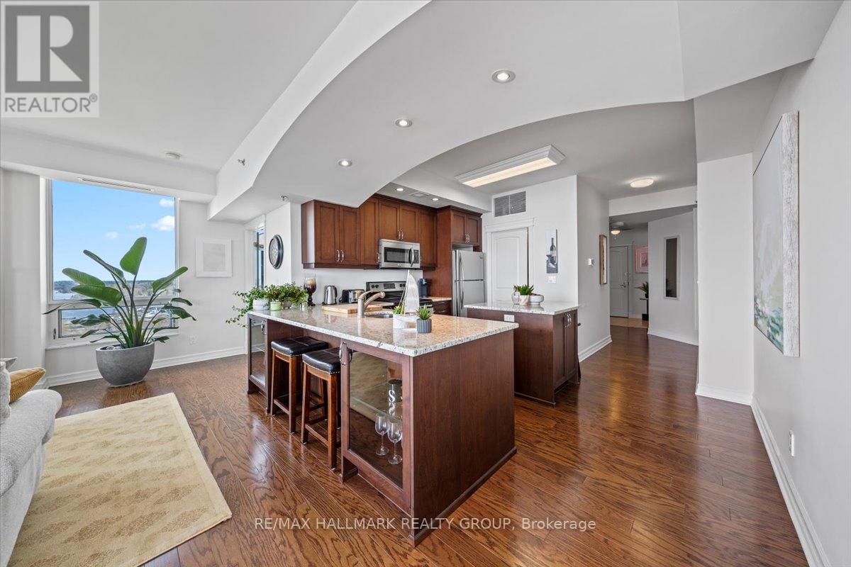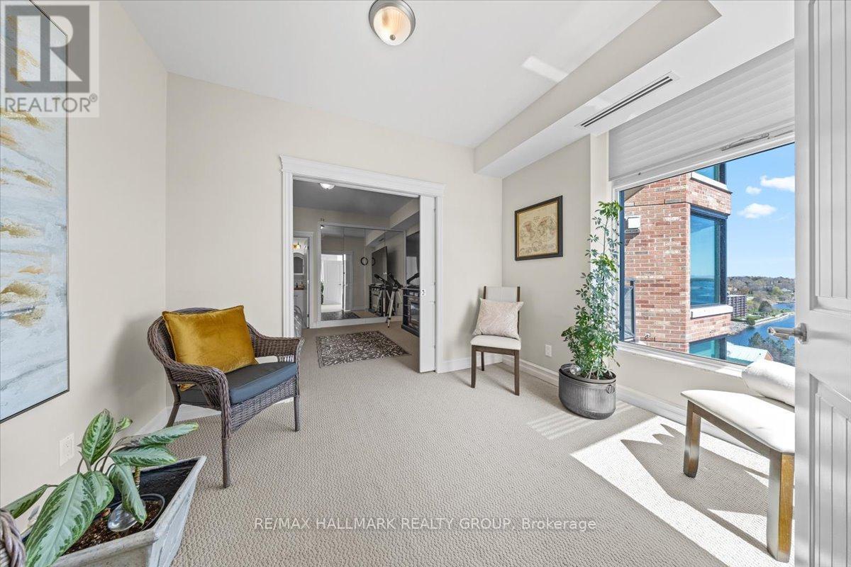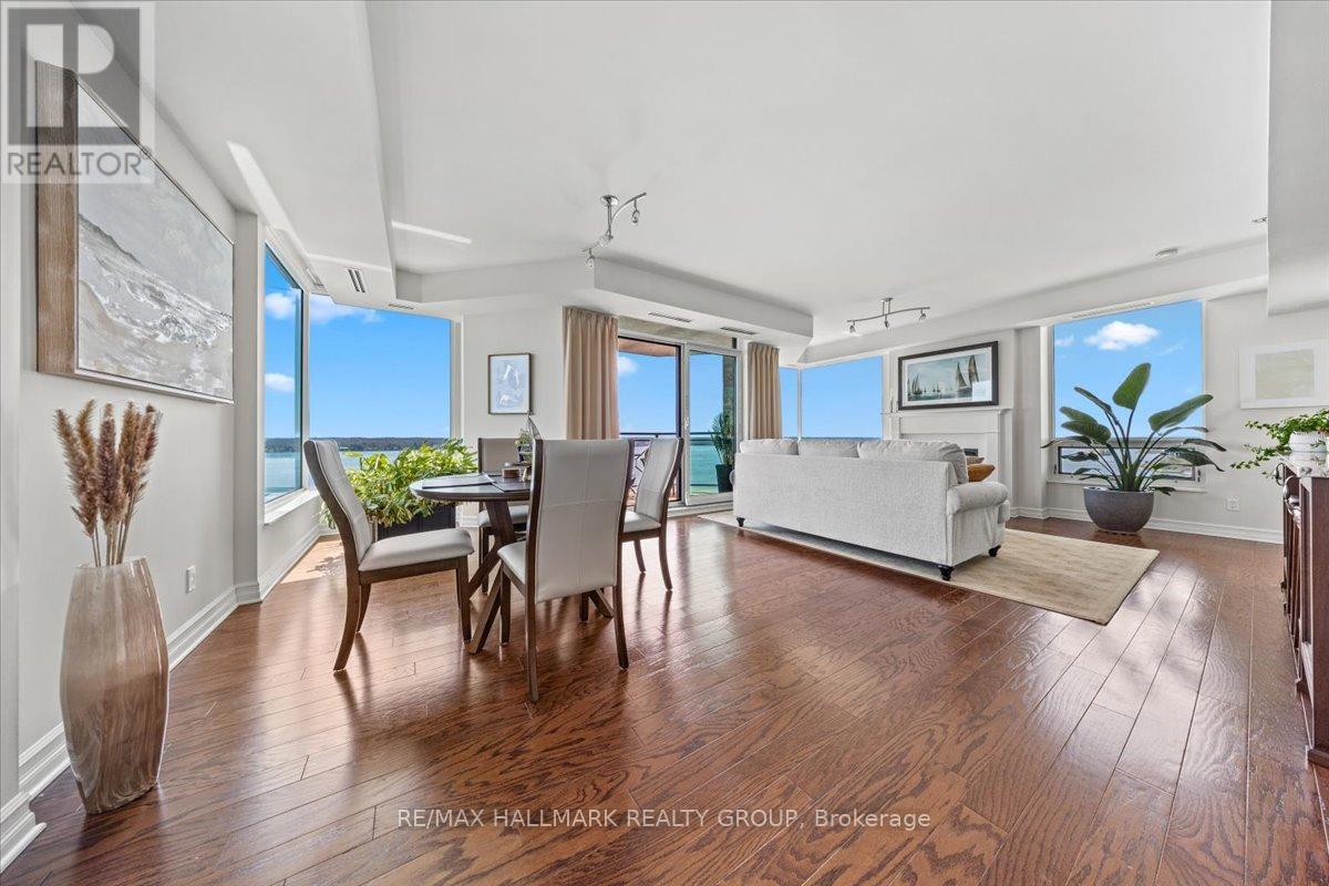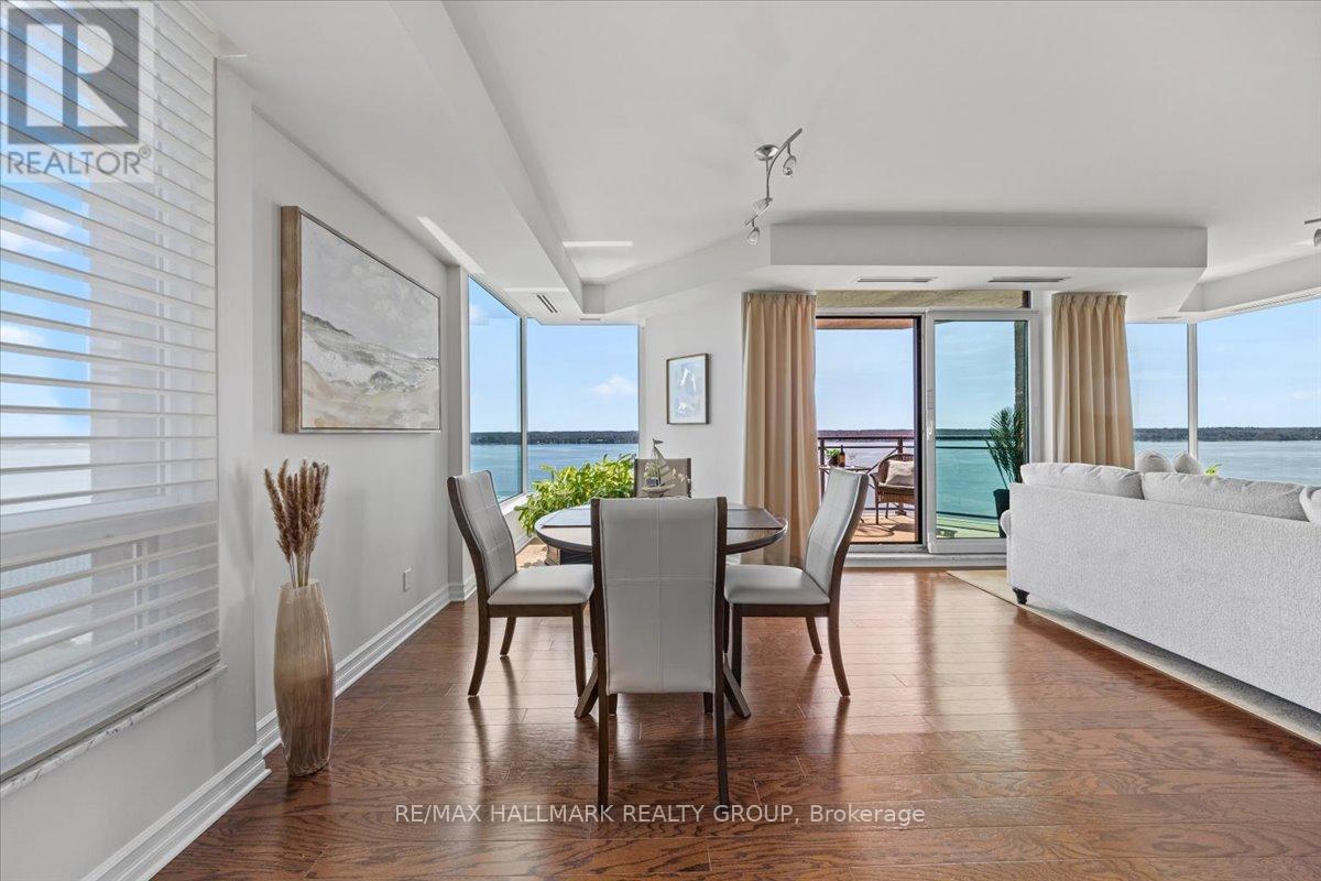 $1,470.67 MonthlyWelcome to Unit 1501 at Tall Ships Landing in beautiful Brockville. where luxury meets lifestyle. This spacious 2 bedroom + den residence offers breathtaking panoramic views of the St. Lawrence Seaway and features an open-concept layout with a seamless flow between the living room, dining area, and kitchen perfect for entertaining or relaxing in style. The primary bedroom boasts a generous walk-in closet and a spa-like 5-piece ensuite. A second bedroom, a full 4-piece bathroom, and a bonus den area provide flexible space for guests, a home office, or hobbies. Additional highlights include in-suite laundry cleverly tucked into a large pantry for added convenience. Enjoy resort-style amenities including an on-site restaurant, clubhouse, fitness centre, indoor pool, and stylish lounge areas. Waterfront living has never looked better! Deeded handicapped parking space #101. $150 monthly fee in addition to condo fees applies to all residents for garage maintenance. (id:31145)