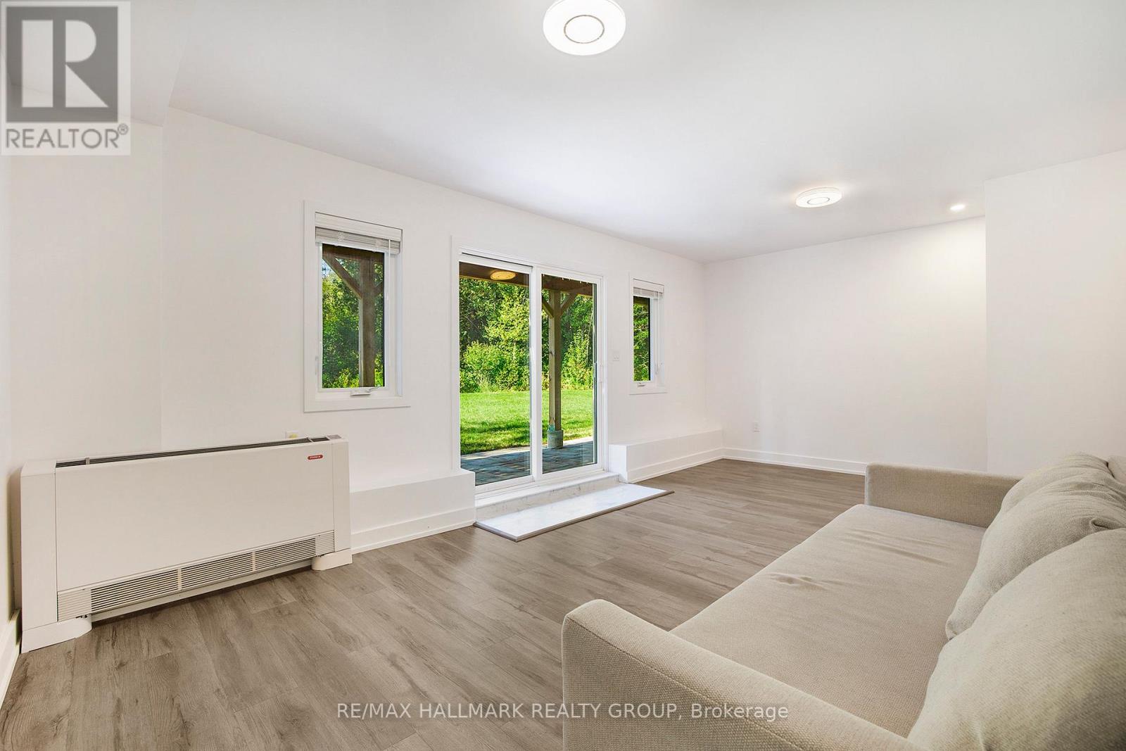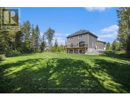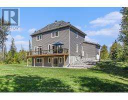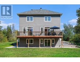 This executive residence situated on a private 2-acre lot offers the rare opportunity of two fully self-contained custom homes under one elegant roof, providing the perfect solution for large families, multi-generational living, or generating rental income. Behind its striking cut-stone exterior are two complete dwellings, each with its own private entrance, separate utilities, and finished to the highest standards. The primary residence features 3+1 bedrooms and 4 bathrooms, while the secondary residence offers 1+1 bedrooms and 2 bathrooms, each with open-concept layouts designed for both comfort and entertaining. Both homes boast true chef-inspired kitchens with quartz counters, cappuccino bars, smart fridges, and premium appliances, along with hardwood flooring on the main and second levels, custom railings, and heated bathroom floors with European-style bidet toilets. Walkout lower levels in each unit provide spacious media rooms, additional bedrooms, full baths, and direct access to interlock patios that extend the living space outdoors. Lower-level stairs are finished with Berber carpeting and high-grade plank flooring, ensuring durability and style throughout. Every detail has been carefully considered, including individually controlled heating systems in each room for personalized comfort, an efficient heat pump with propane backup, and a double attached garage with ample space for two cars plus storage. Lightly lived in and essentially brand new, this home offers unmatched flexibility and can easily be reconfigured for seamless flow between the two units, creating one expansive family residence if desired. With its luxury finishes, practical design, and rare dual-home layout, this property presents an unparalleled opportunity truly two homes for the price of one on a private country setting. (id:31145)