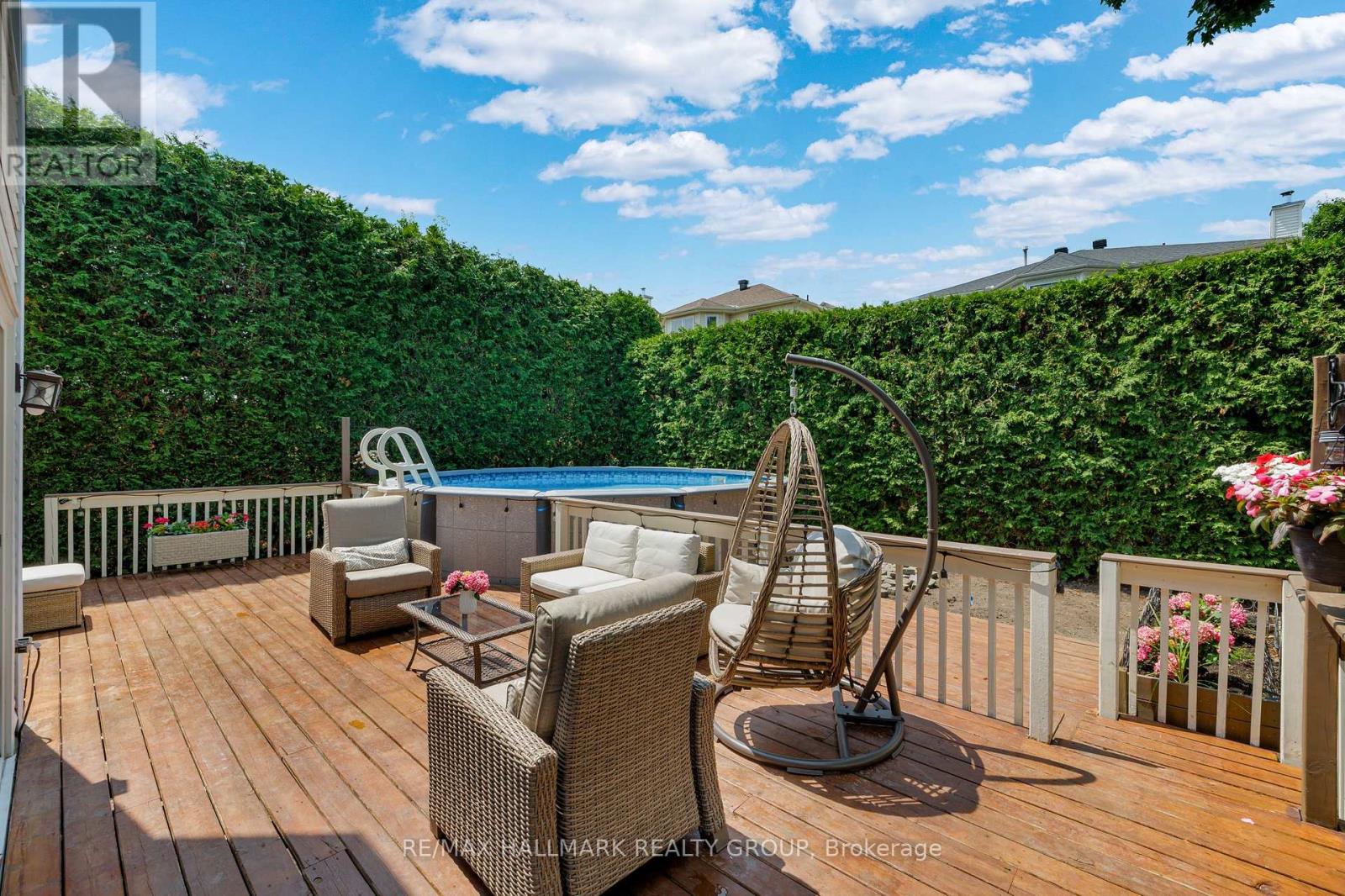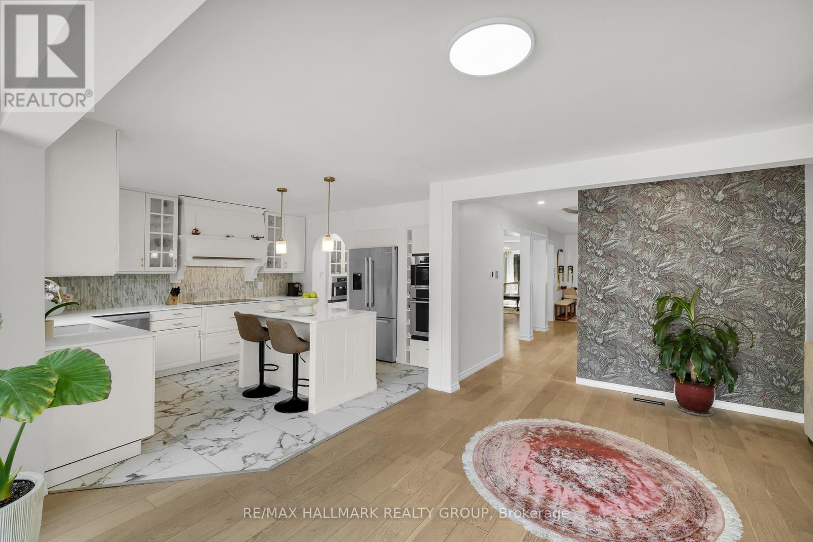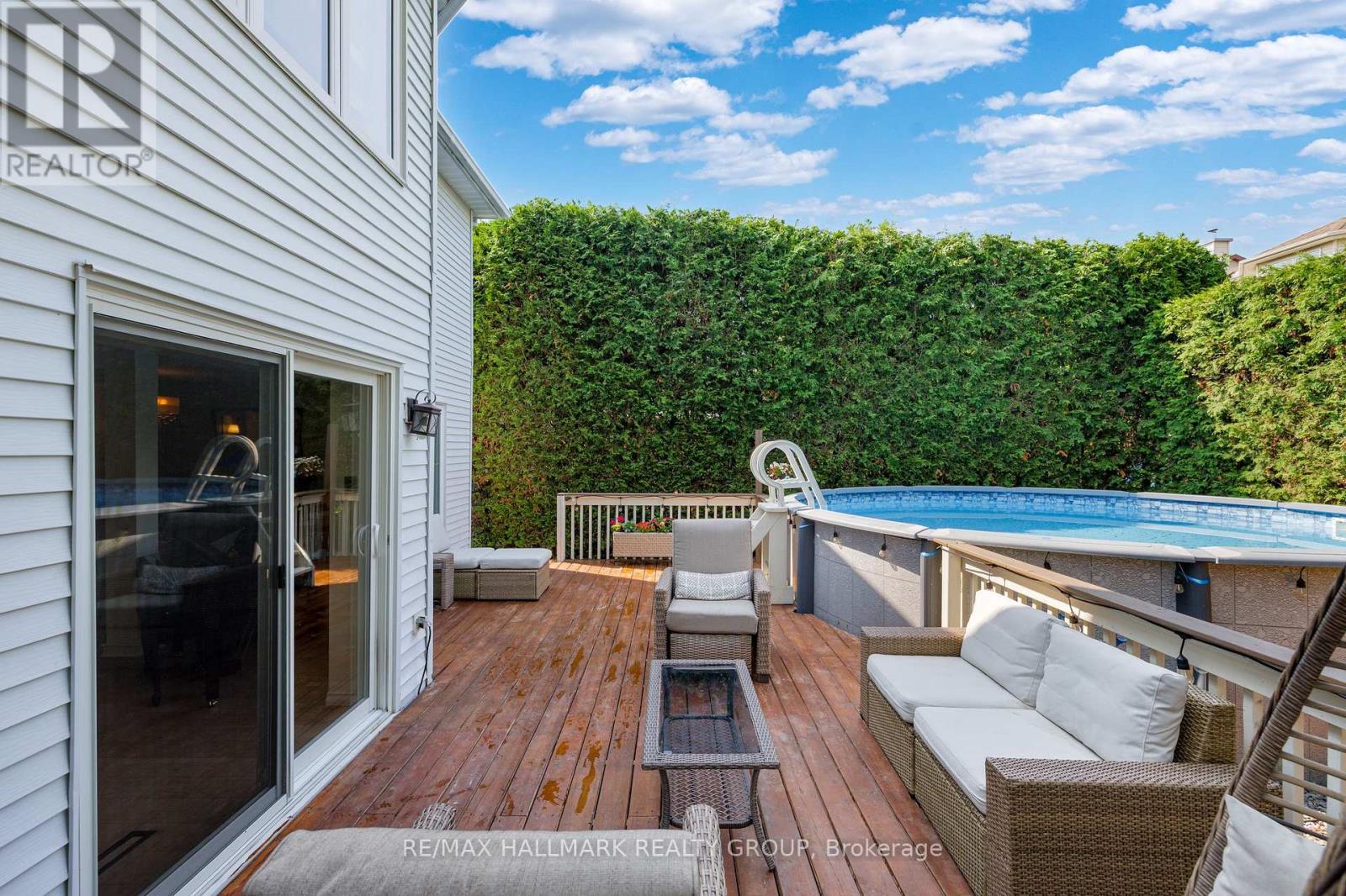 Welcome to 16 Allenby Rd, a beautifully fully renovated 4-bedroom + main-floor office (easily used as a 5th bedroom), 3-bath home in sought-after Morgans Grant. This family-friendly neighborhood offers top schools, parks, trails, and quick access to Kanatas high-tech hub. Offering nearly 2,950 sq. ft. above grade plus almost 1,000 sq. ft. of newly finished basement space, this home provides abundant room for modern family living. The bright, open-concept layout features new engineered hardwood flooring and stylish finishes throughout. The recently updated kitchen, complete with quartz countertops, backsplash, new cabinets, and premium built-in appliances, overlooks the cozy family room with a wood-burning fireplace. Spacious living and dining areas provide great flexibility for everyday living and entertaining. Upstairs, the primary suite boasts large windows, two walk-in closets, and a modern ensuite. All bathrooms have been recently updated, adding a contemporary touch throughout. Outside, the private backyard is perfect for summer enjoyment, complete with mature hedges, an expansive deck, and an above-ground pool. Truly a turnkey home in a vibrant community. More than $250,000 invested in renovations between 2023 and 2025, including: full interior painting (20232025), engineered hardwood flooring (2023), stairs makeover (2025), a fully updated kitchen with quartz countertop & backsplash (2025), new cabinets, island, sink & faucet (2023), induction cooktop, premium range hood (2023), built-in microwave, oven & coffee machine (2023), dishwasher & fridge (2023), powder room (2023), all second-floor bathrooms (2025), expansive ensuite walk-in closet (2025), finished basement (2024), painted deck (2025), pool (2018), AC (2023), roof (2015), and windows (2014). (id:31145)