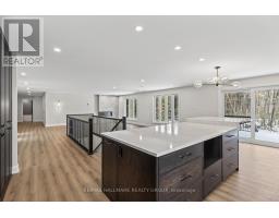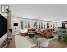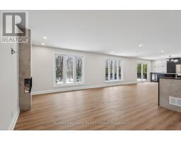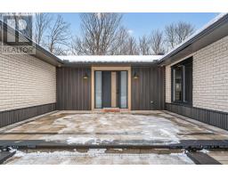Nestled on a picturesque 2 acre lot, this beautifully updated bungalow offers a rare blend of PRIVACY, serenity, and convenience. A gentle stream winds its way through the property, framed by mature forest that provides year round natural beauty and a sense of seclusion, all while keeping outdoor maintenance to a minimum. This home has been EXTENSIVELY RENOVATED with new septic, roof, soffit, facia, eavestrough, windows, electrical, flooring, plumbing, doors, patio, deck, bathrooms, kitchen, laneway and more! Just move in and enjoy for years to come. A curved paved driveway leads to the welcoming front patio and entryway. Inside, the open-concept design immediately impresses, with the living room, dining area, and kitchen flowing together in a bright, airy space that overlooks the forest. Every season brings a new view, turning the landscape into a living work of art. The main floor features 3 generously sized bedrooms and 3 bathrooms, including a luxurious principal suite. The main level also includes a den/office, a practical laundry room, and a powder room. The lower level is equally impressive, with a spacious finished basement that provides endless possibilities. A full bathroom, large workshop/hobby and storage room make this area ideal for projects. Perfectly sized for those who want to downsize without sacrificing comfort, this bungalow is a haven for nature lovers who appreciate tranquility and privacy, yet still want to remain close to shopping and everyday amenities. With its thoughtful design, modern updates, and idyllic setting, it offers the best of both worlds: the peace of country living and the convenience of city access. (id:31145)