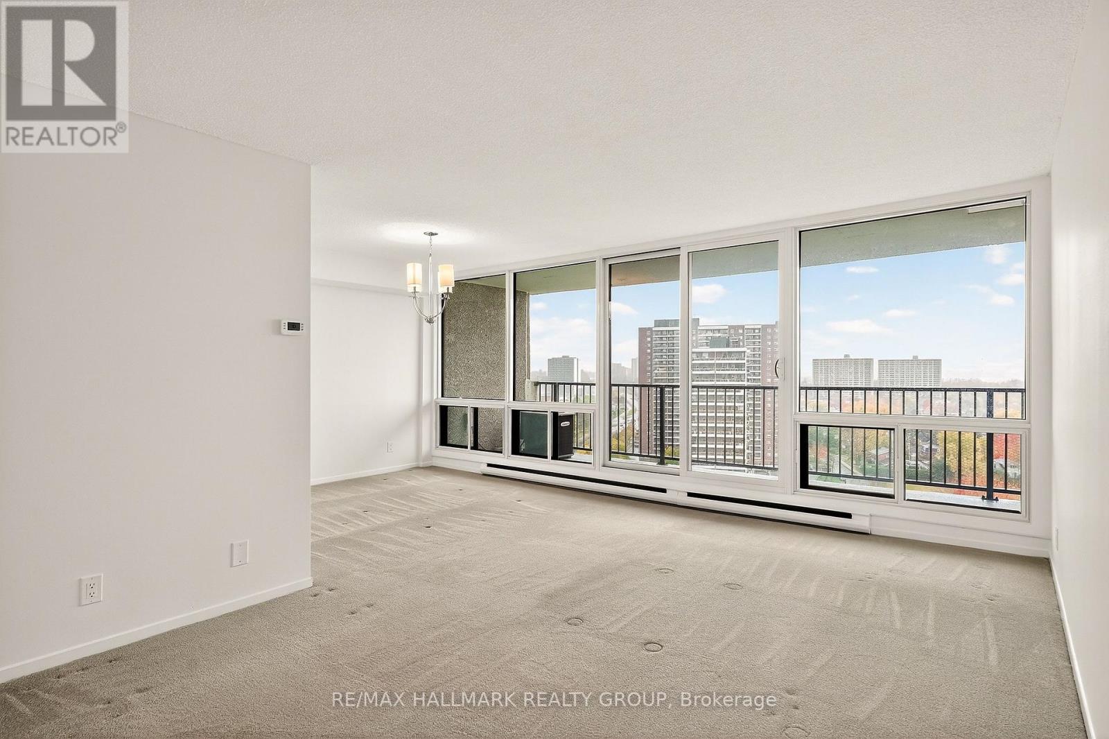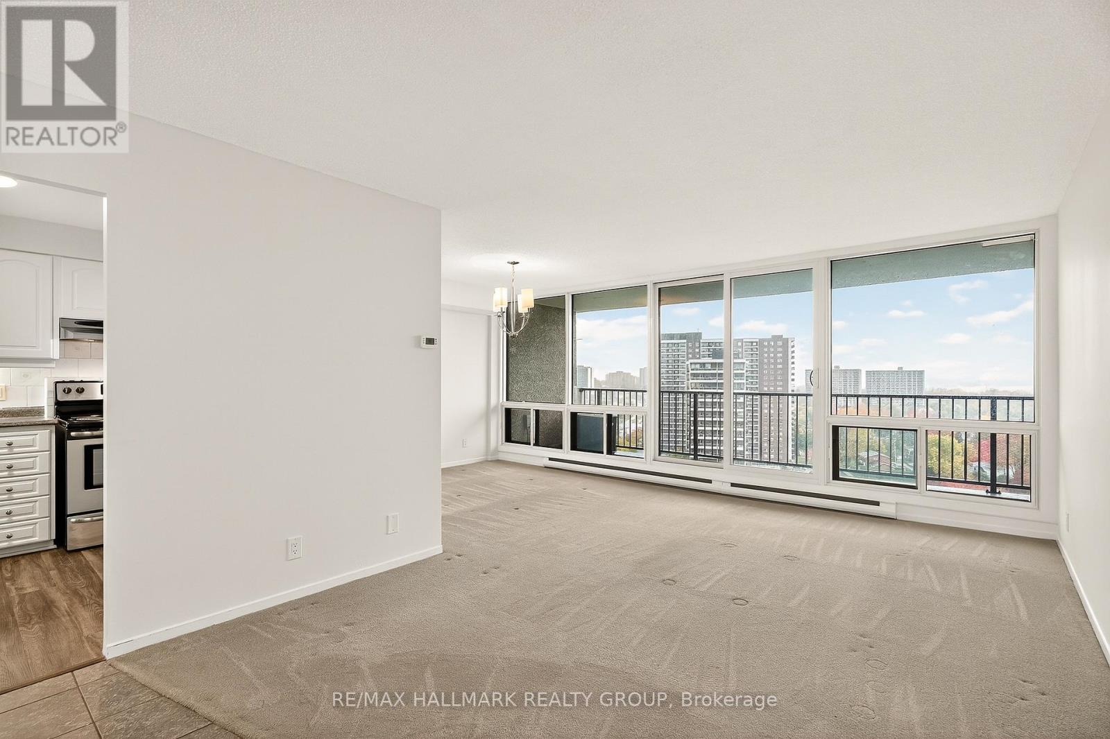 Welcome to The Halcyon! Rarely offered, this WEST-facing condo on the 17th floor showcases sweeping panoramic views of the Ottawa River, Gatineau Hills, and Britannia Bay. This bright and spacious 2-bedroom, 1.5-bathroom unit offers the perfect blend of comfort, convenience, and style. Step into a welcoming tiled foyer with generous storage space and a functional layout that flows beautifully throughout. The updated kitchen features three stainless steel appliances, new luxury vinyl flooring, backsplash, and the convenience of in-unit stacked laundry-a highly sought after feature in the building. The open-concept living and dining area is highlighted by wall-to-wall windows, flooding the space with natural light and offering stunning sunset views from your private balcony, a perfect spot to unwind or entertain while taking in the breathtaking scenery. The unit includes two generous bedrooms, both with hardwood flooring and floor to ceiling mirrored closets, providing a sense of openness and elegance. The primary bedroom features a convenient 2-piece ensuite, while the main bathroom offers plenty of potential to make it your own personal retreat. Freshly painted and move-in ready, this home combines functionality with modern appeal. Enjoy the convenience of 1 underground parking included and an included storage locker, along with an array of condo amenities including an outdoor pool, fitness center, sauna, party and billiards rooms, and even a car wash area. Condo fees include heat, hydro, and water, truly hassle-free living! Perfectly located just steps to the future LRT station, bike paths, walking trails, and the Ottawa River, this rare find with in-unit laundry and an open balcony offers both lifestyle and value. Don't miss your opportunity to call The Halcyon home! (id:31145)