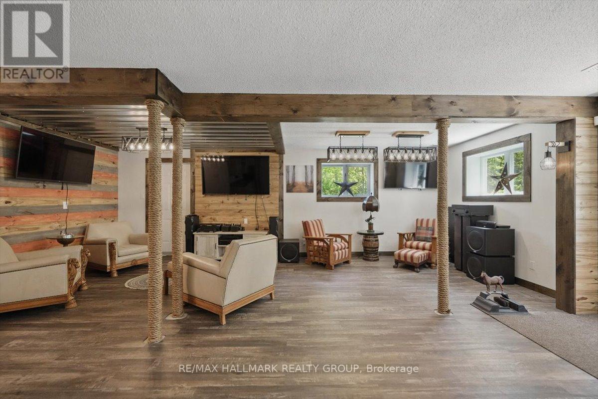 Nestled on (almost) 25 sprawling acres, this recently renovated raised-bungalow offers unparalleled privacy and tranquility. Escape the everyday in this idyllic setting, boasting a brand-new chef's kitchen perfect for culinary enthusiasts and a luxurious, completely remodelled bathroom. Whole main floor renovated top to bottom including a large primary bedroom complete with a custom-built walk in closet. Car enthusiasts and hobbyists alike will appreciate the oversized garage and the expansive detached workshop, providing ample space for projects and storage. Enjoy the serene beauty of a large pond, complete with a private dock, ideal for fishing, relaxing, or simply soaking in the natural surroundings. Adding a touch of rustic charm, discover a finished outhouse on the property complete with a wood stove. Backs onto Forêt Larose. This show-stopping estate is ready for you to call it home! (id:31145)