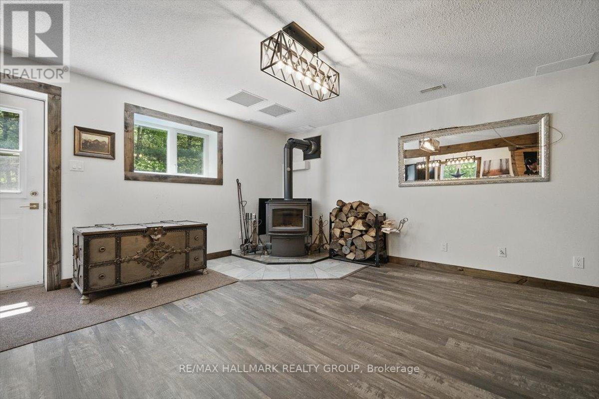 Nestled on (almost) 25 sprawling acres, this recently renovated raised-bungalow offers unparalleled privacy and tranquility. Escape the everyday in this idyllic setting, boasting a brand-new chef's kitchen perfect for culinary enthusiasts and a luxurious, completely remodelled bathroom. Whole main floor renovated top to bottom including a large primary bedroom complete with a custom-built walk in closet. Car enthusiasts and hobbyists alike will appreciate the oversized garage and the expansive detached workshop, providing ample space for projects and storage. Enjoy the serene beauty of a large pond, complete with a private dock, ideal for fishing, relaxing, or simply soaking in the natural surroundings. Adding a touch of rustic charm, discover a finished outhouse on the property complete with a wood stove. Backs onto Forêt Larose. This show-stopping estate is ready for you to call it home! (id:31145)